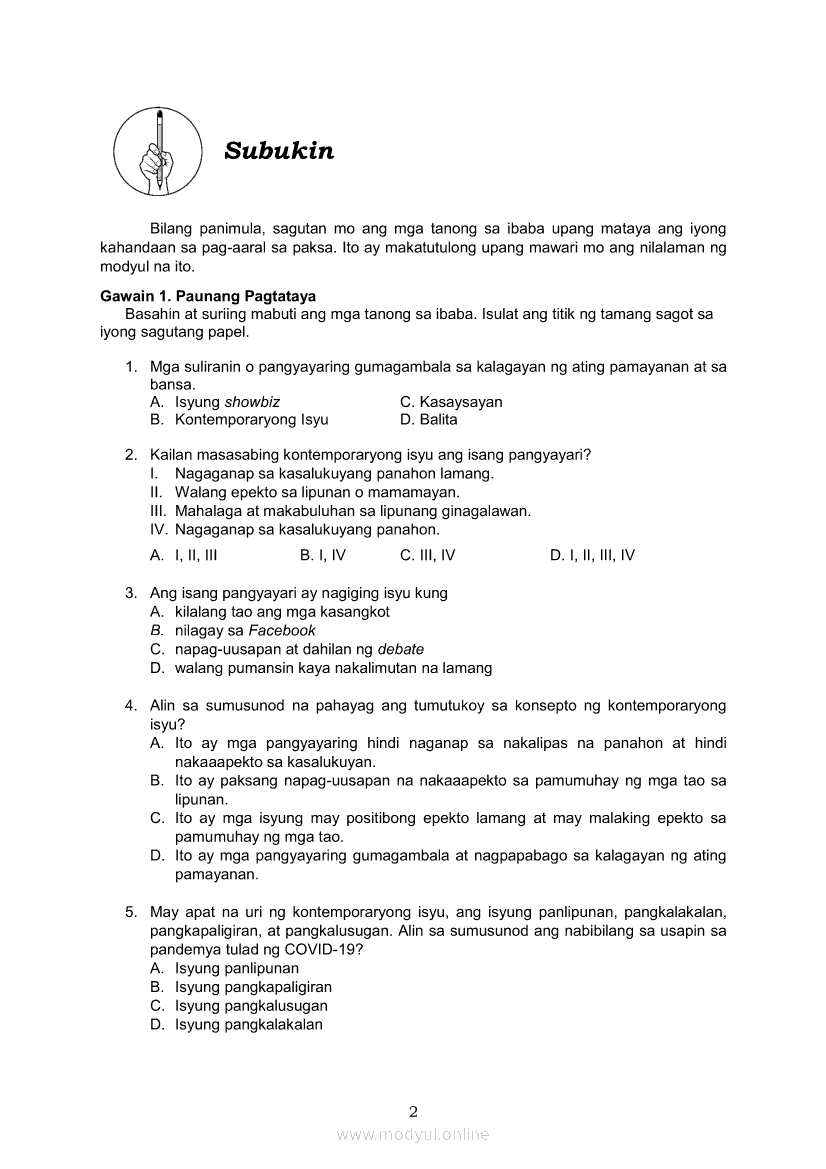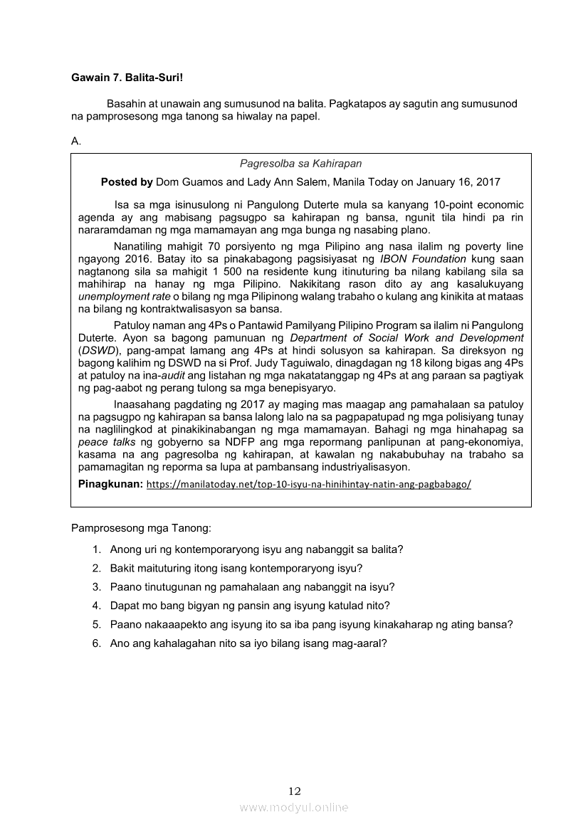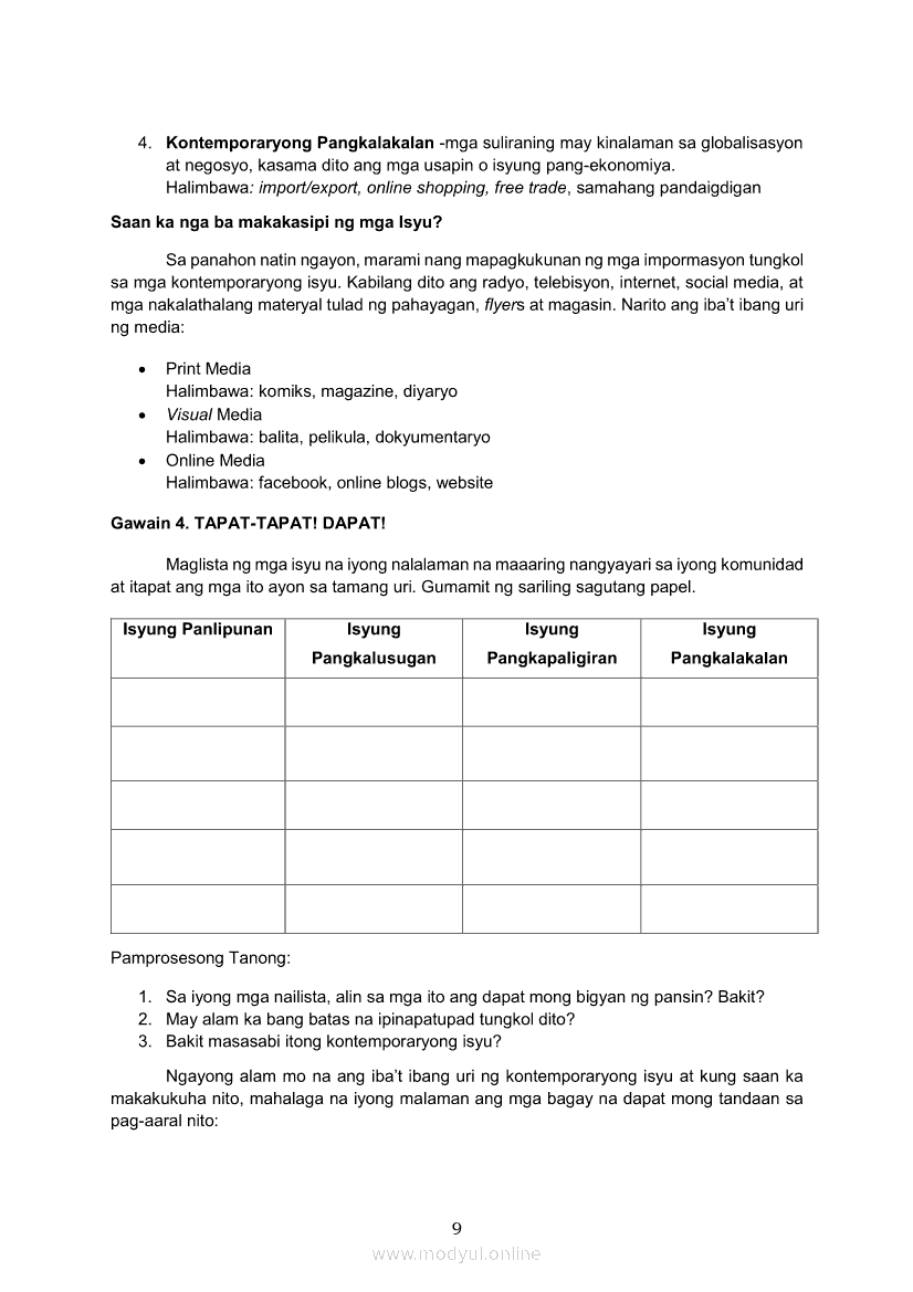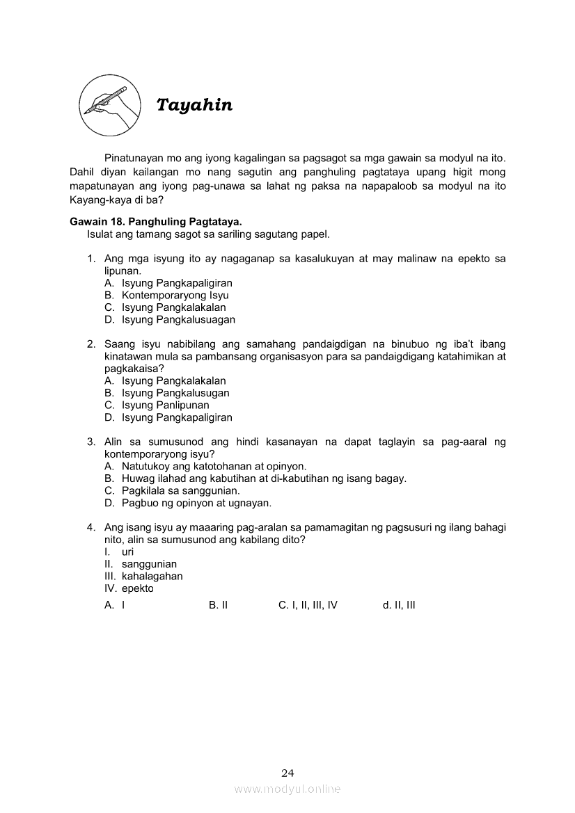Araling Panlipunan 10 Modyul 1: Kontemporaryong IsyuApr 22, 2021 Grade 10Xiaomi Redmi Watch 5 Active 2inch LCD Display Clear Calling 5ATM Waterproof Smart Watch for only ₱3,999 ₱1,200!. Araling Panlipunan 10RelatedAraling Panlipunan Ikaapat na Markahan – Modyul 1 Pagkamamamayan: Konsepto at KatuturanAraling Panlipunan Ikaapat na Markahan – Modyul 8 Mabuting Pamamahala o Good GovernanceAraling Panlipunan Ikaapat na Markahan – Modyul 2 Lumawak Na Pananaw ng PagkamamamayanAraling Panlipunan Ikaapat na Markahan – Modyul 7 Papel Ng Mamamayan sa Pagkakaroon ng Mabuting PamahahalaAraling Panlipunan Ikaapat na Markahan – Modyul 5 Politikal na Pakikilahok