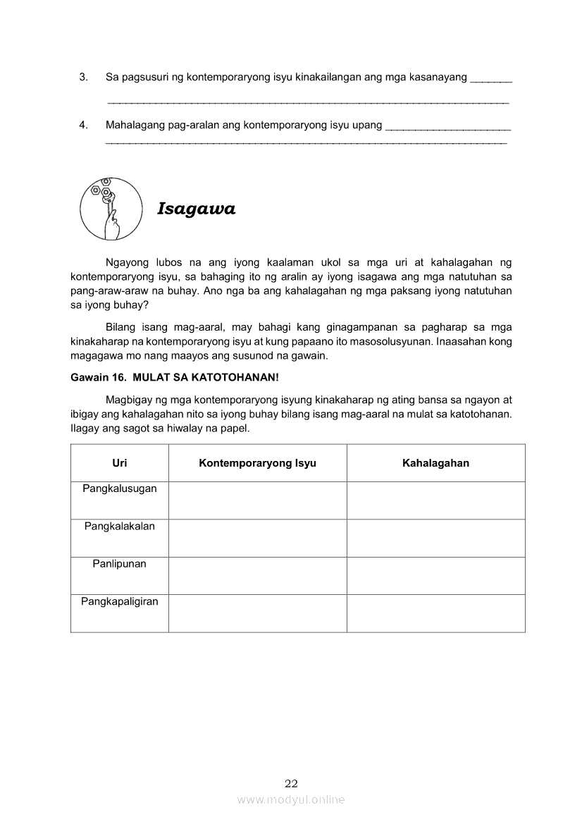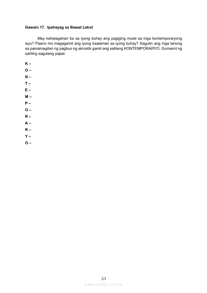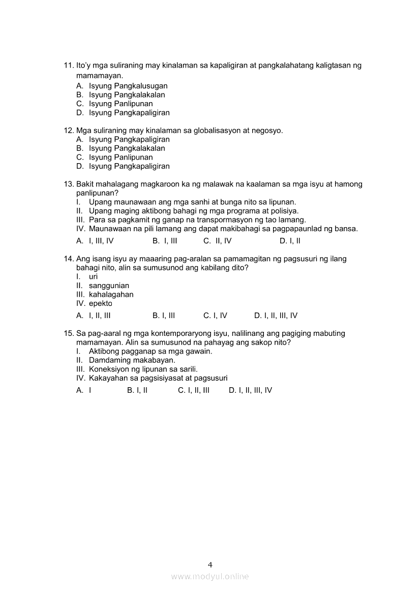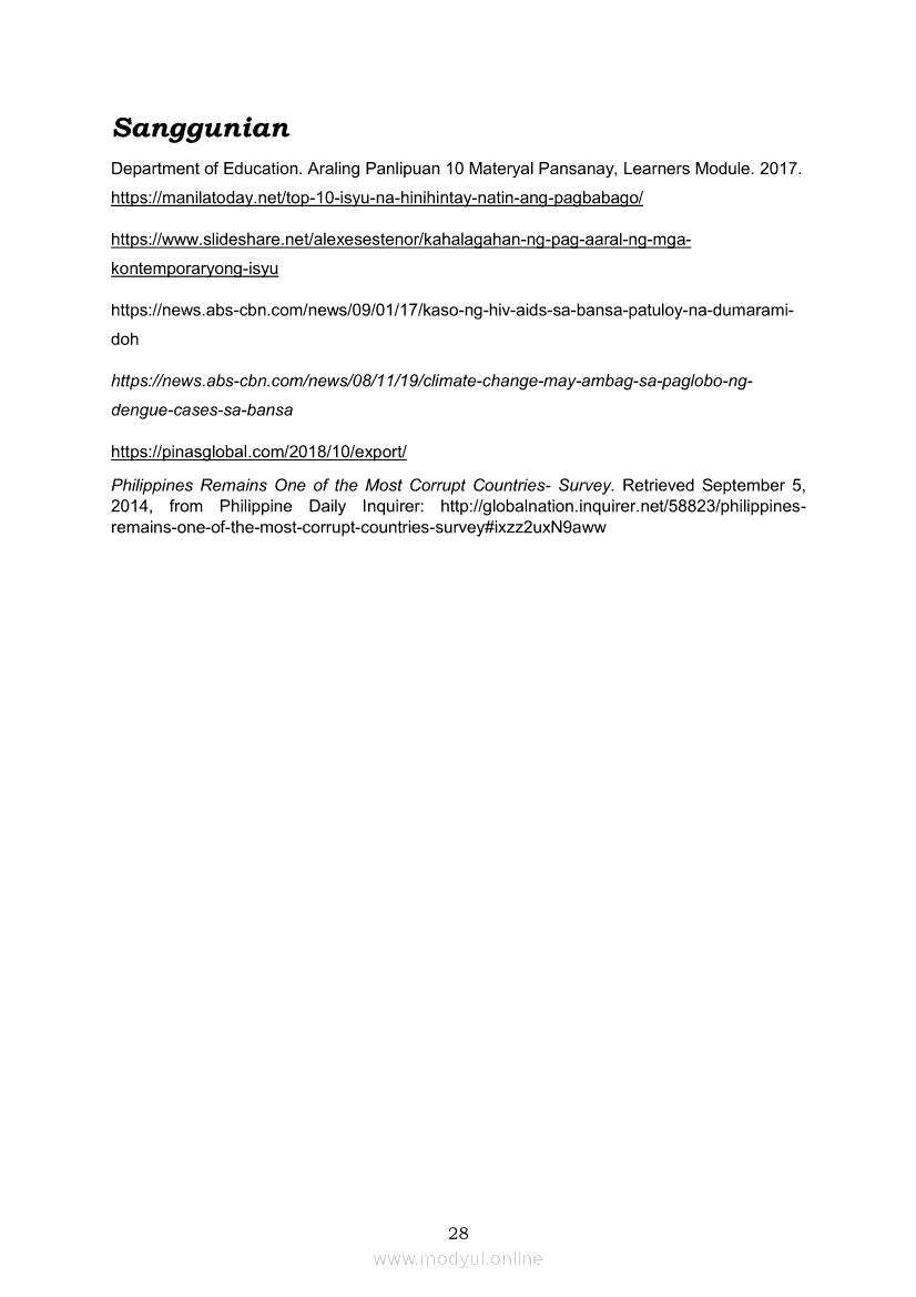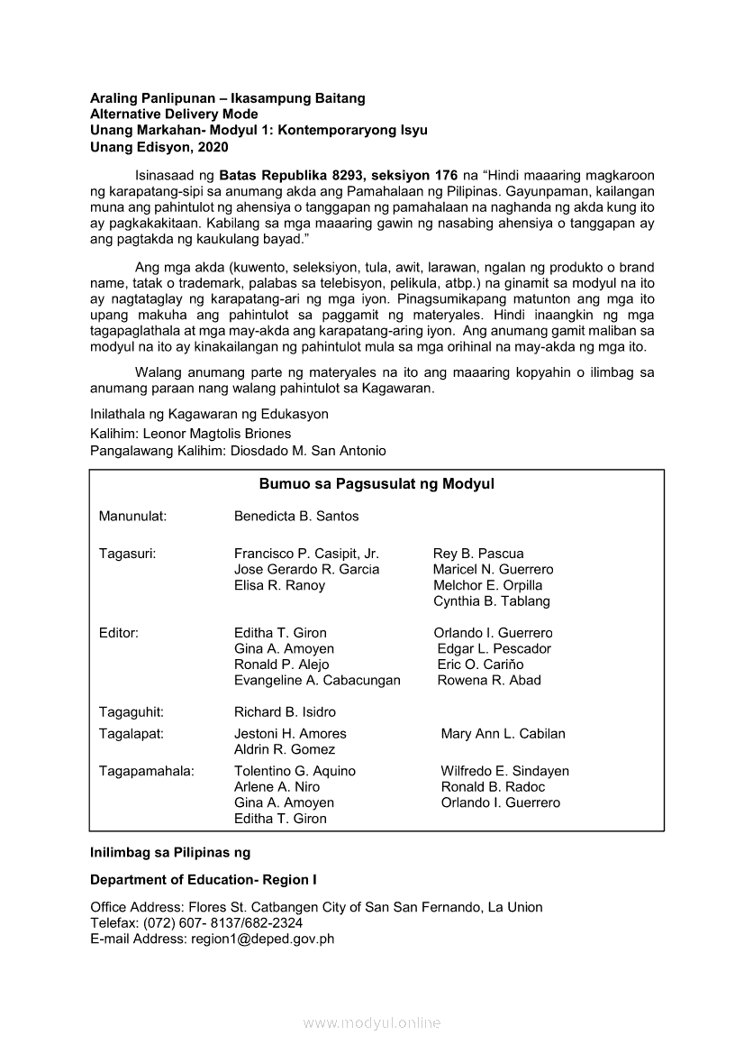 Araling Panlipunan 10 Modyul 1: Kontemporaryong IsyuApr 22, 2021 Grade 10Xiaomi Redmi Watch 5 Active 2inch LCD Display Clear Calling 5ATM Waterproof Smart Watch for only ₱3,999 ₱1,200!. Araling Panlipunan 10RelatedAraling Panlipunan Ikaapat na Markahan – Modyul 1 Pagkamamamayan: Konsepto at KatuturanAraling Panlipunan Ikaapat na Markahan – Modyul 8 Mabuting Pamamahala o Good GovernanceAraling Panlipunan Ikaapat na Markahan – Modyul 2 Lumawak Na Pananaw ng PagkamamamayanAraling Panlipunan Ikaapat na Markahan – Modyul 7 Papel Ng Mamamayan sa Pagkakaroon ng Mabuting PamahahalaAraling Panlipunan Ikaapat na Markahan – Modyul 5 Politikal na Pakikilahok
