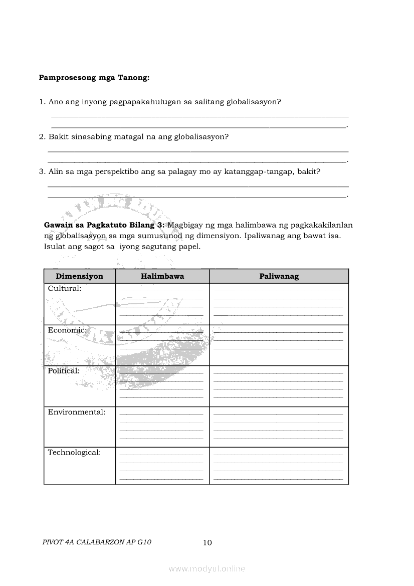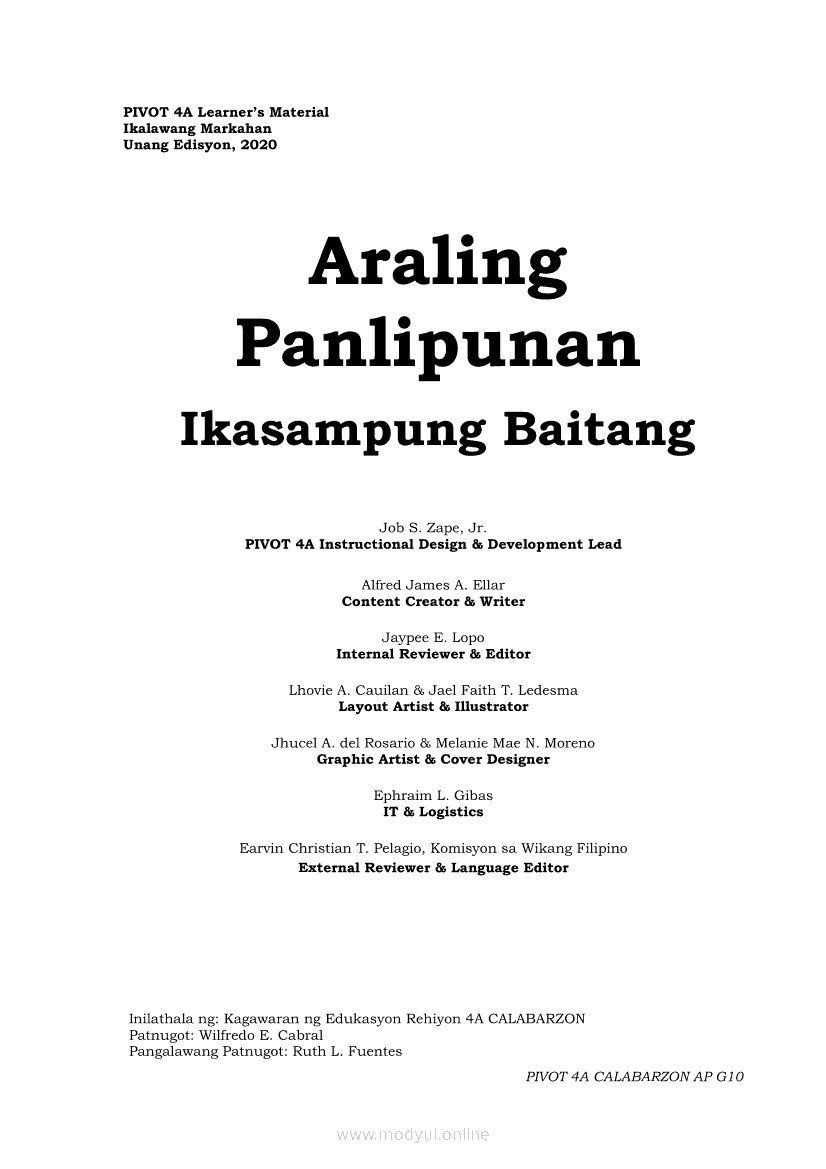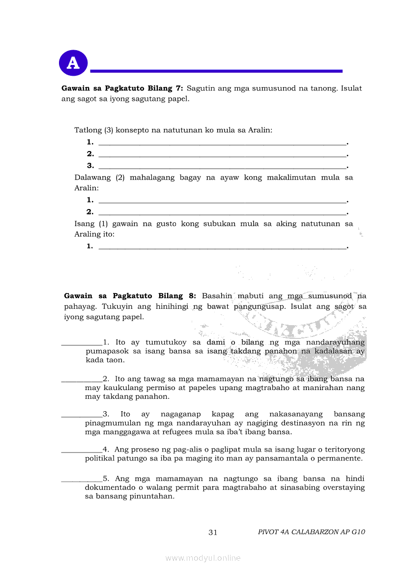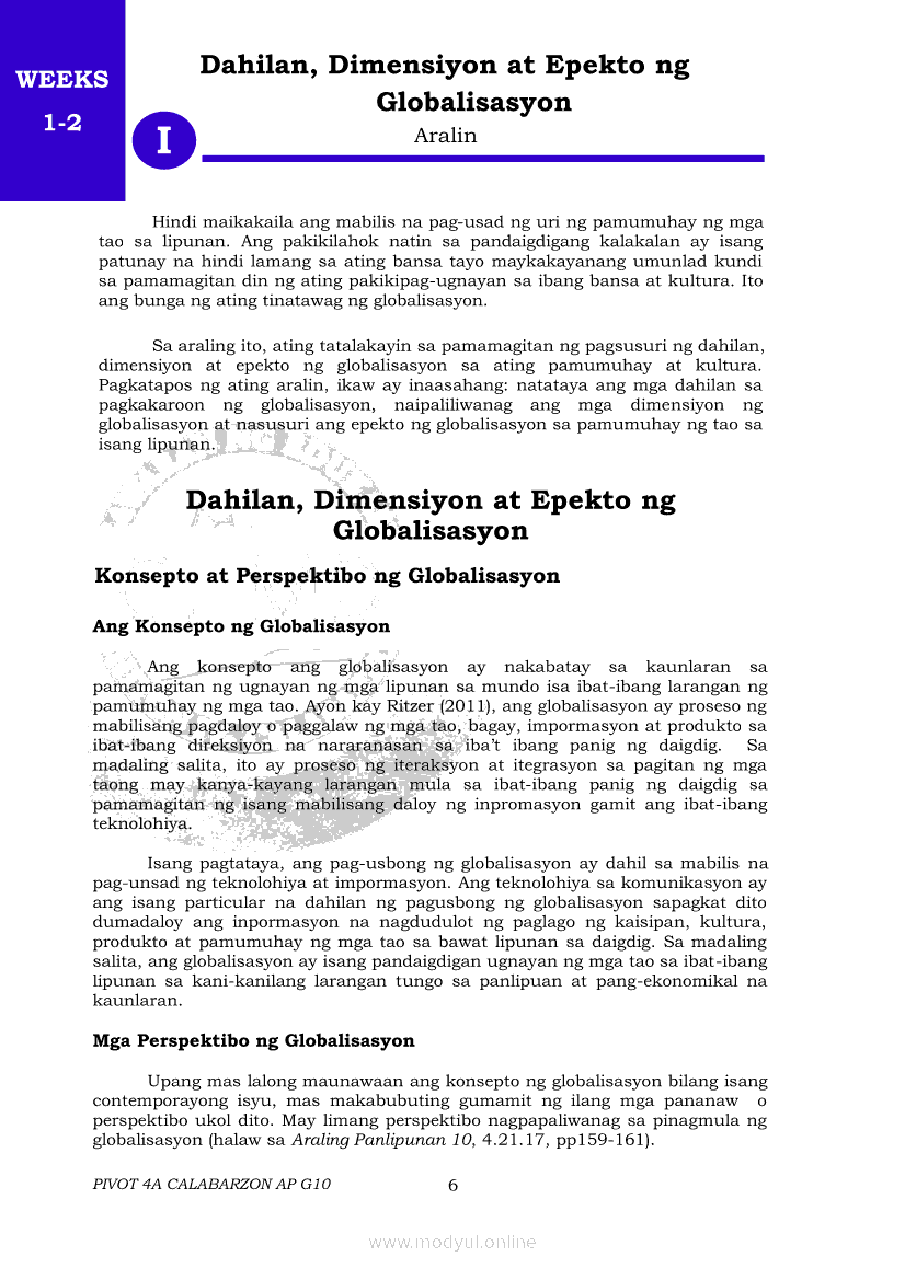 Araling Panlipunan 10 Modyul para sa Ikalawang Markahan (PIVOT)Apr 22, 2021 Grade 10Xiaomi Redmi Watch 5 Active 2inch LCD Display Clear Calling 5ATM Waterproof Smart Watch for only ₱3,999 ₱1,200!. Araling Panlipunan 10RelatedAraling Panlipunan Ikaapat na Markahan – Modyul 3 Mga Karapatang PantaoAraling Panlipunan Ikaapat na Markahan – Modyul 8 Mabuting Pamamahala o Good GovernanceAraling Panlipunan Ikaapat na Markahan – Modyul 2 Lumawak Na Pananaw ng PagkamamamayanAraling Panlipunan Ikaapat na Markahan – Modyul 1 Pagkamamamayan: Konsepto at KatuturanAraling Panlipunan Ikaapat na Markahan – Modyul 6 Paglahok Sa Civil Society