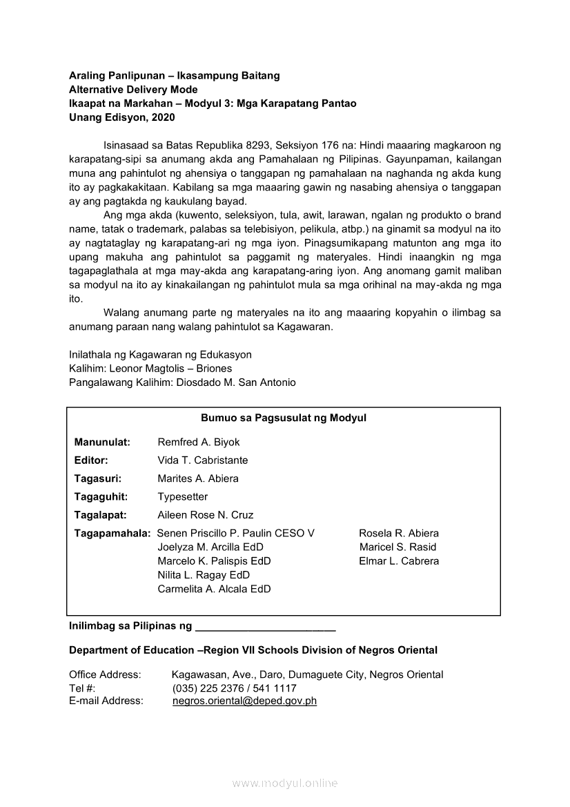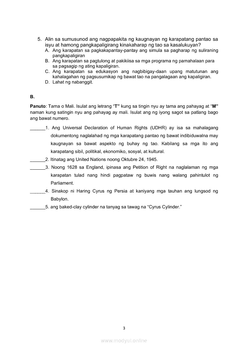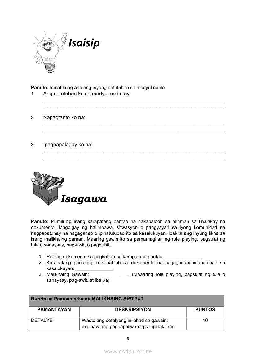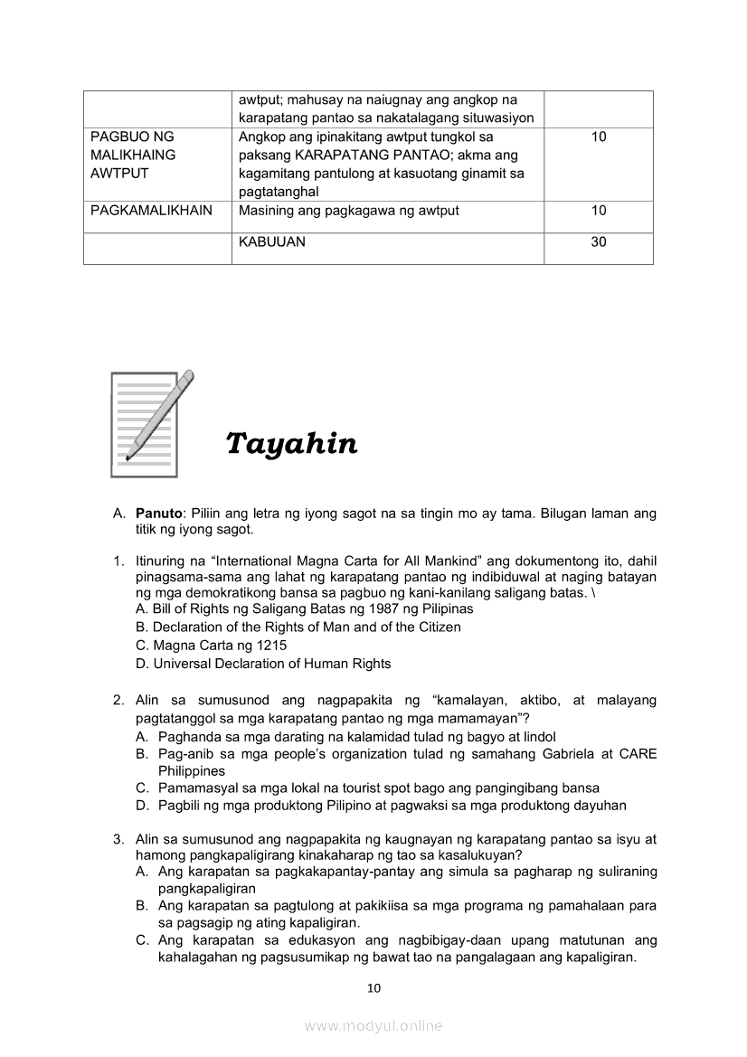 Araling Panlipunan Ikaapat na Markahan – Modyul 3 Mga Karapatang PantaoMay 28, 2021 Grade 10Xiaomi Redmi Watch 5 Active 2inch LCD Display Clear Calling 5ATM Waterproof Smart Watch for only ₱3,999 ₱1,200!. Araling Panlipunan 10 4th QuarterRelatedAraling Panlipunan Ikaapat na Markahan – Modyul 8 Mabuting Pamamahala o Good GovernanceAraling Panlipunan Ikaapat na Markahan – Modyul 6 Paglahok Sa Civil SocietyAraling Panlipunan Ikaapat na Markahan – Modyul 1 Pagkamamamayan: Konsepto at KatuturanAraling Panlipunan Ikaapat na Markahan – Modyul 2 Lumawak Na Pananaw ng PagkamamamayanAraling Panlipunan Ikaapat na Markahan – Modyul 4 Ang mga Karapatang Pantao at ang Pagkamamayan