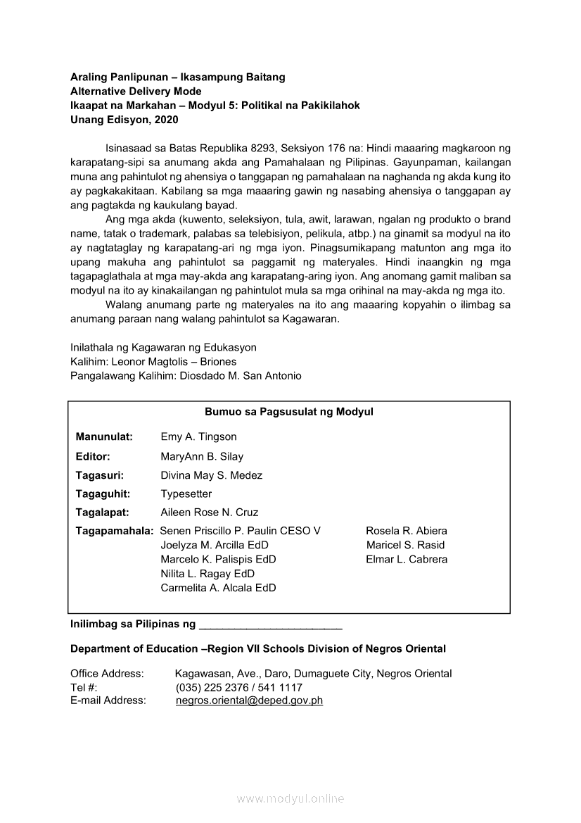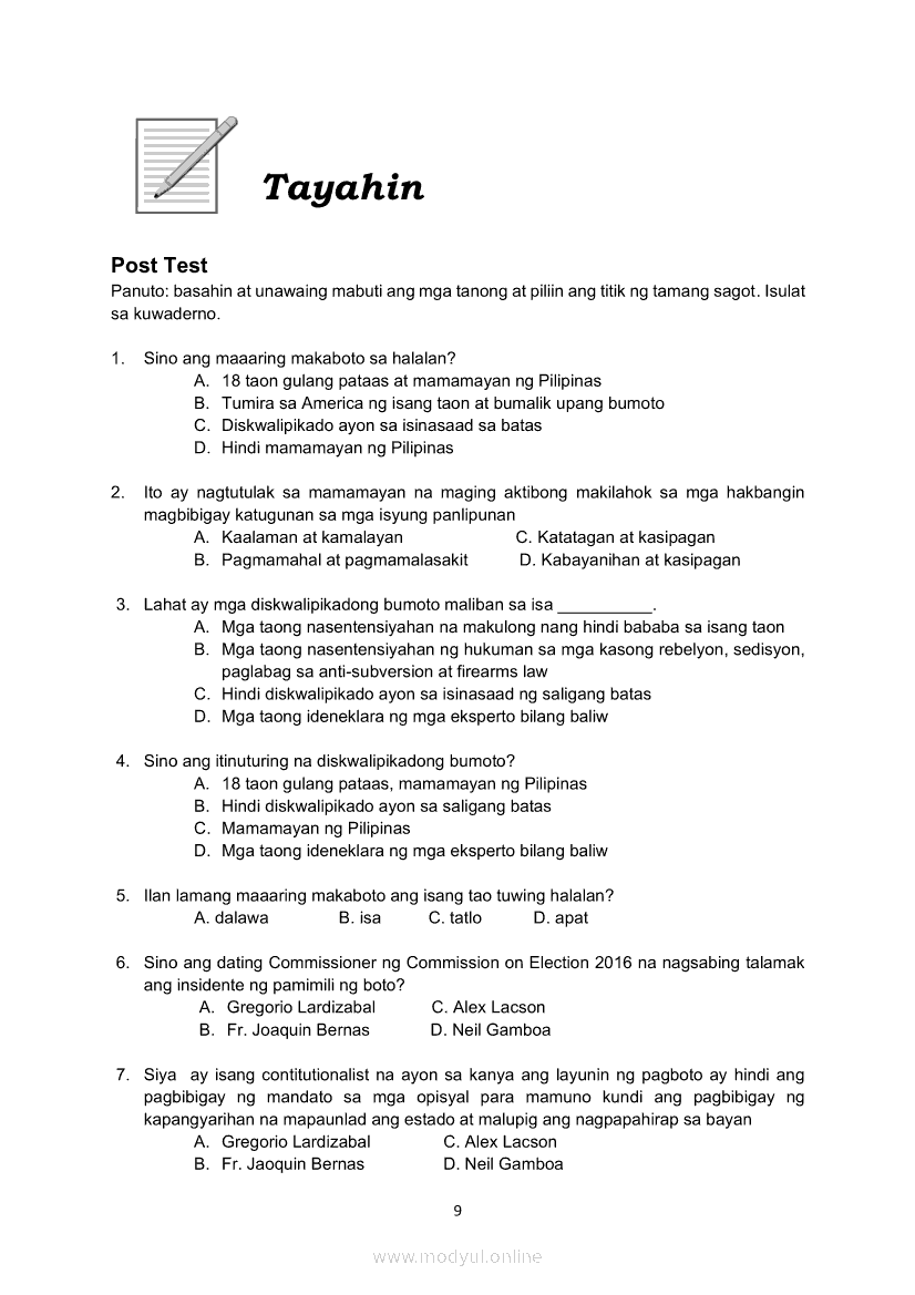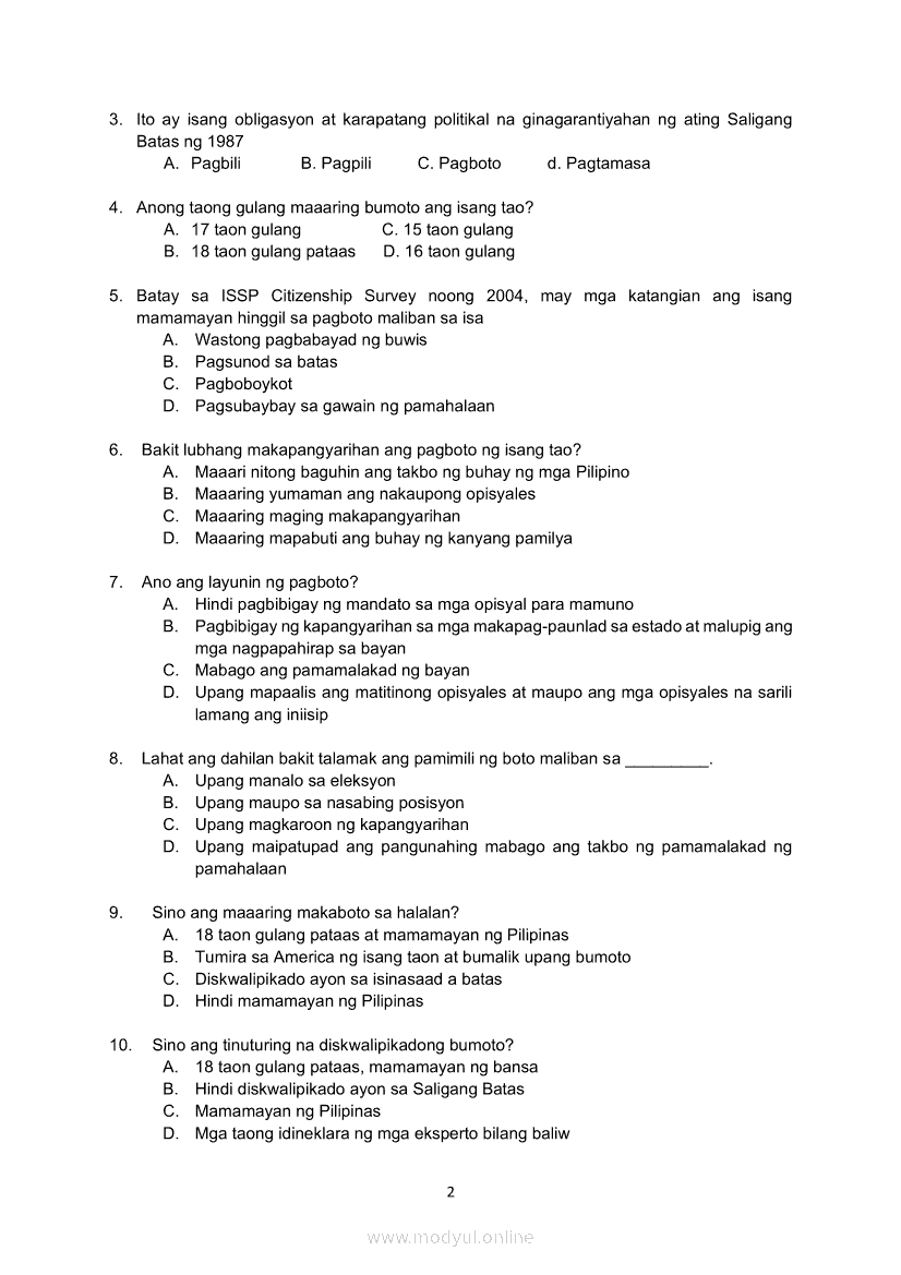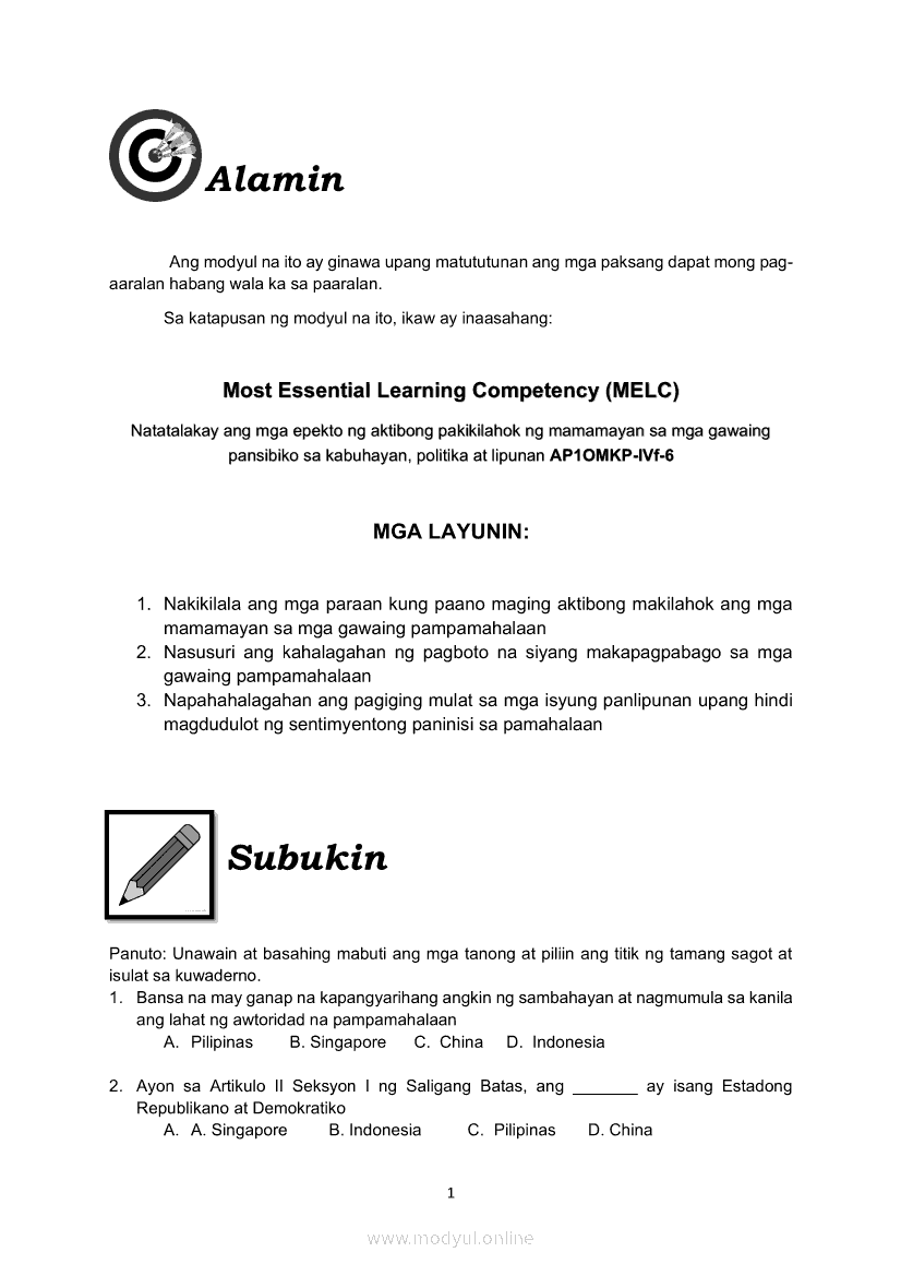 Araling Panlipunan Ikaapat na Markahan – Modyul 5 Politikal na PakikilahokMay 28, 2021 Grade 10Xiaomi Redmi Watch 5 Active 2inch LCD Display Clear Calling 5ATM Waterproof Smart Watch for only ₱3,999 ₱1,200!. Araling Panlipunan 10 4th QuarterRelatedAraling Panlipunan Ikaapat na Markahan – Modyul 3 Mga Karapatang PantaoAraling Panlipunan Ikaapat na Markahan – Modyul 4 Ang mga Karapatang Pantao at ang PagkamamayanAraling Panlipunan Ikaapat na Markahan – Modyul 7 Papel Ng Mamamayan sa Pagkakaroon ng Mabuting PamahahalaAraling Panlipunan Ikaapat na Markahan – Modyul 1 Pagkamamamayan: Konsepto at KatuturanAraling Panlipunan Ikaapat na Markahan – Modyul 8 Mabuting Pamamahala o Good Governance