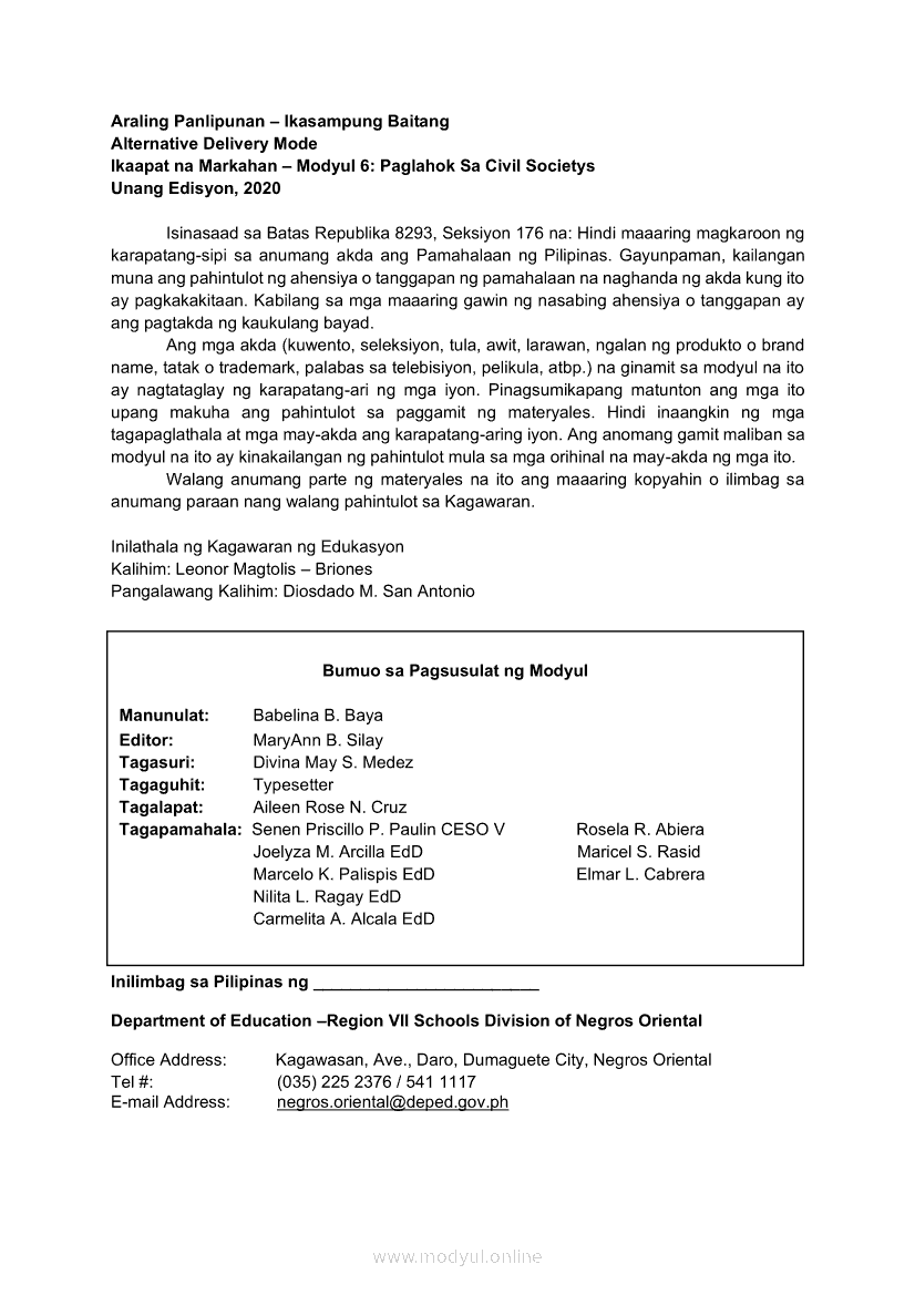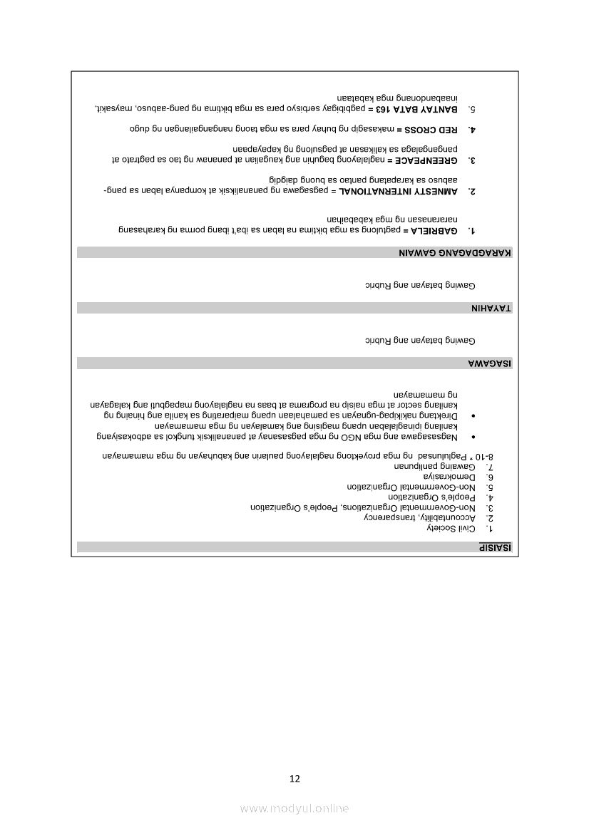 Araling Panlipunan Ikaapat na Markahan – Modyul 6 Paglahok Sa Civil SocietyMay 28, 2021 Grade 10Xiaomi Redmi Watch 5 Active 2inch LCD Display Clear Calling 5ATM Waterproof Smart Watch for only ₱3,999 ₱1,200!. Araling Panlipunan 10 4th QuarterRelatedAraling Panlipunan Ikaapat na Markahan – Modyul 1 Pagkamamamayan: Konsepto at KatuturanAraling Panlipunan Ikaapat na Markahan – Modyul 2 Lumawak Na Pananaw ng PagkamamamayanAraling Panlipunan Ikaapat na Markahan – Modyul 5 Politikal na PakikilahokAraling Panlipunan Ikaapat na Markahan – Modyul 7 Papel Ng Mamamayan sa Pagkakaroon ng Mabuting PamahahalaAraling Panlipunan Ikaapat na Markahan – Modyul 4 Ang mga Karapatang Pantao at ang Pagkamamayan