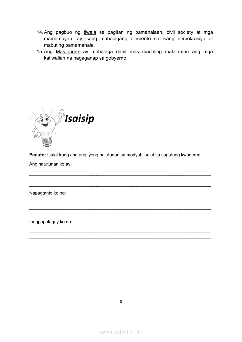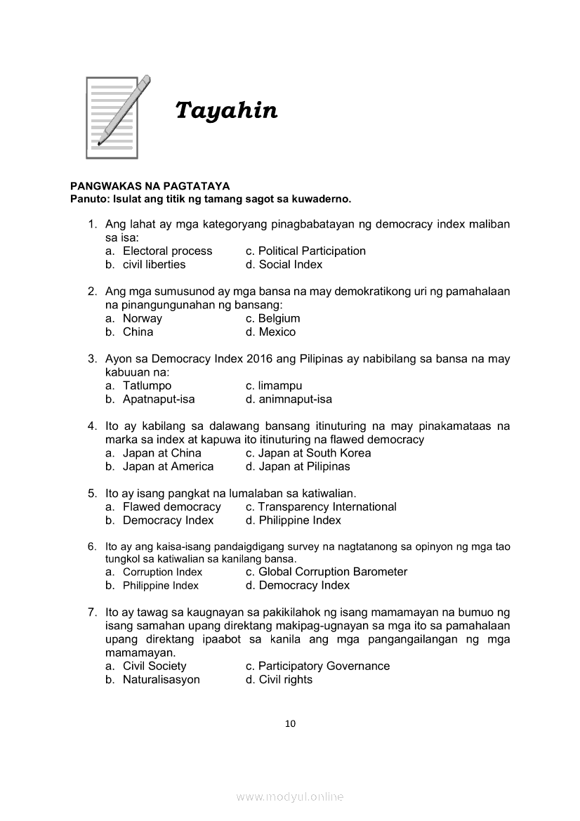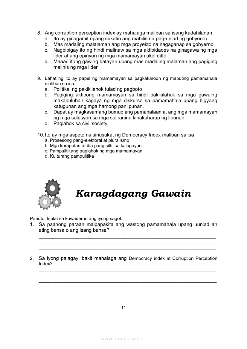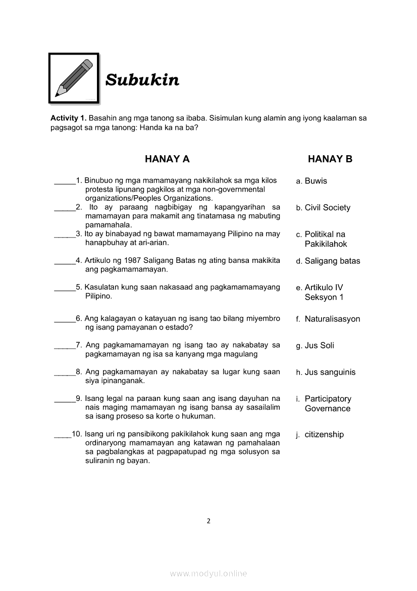 Araling Panlipunan Ikaapat na Markahan – Modyul 7 Papel Ng Mamamayan sa Pagkakaroon ng Mabuting PamahahalaMay 28, 2021 Grade 10Xiaomi Redmi Watch 5 Active 2inch LCD Display Clear Calling 5ATM Waterproof Smart Watch for only ₱3,999 ₱1,200!. Araling Panlipunan 10 4th QuarterRelatedAraling Panlipunan Ikaapat na Markahan – Modyul 3 Mga Karapatang PantaoAraling Panlipunan Ikaapat na Markahan – Modyul 1 Pagkamamamayan: Konsepto at KatuturanAraling Panlipunan Ikaapat na Markahan – Modyul 5 Politikal na PakikilahokAraling Panlipunan Ikaapat na Markahan – Modyul 2 Lumawak Na Pananaw ng PagkamamamayanAraling Panlipunan Ikaapat na Markahan – Modyul 6 Paglahok Sa Civil Society