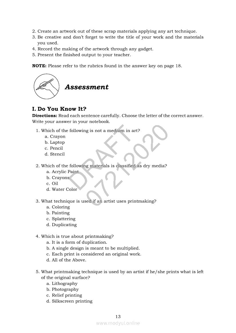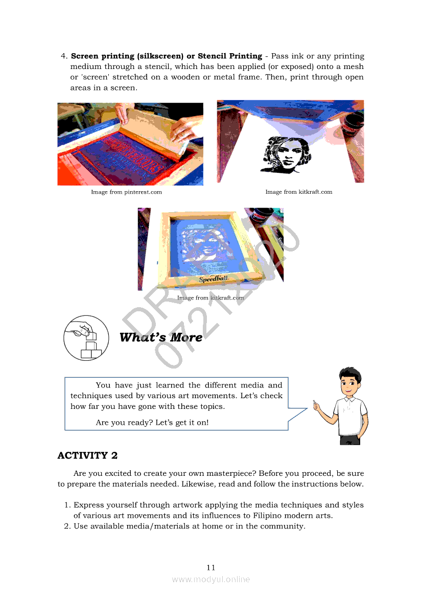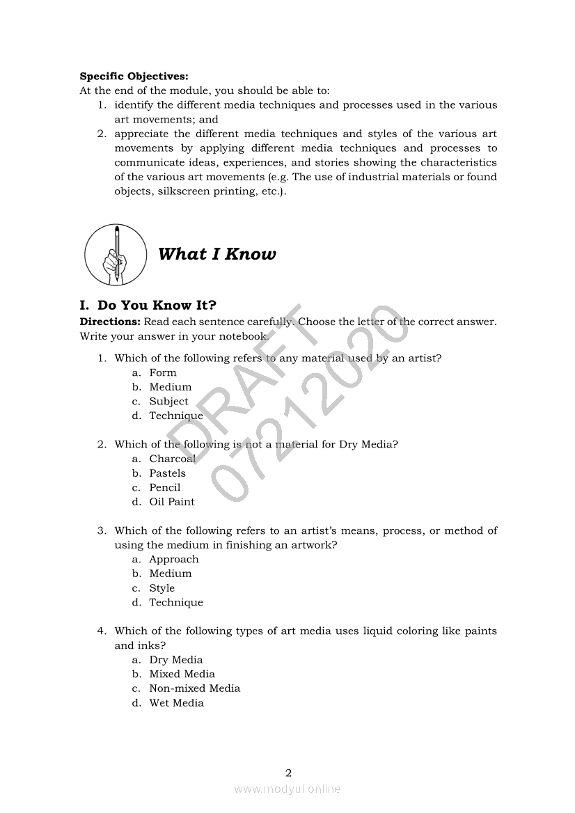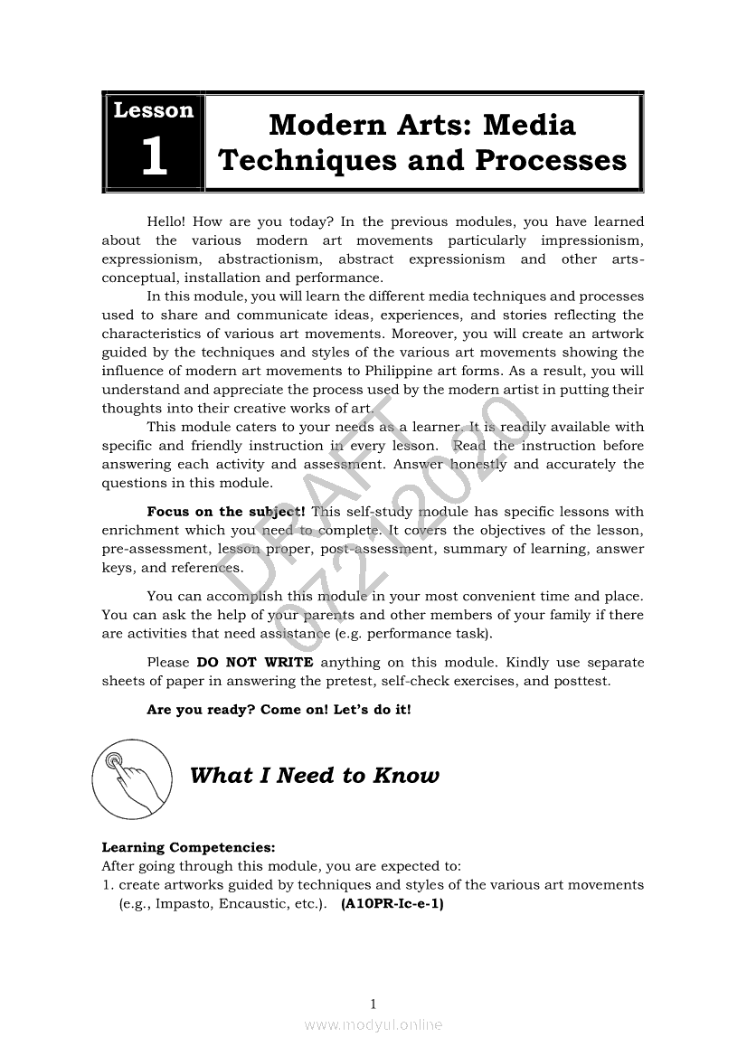 Arts 10 Module 5: Modern Arts: Media Techniques and ProcessesApr 22, 2021 Grade 10Xiaomi Redmi Watch 5 Active 2inch LCD Display Clear Calling 5ATM Waterproof Smart Watch for only ₱3,999 ₱1,200!. Arts 10RelatedARTS Quarter 4 – Module 4b: Original Performance With the Use of MediaARTS Quarter 4 – Module 4a: Original Performance with the Use of MediaArts 10 Quarter 2 – Module 3: Digital/Computer Art ApplicationsArts 10 Module 3: The Modern Filipino Artists and Their WorksArts 10 Module 2: Characteristics of Arts from the Various Art Movements