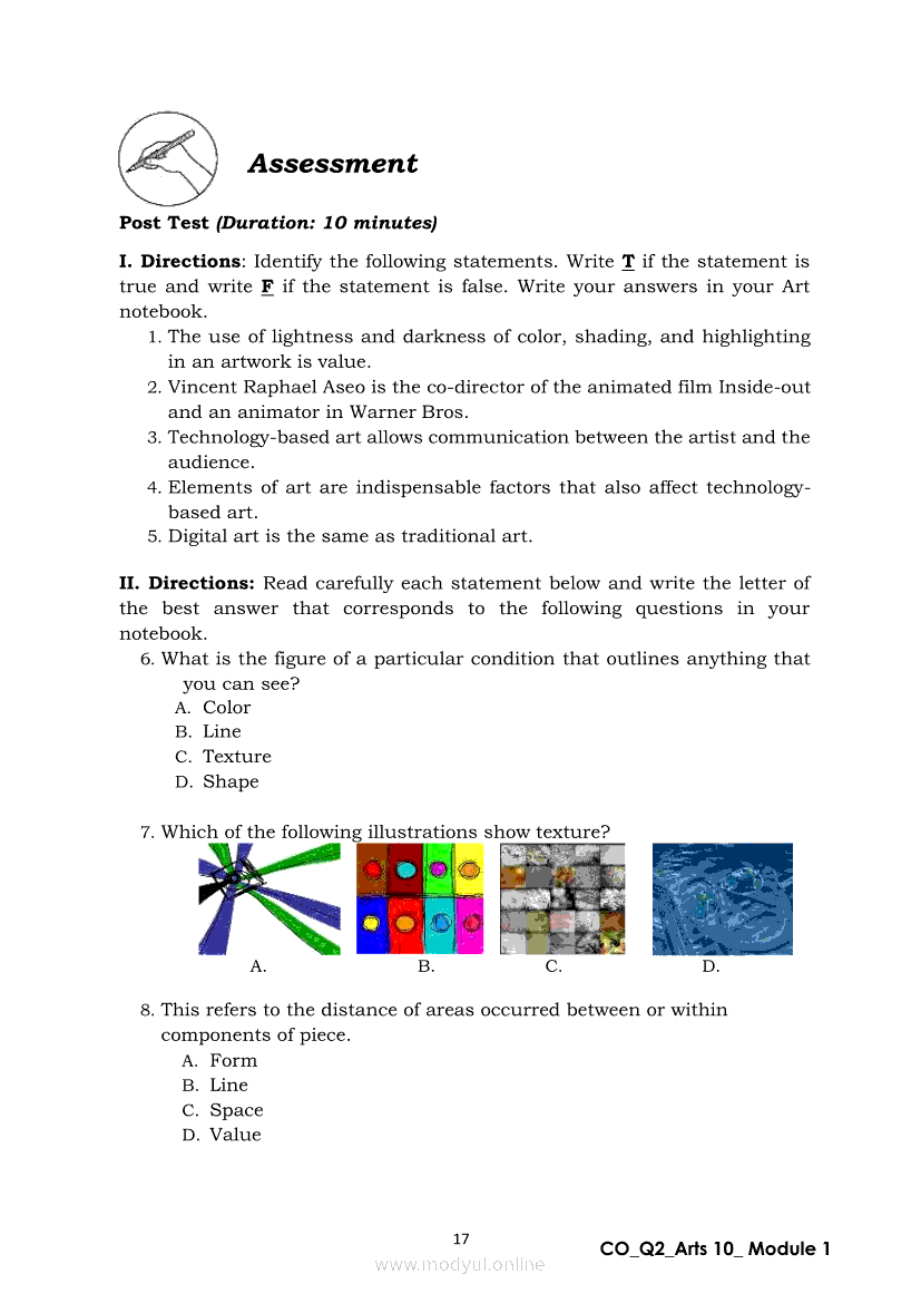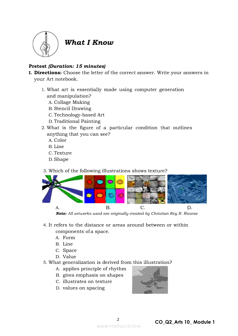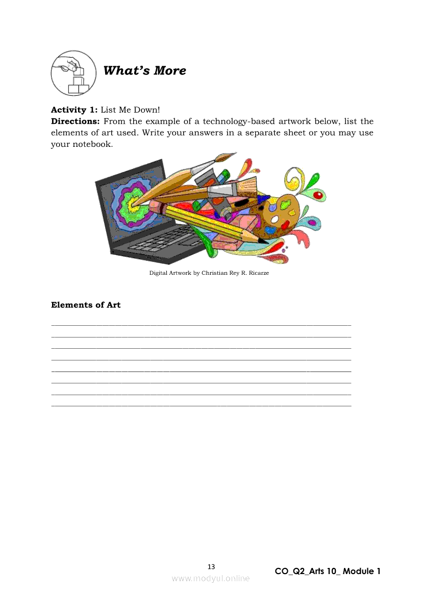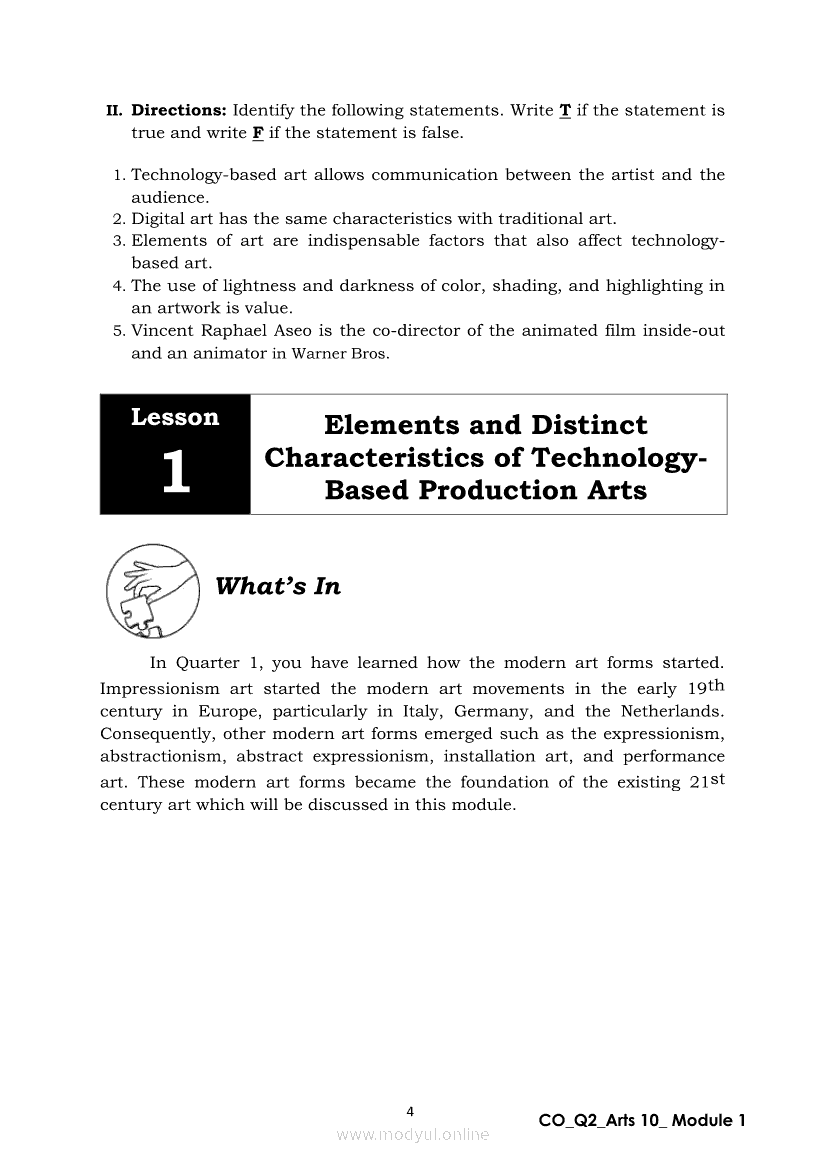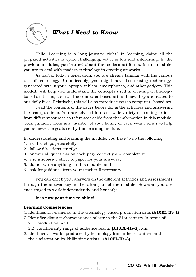 Arts 10 Quarter 2 – Module 1: Elements and Distinct Characteristics of TechnologyBased Production ArtsApr 22, 2021 Grade 10Xiaomi Redmi Watch 5 Active 2inch LCD Display Clear Calling 5ATM Waterproof Smart Watch for only ₱3,999 ₱1,200!. Arts 10RelatedARTS Quarter 4 – Module 4b: Original Performance With the Use of MediaARTS Quarter 4 – Module 4a: Original Performance with the Use of MediaArts 10 Module 4: The Comparison of Modern Art MovementsArts 10 Module 2: Characteristics of Arts from the Various Art MovementsArts 10 Module 3: The Modern Filipino Artists and Their Works