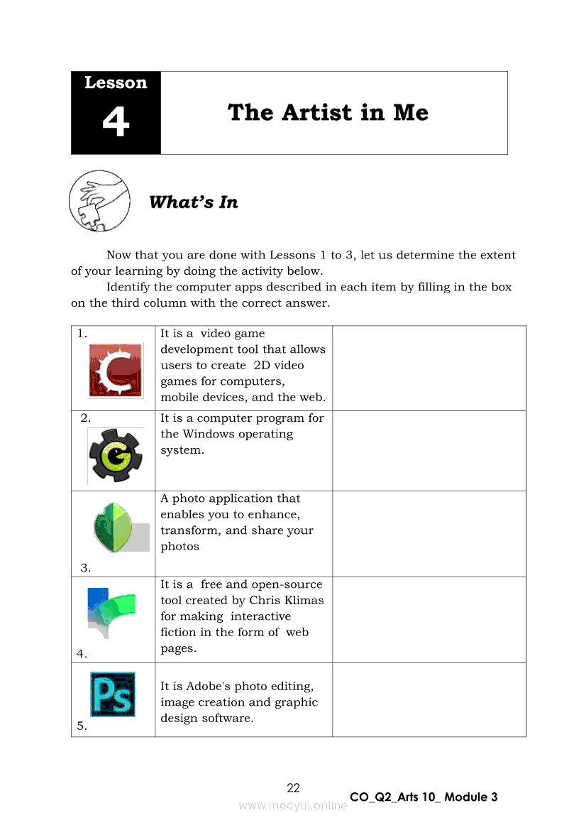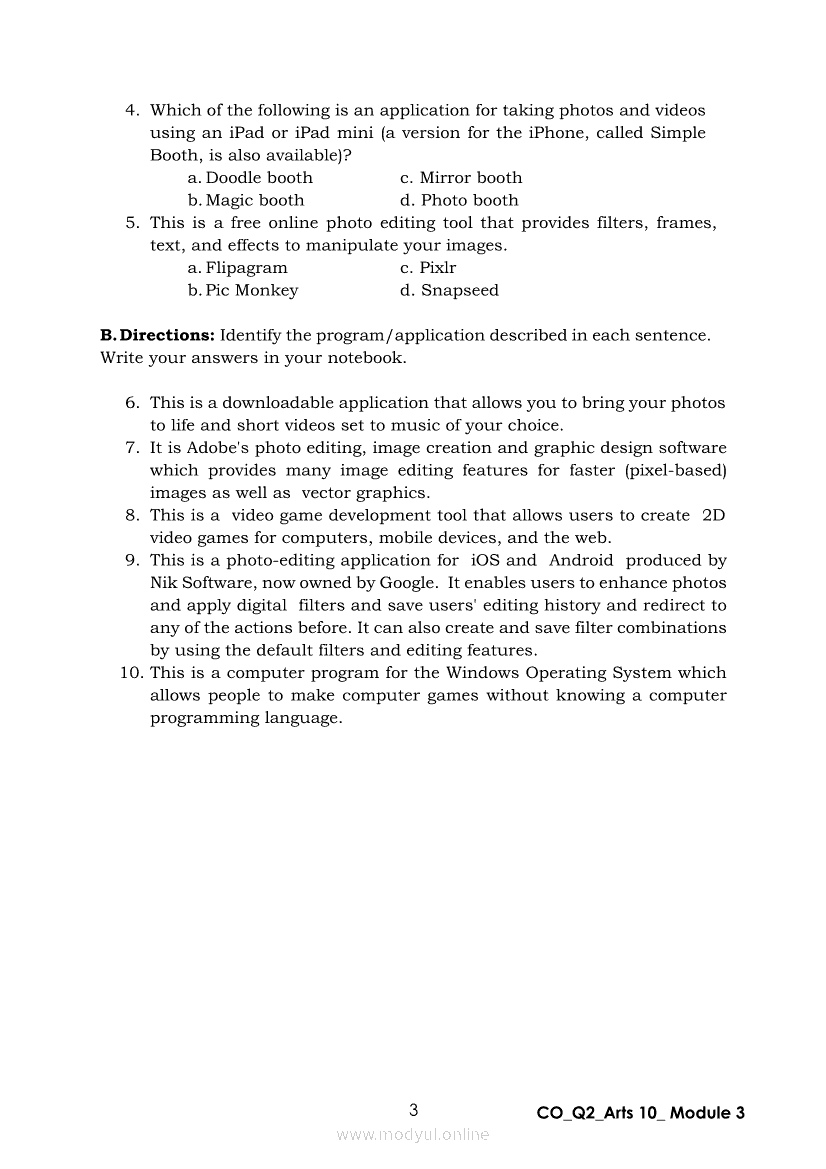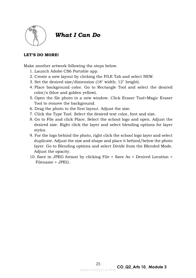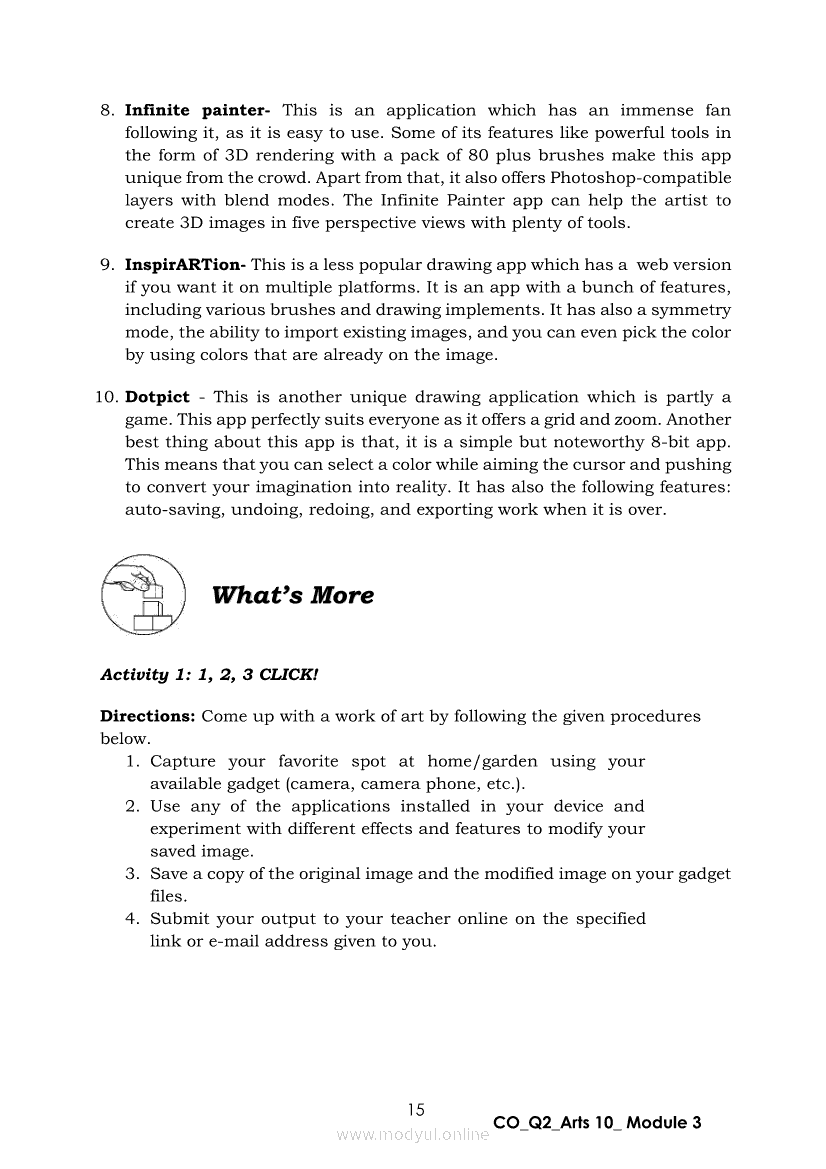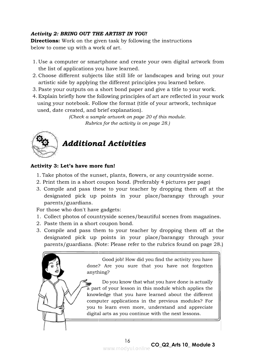 Arts 10 Quarter 2 – Module 3: Digital/Computer Art ApplicationsApr 22, 2021 Grade 10Xiaomi Redmi Watch 5 Active 2inch LCD Display Clear Calling 5ATM Waterproof Smart Watch for only ₱3,999 ₱1,200!. Arts 10RelatedARTS Quarter 4 – Module 4a: Original Performance with the Use of MediaARTS Quarter 4 – Module 4b: Original Performance With the Use of MediaArts 10 Module 1: Principles of Design and Elements of ArtsArts 10 Module 2: Characteristics of Arts from the Various Art MovementsArts 10 Module 3: The Modern Filipino Artists and Their Works