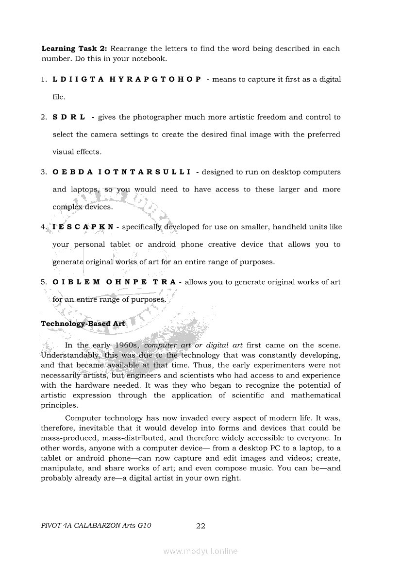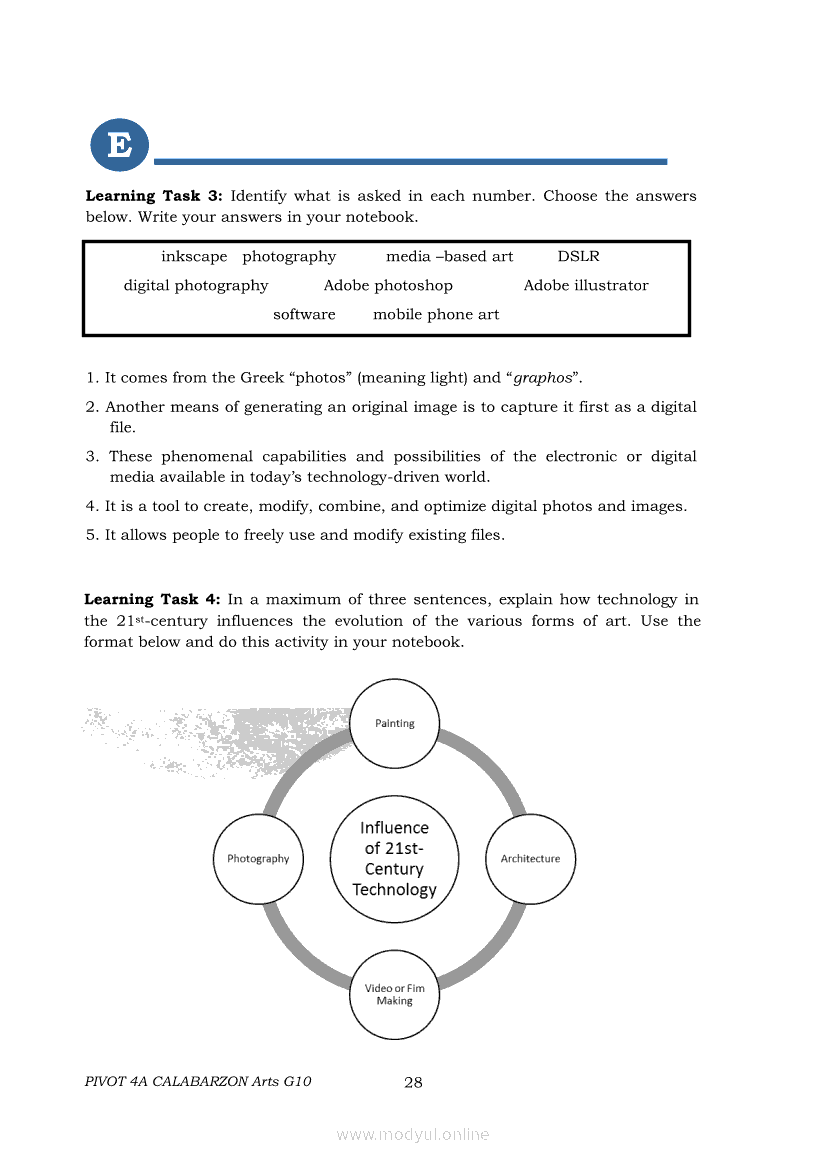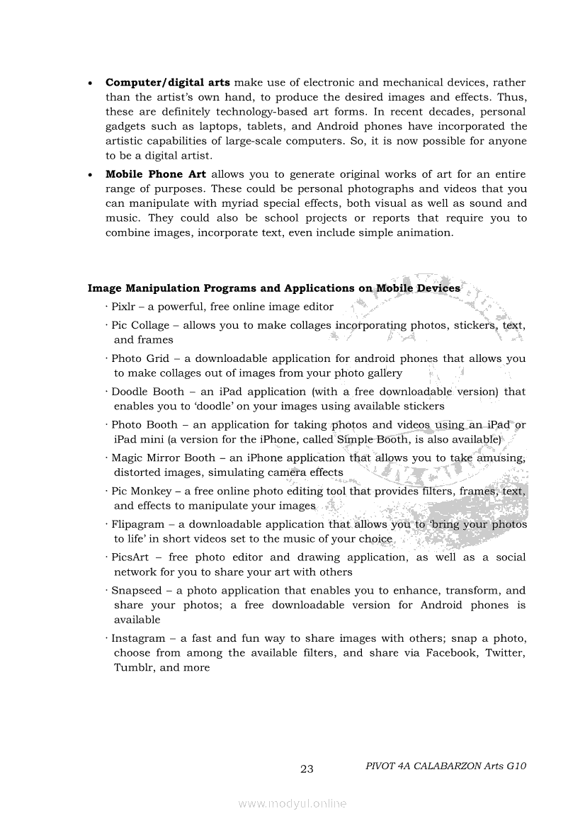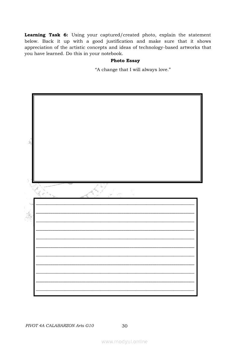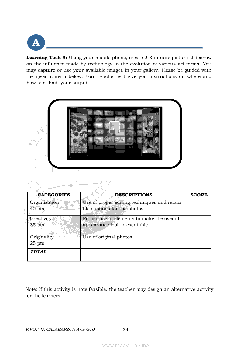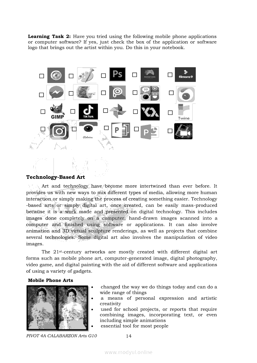 Arts 10 Second Quarter Module (PIVOT)Apr 22, 2021 Grade 10Xiaomi Redmi Watch 5 Active 2inch LCD Display Clear Calling 5ATM Waterproof Smart Watch for only ₱3,999 ₱1,200!. Arts 10RelatedARTS Quarter 4 – Module 4a: Original Performance with the Use of MediaARTS Quarter 4 – Module 4b: Original Performance With the Use of MediaArts 10 Module 1: Principles of Design and Elements of ArtsArts 10 Module 3: The Modern Filipino Artists and Their WorksArts 10 Module 5: Modern Arts: Media Techniques and Processes