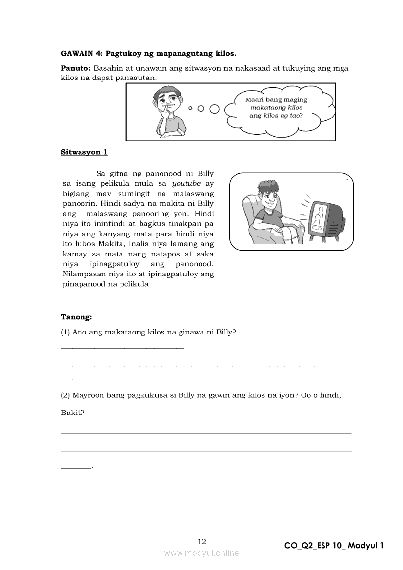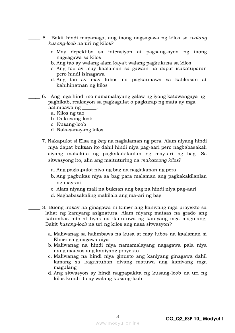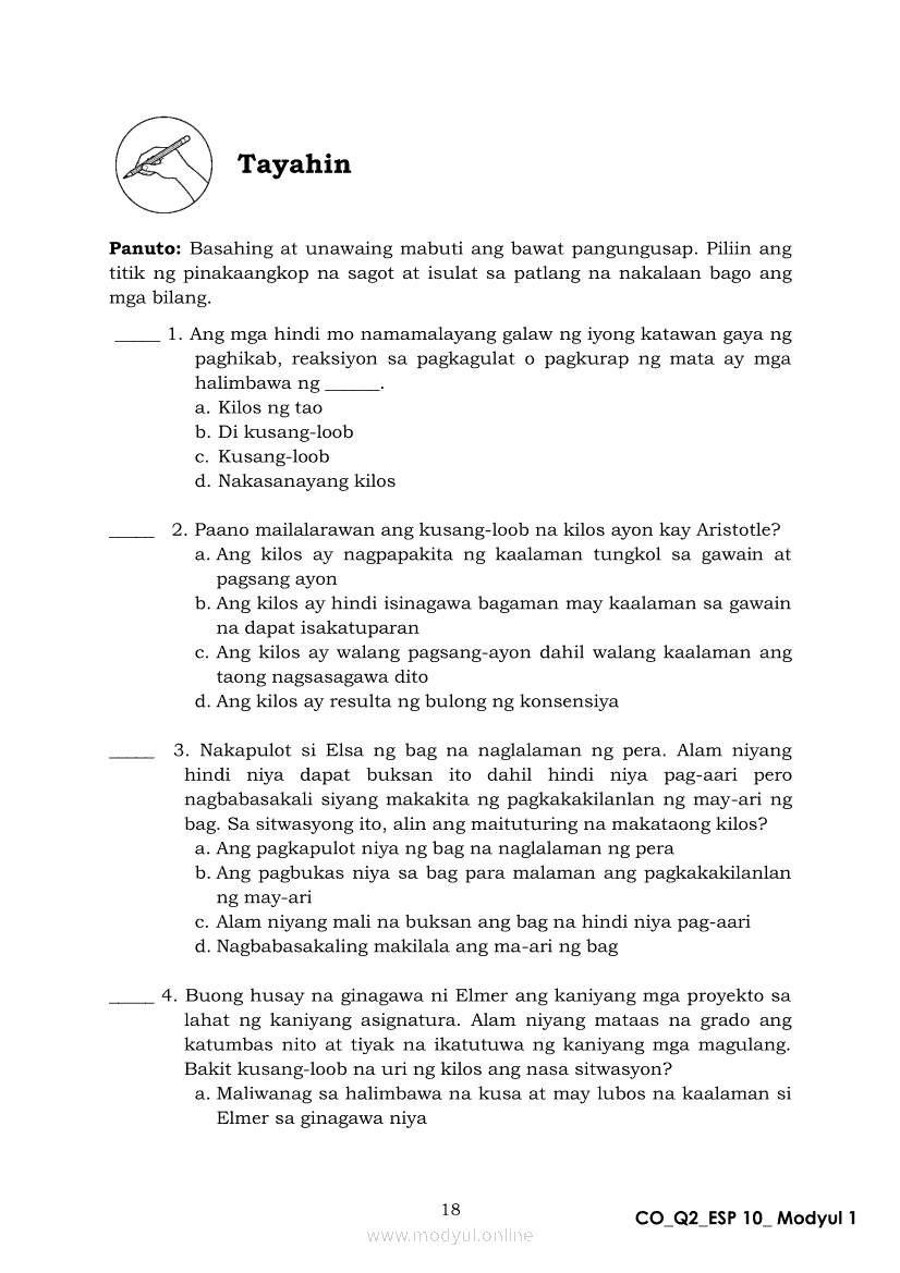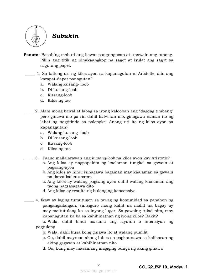Edukasyon sa Pagpapakatao 10 Ikalawang Markahan – Modyul 1: Ang Pagkukusa sa Makataong KilosApr 22, 2021 Grade 10Xiaomi Redmi Watch 5 Active 2inch LCD Display Clear Calling 5ATM Waterproof Smart Watch for only ₱3,999 ₱1,200!. Edukasyon sa Pagpapakatao 10RelatedEdukasyon sa Pagpapakatao Ikaapat na Markahan – Modyul 1a: Tamang Paggamit ng Kapangyarihan at Pangangalaga sa Kalikasan Unang LinggoEdukasyon sa Pagpapakatao Ikaapat na Markahan – Modyul 2b: Kahalagahan ng Paggalang sa Dignidad at Sekswalidad Ikaapat na LinggoEdukasyon sa Pagpapakatao Ikaapat na Markahan – Modyul 1b: Tamang Paggamit ng Kapangyarihan at Pangangalaga sa Kalikasan Ikalawang LinggoEdukasyon sa Pagpapakatao Ikaapat na Markahan – Modyul 3b: Isyu sa Kawalan ng Paggalang sa Katotohanan Ikaanim na LinggoEdukasyon sa Pagpapakatao Ikaapat na Markahan – Modyul 3a: Isyu sa Kawalan ng Paggalang sa Katotohanan Ikalimang Linggo