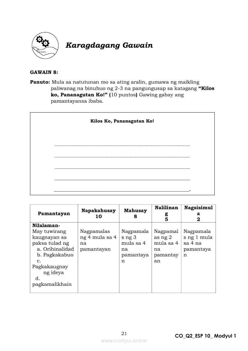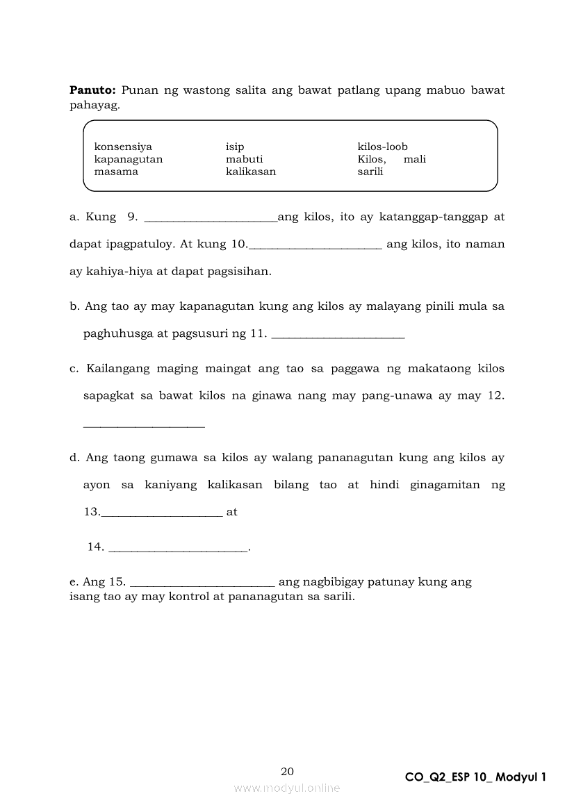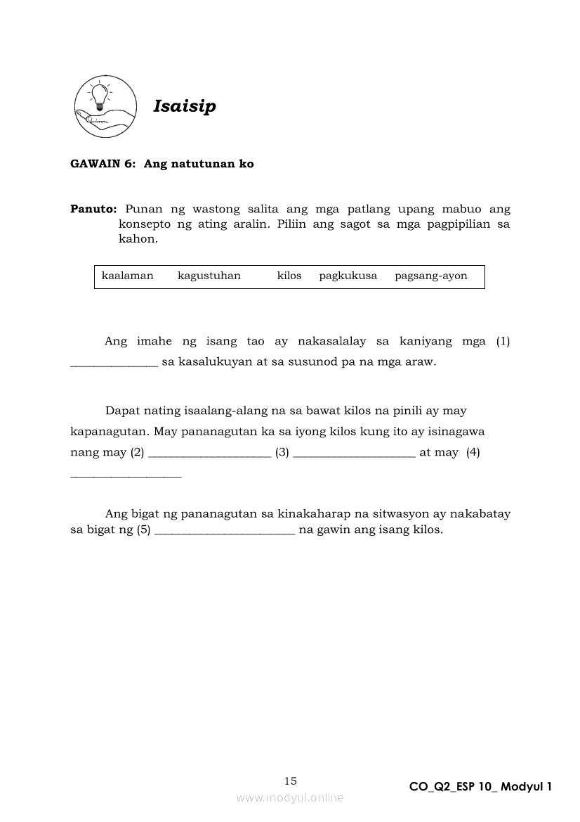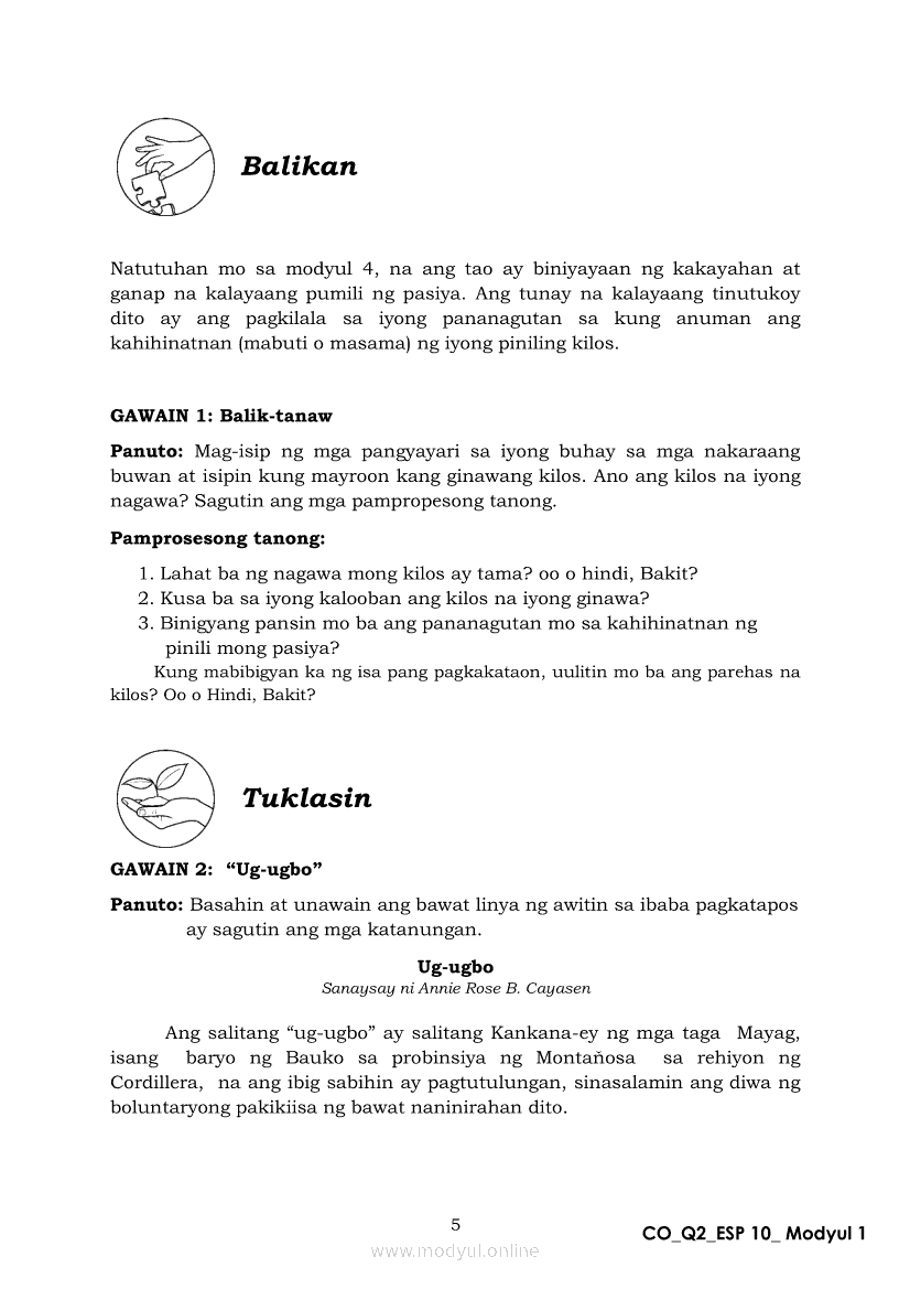 Edukasyon sa Pagpapakatao 10 Ikalawang Markahan – Modyul 1: Ang Pagkukusa sa Makataong KilosApr 22, 2021 Grade 10Xiaomi Redmi Watch 5 Active 2inch LCD Display Clear Calling 5ATM Waterproof Smart Watch for only ₱3,999 ₱1,200!. Edukasyon sa Pagpapakatao 10RelatedEdukasyon sa Pagpapakatao Ikaapat na Markahan – Modyul 1a: Tamang Paggamit ng Kapangyarihan at Pangangalaga sa Kalikasan Unang LinggoEdukasyon sa Pagpapakatao Ikaapat na Markahan – Modyul 2b: Kahalagahan ng Paggalang sa Dignidad at Sekswalidad Ikaapat na LinggoEdukasyon sa Pagpapakatao Ikaapat na Markahan – Modyul 1b: Tamang Paggamit ng Kapangyarihan at Pangangalaga sa Kalikasan Ikalawang LinggoEdukasyon sa Pagpapakatao Ikaapat na Markahan – Modyul 3b: Isyu sa Kawalan ng Paggalang sa Katotohanan Ikaanim na LinggoEdukasyon sa Pagpapakatao Ikaapat na Markahan – Modyul 3a: Isyu sa Kawalan ng Paggalang sa Katotohanan Ikalimang Linggo