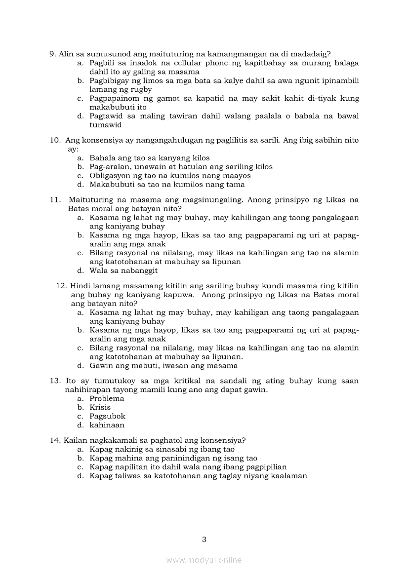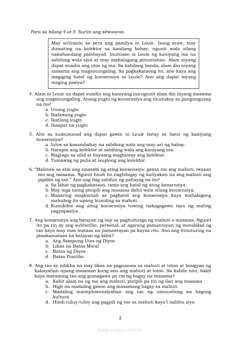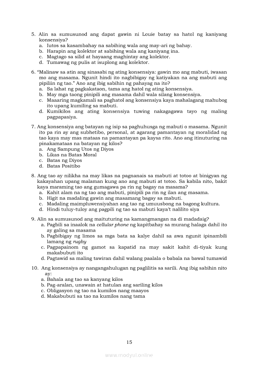 Edukasyon sa Pagpapakatao 10 Modyul 3 Prinsipyo ng Likas na Batas MoralApr 22, 2021 Grade 10Xiaomi Redmi Watch 5 Active 2inch LCD Display Clear Calling 5ATM Waterproof Smart Watch for only ₱3,999 ₱1,200!. Edukasyon sa Pagpapakatao 10RelatedEdukasyon sa Pagpapakatao Ikaapat na Markahan – Modyul 1b: Tamang Paggamit ng Kapangyarihan at Pangangalaga sa Kalikasan Ikalawang LinggoEdukasyon sa Pagpapakatao Ikaapat na Markahan – Modyul 3b: Isyu sa Kawalan ng Paggalang sa Katotohanan Ikaanim na LinggoEdukasyon sa Pagpapakatao Ikaapat na Markahan – Modyul 2a: Isyu sa Kawalan ng Paggalang sa Dignidad at Sekswalidad Ikatlong LinggoEdukasyon sa Pagpapakatao Ikaapat na Markahan – Modyul 2b: Kahalagahan ng Paggalang sa Dignidad at Sekswalidad Ikaapat na LinggoEdukasyon sa Pagpapakatao Ikaapat na Markahan – Modyul 3a: Isyu sa Kawalan ng Paggalang sa Katotohanan Ikalimang Linggo