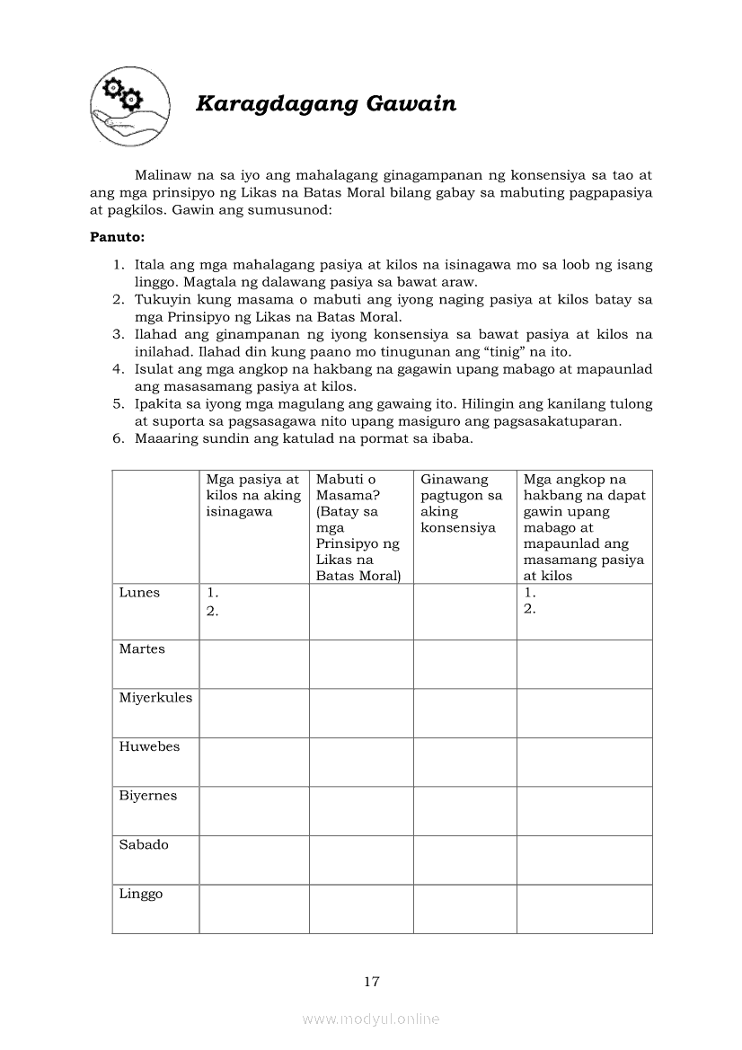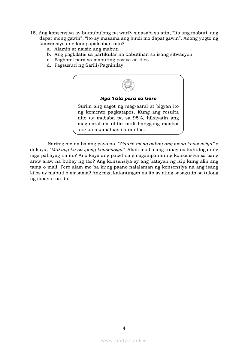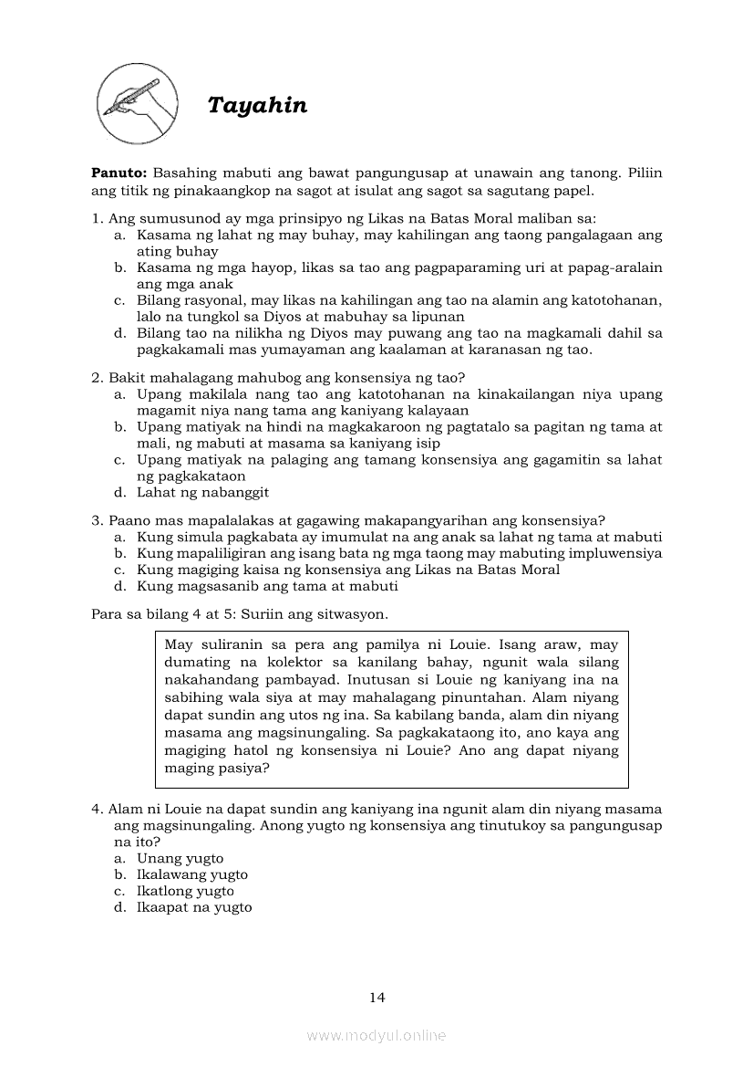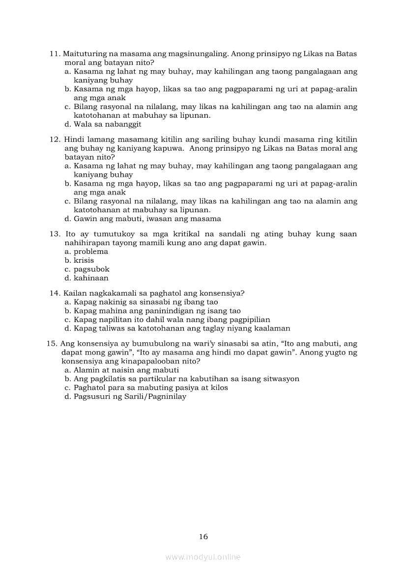 Edukasyon sa Pagpapakatao 10 Modyul 3 Prinsipyo ng Likas na Batas MoralApr 22, 2021 Grade 10Xiaomi Redmi Watch 5 Active 2inch LCD Display Clear Calling 5ATM Waterproof Smart Watch for only ₱3,999 ₱1,200!. Edukasyon sa Pagpapakatao 10RelatedEdukasyon sa Pagpapakatao Ikaapat na Markahan – Modyul 1b: Tamang Paggamit ng Kapangyarihan at Pangangalaga sa Kalikasan Ikalawang LinggoEdukasyon sa Pagpapakatao Ikaapat na Markahan – Modyul 3b: Isyu sa Kawalan ng Paggalang sa Katotohanan Ikaanim na LinggoEdukasyon sa Pagpapakatao Ikaapat na Markahan – Modyul 2a: Isyu sa Kawalan ng Paggalang sa Dignidad at Sekswalidad Ikatlong LinggoEdukasyon sa Pagpapakatao Ikaapat na Markahan – Modyul 2b: Kahalagahan ng Paggalang sa Dignidad at Sekswalidad Ikaapat na LinggoEdukasyon sa Pagpapakatao Ikaapat na Markahan – Modyul 3a: Isyu sa Kawalan ng Paggalang sa Katotohanan Ikalimang Linggo