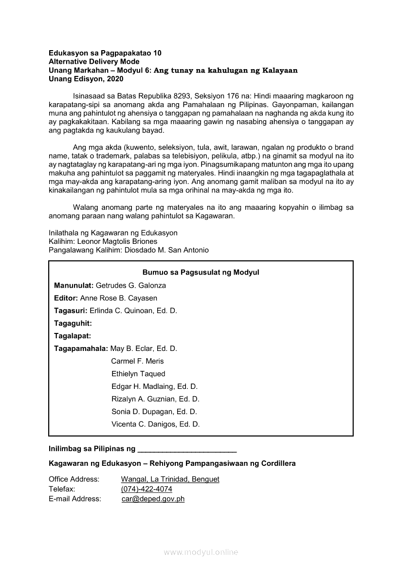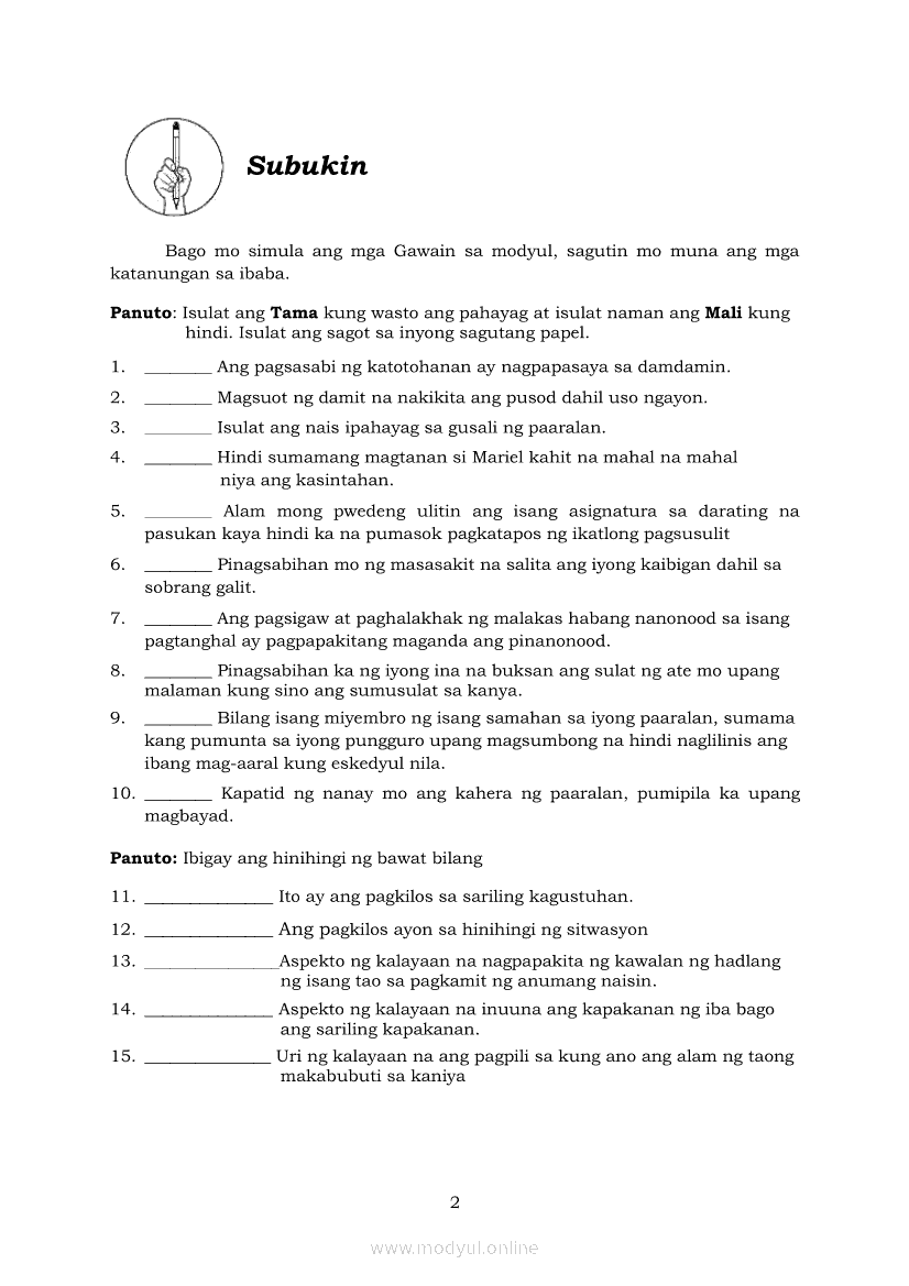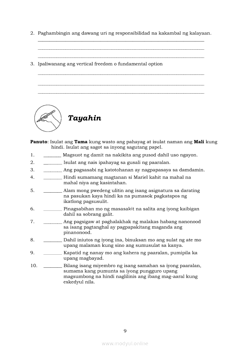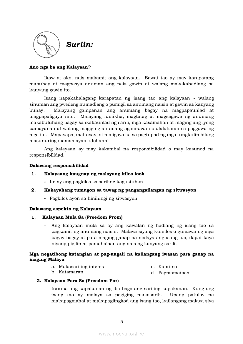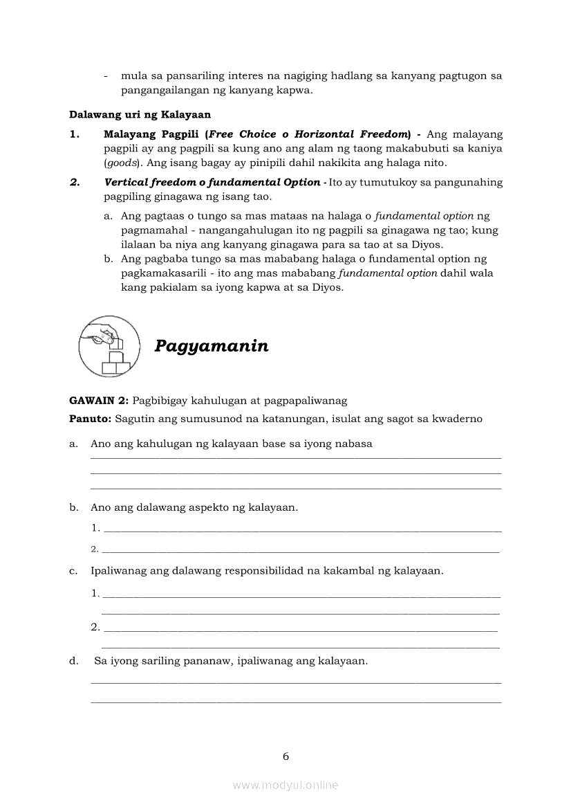 Edukasyon sa Pagpapakatao 10 Modyul 6: Ang tunay na kahulugan ng kalayaanApr 22, 2021 Grade 10Xiaomi Redmi Watch 5 Active 2inch LCD Display Clear Calling 5ATM Waterproof Smart Watch for only ₱3,999 ₱1,200!. Edukasyon sa Pagpapakatao 10RelatedEdukasyon sa Pagpapakatao Ikaapat na Markahan – Modyul 1b: Tamang Paggamit ng Kapangyarihan at Pangangalaga sa Kalikasan Ikalawang LinggoEdukasyon sa Pagpapakatao Ikaapat na Markahan – Modyul 3a: Isyu sa Kawalan ng Paggalang sa Katotohanan Ikalimang LinggoEdukasyon sa Pagpapakatao Ikaapat na Markahan – Modyul 2b: Kahalagahan ng Paggalang sa Dignidad at Sekswalidad Ikaapat na LinggoEdukasyon sa Pagpapakatao Ikaapat na Markahan – Modyul 1a: Tamang Paggamit ng Kapangyarihan at Pangangalaga sa Kalikasan Unang LinggoEdukasyon sa Pagpapakatao Ikaapat na Markahan – Modyul 2a: Isyu sa Kawalan ng Paggalang sa Dignidad at Sekswalidad Ikatlong Linggo