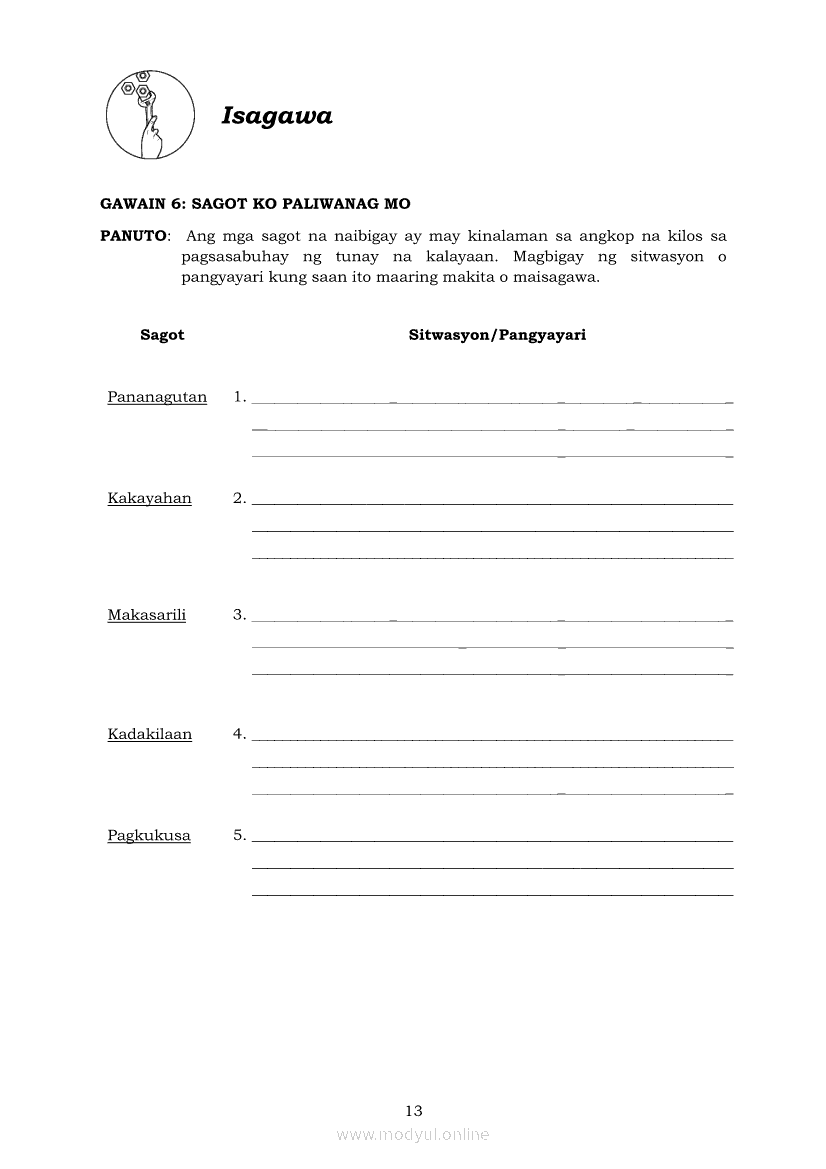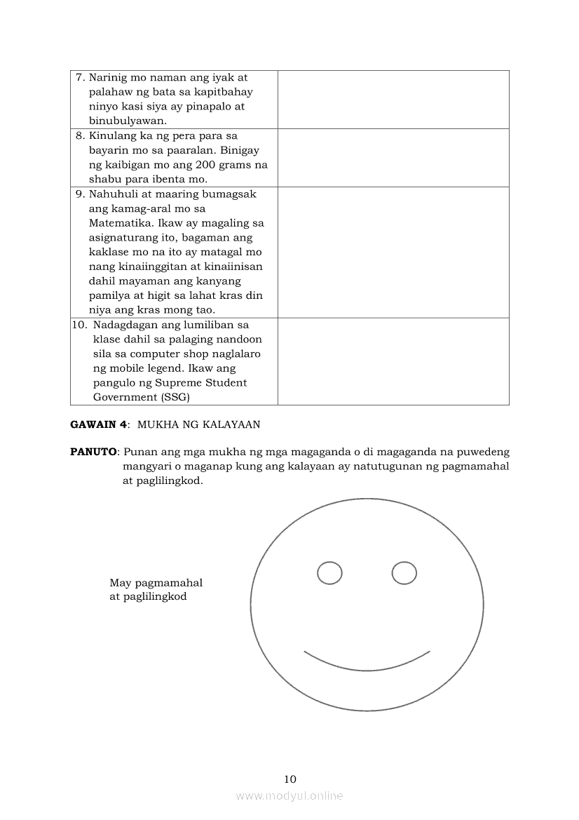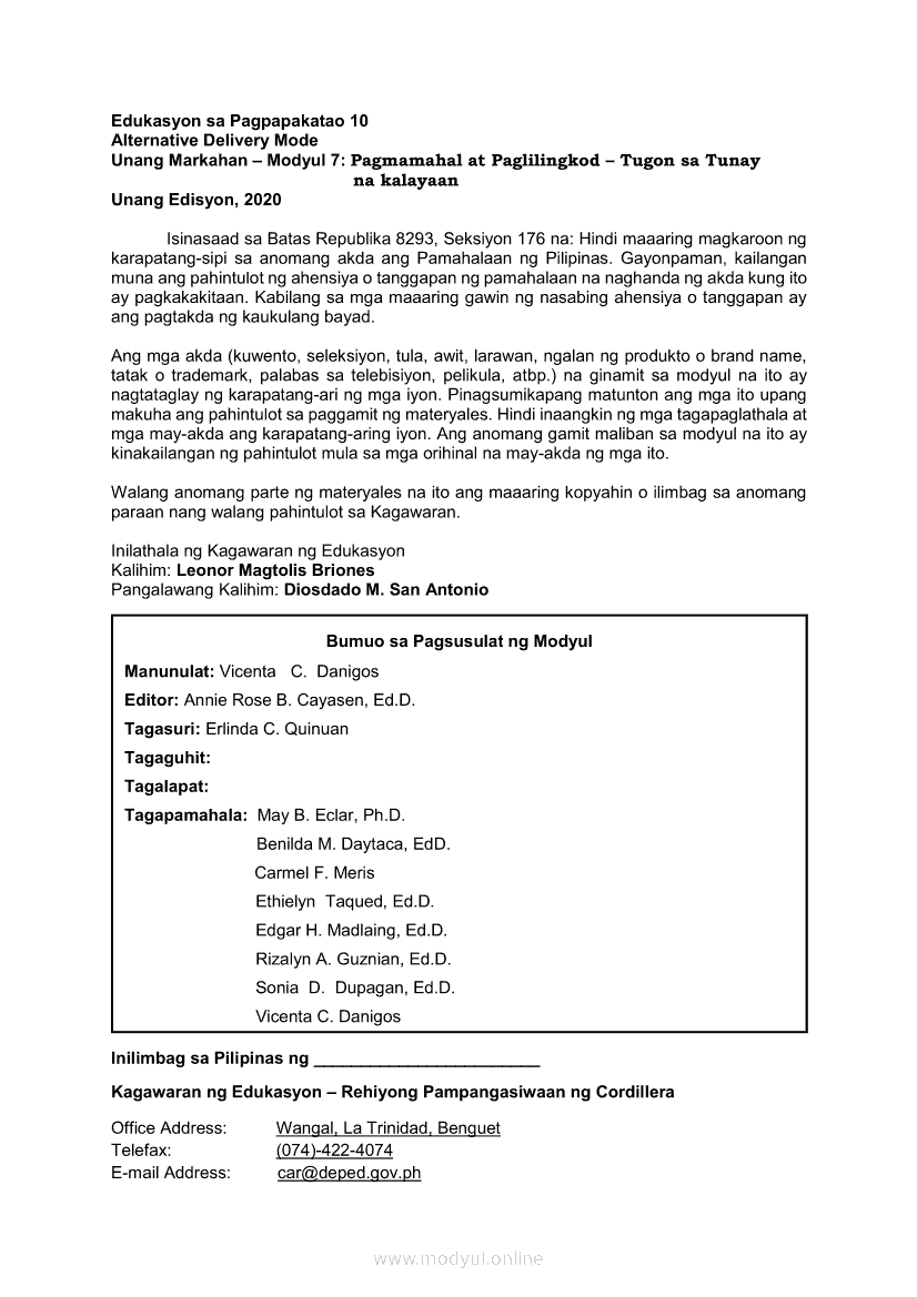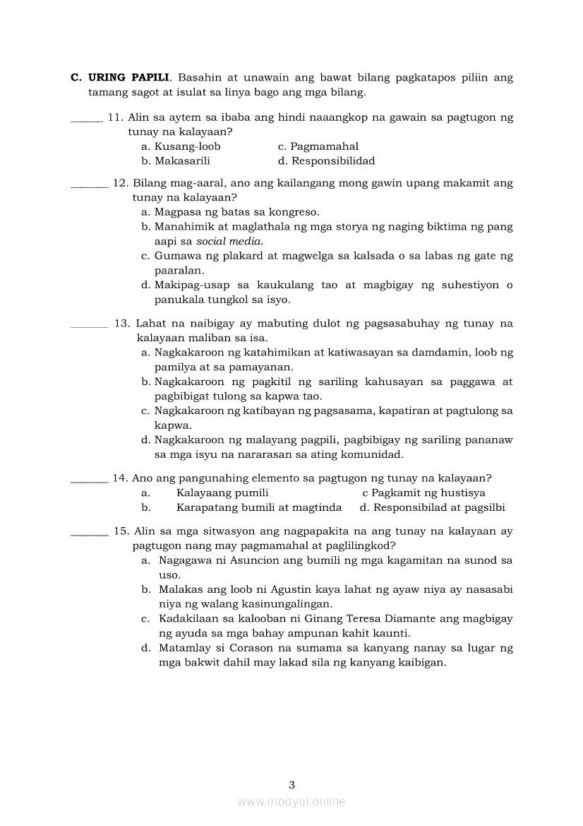 Edukasyon sa Pagpapakatao 10 Modyul 7: Pagmamahal at PaglilingkodTugon sa Tunay na KalayaanApr 22, 2021 Grade 10Xiaomi Redmi Watch 5 Active 2inch LCD Display Clear Calling 5ATM Waterproof Smart Watch for only ₱3,999 ₱1,200!. Edukasyon sa Pagpapakatao 10RelatedEdukasyon sa Pagpapakatao Ikaapat na Markahan – Modyul 2b: Kahalagahan ng Paggalang sa Dignidad at Sekswalidad Ikaapat na LinggoEdukasyon sa Pagpapakatao Ikaapat na Markahan – Modyul 1b: Tamang Paggamit ng Kapangyarihan at Pangangalaga sa Kalikasan Ikalawang LinggoEdukasyon sa Pagpapakatao Ikaapat na Markahan – Modyul 3b: Isyu sa Kawalan ng Paggalang sa Katotohanan Ikaanim na LinggoEdukasyon sa Pagpapakatao Ikaapat na Markahan – Modyul 2a: Isyu sa Kawalan ng Paggalang sa Dignidad at Sekswalidad Ikatlong LinggoEdukasyon sa Pagpapakatao Ikaapat na Markahan – Modyul 3a: Isyu sa Kawalan ng Paggalang sa Katotohanan Ikalimang Linggo
