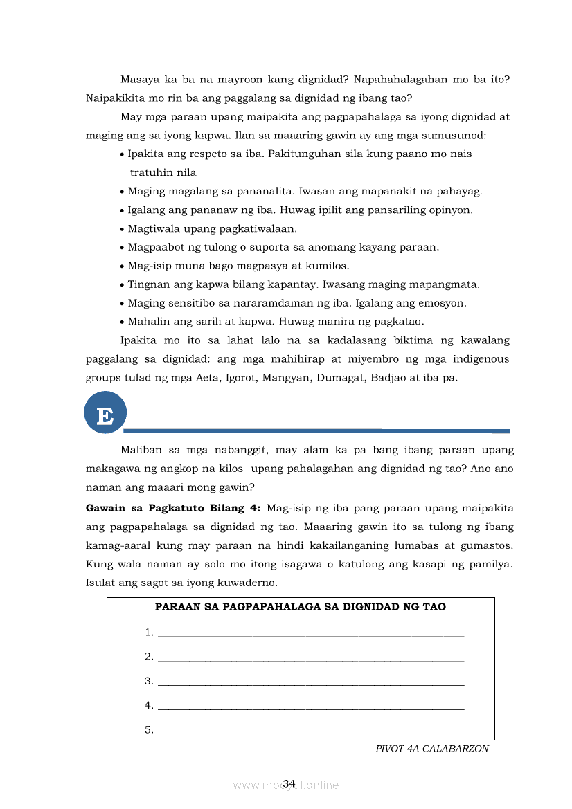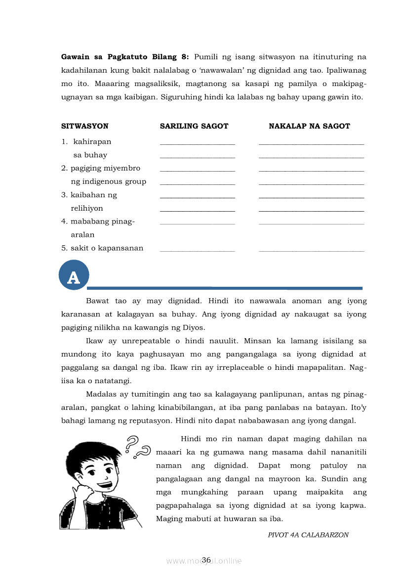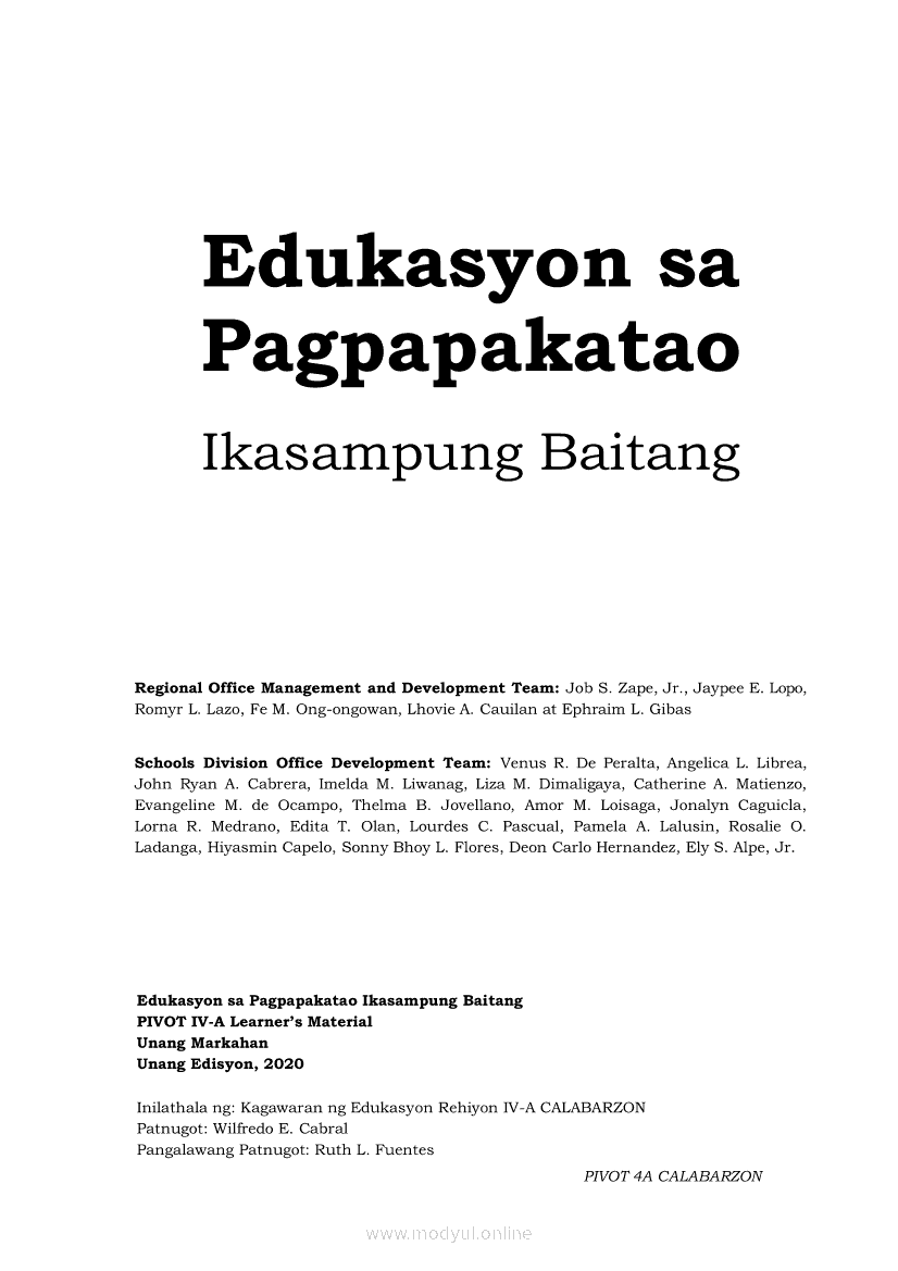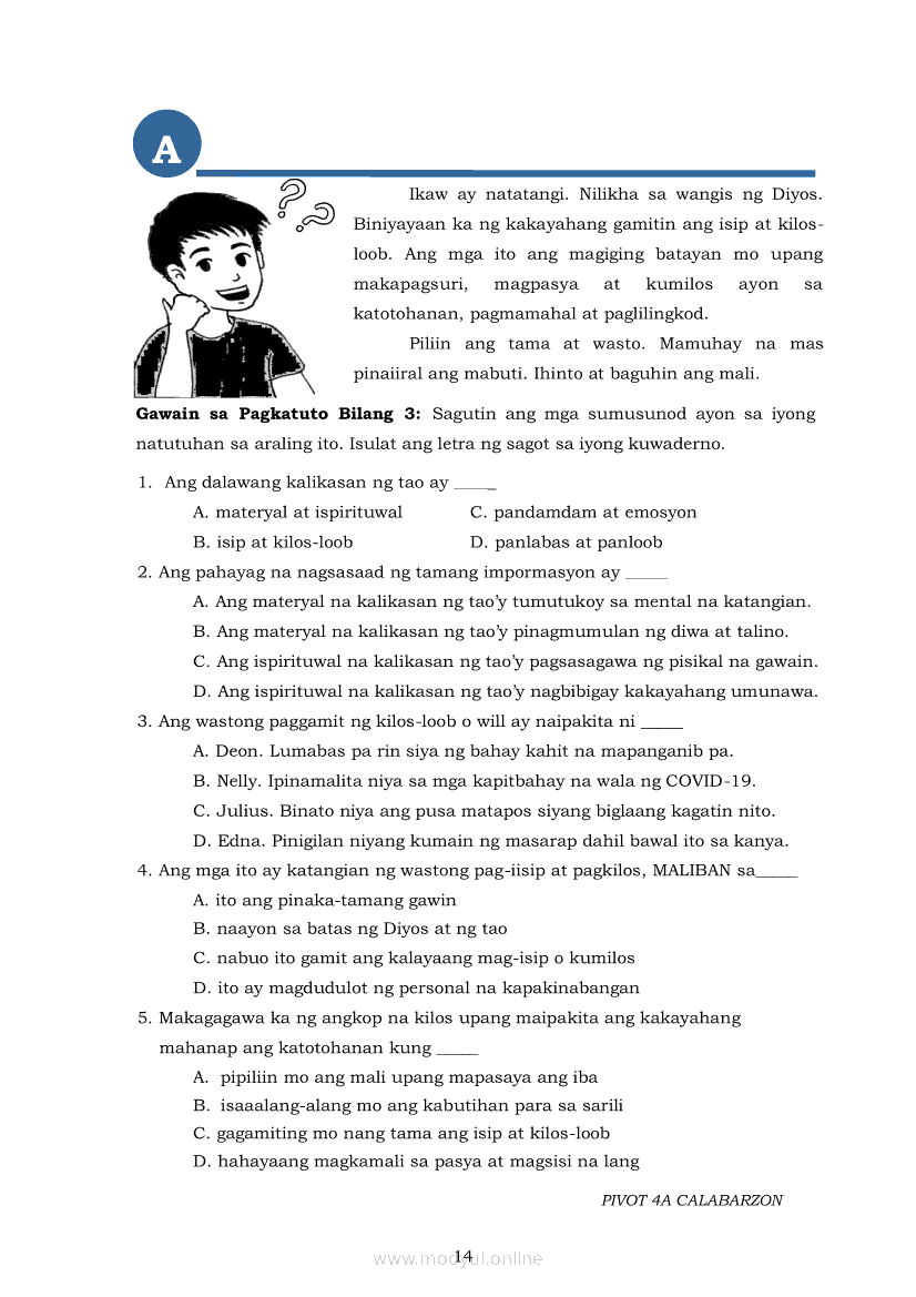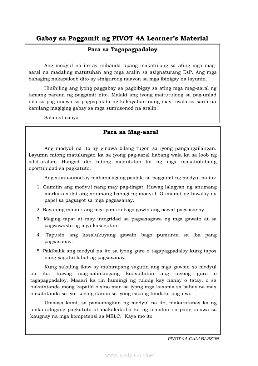 Edukasyon sa Pagpapakatao 10 PIVOT Modyul sa ESPApr 22, 2021 Grade 10Xiaomi Redmi Watch 5 Active 2inch LCD Display Clear Calling 5ATM Waterproof Smart Watch for only ₱3,999 ₱1,200!. Edukasyon sa Pagpapakatao 10RelatedEdukasyon sa Pagpapakatao Ikaapat na Markahan – Modyul 3b: Isyu sa Kawalan ng Paggalang sa Katotohanan Ikaanim na LinggoEdukasyon sa Pagpapakatao Ikaapat na Markahan – Modyul 2a: Isyu sa Kawalan ng Paggalang sa Dignidad at Sekswalidad Ikatlong LinggoEdukasyon sa Pagpapakatao Ikaapat na Markahan – Modyul 1b: Tamang Paggamit ng Kapangyarihan at Pangangalaga sa Kalikasan Ikalawang LinggoEdukasyon sa Pagpapakatao Ikaapat na Markahan – Modyul 1a: Tamang Paggamit ng Kapangyarihan at Pangangalaga sa Kalikasan Unang LinggoEdukasyon sa Pagpapakatao Ikaapat na Markahan – Modyul 2b: Kahalagahan ng Paggalang sa Dignidad at Sekswalidad Ikaapat na Linggo