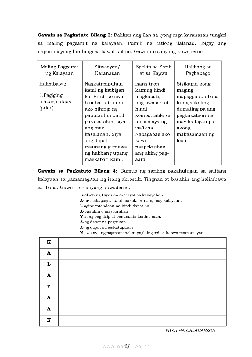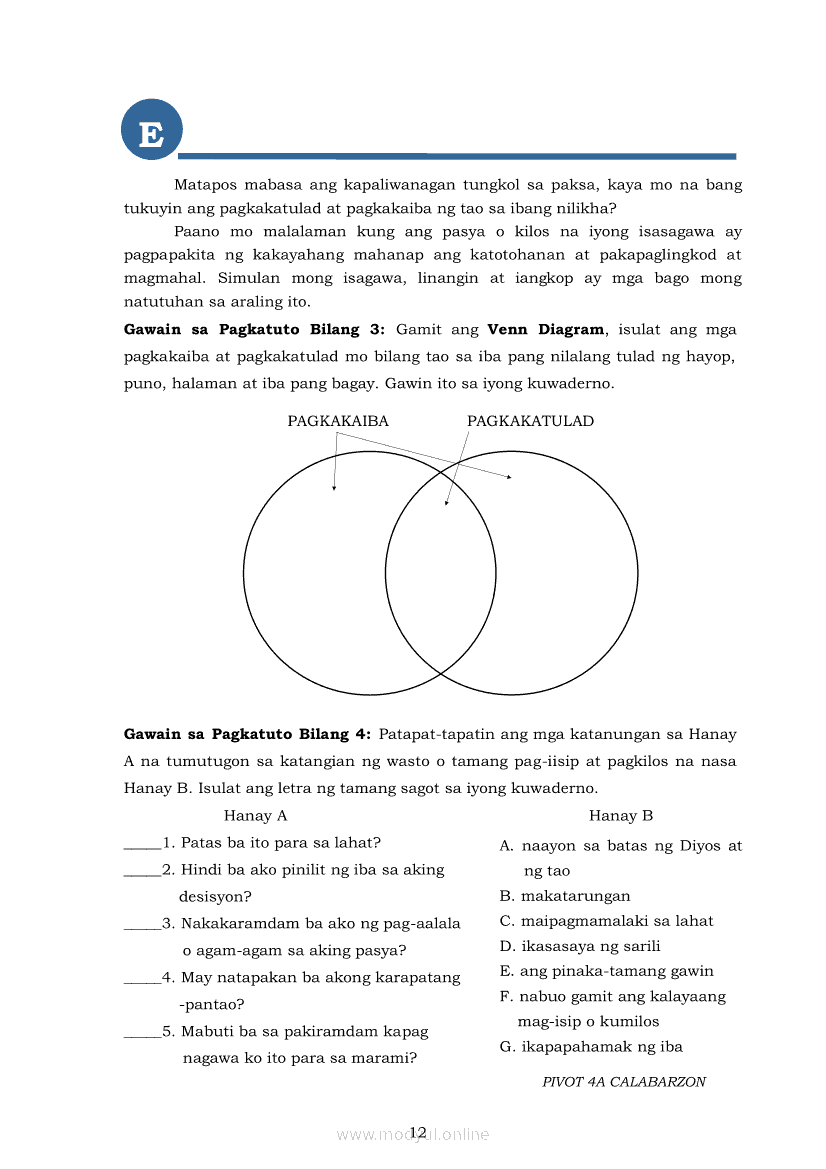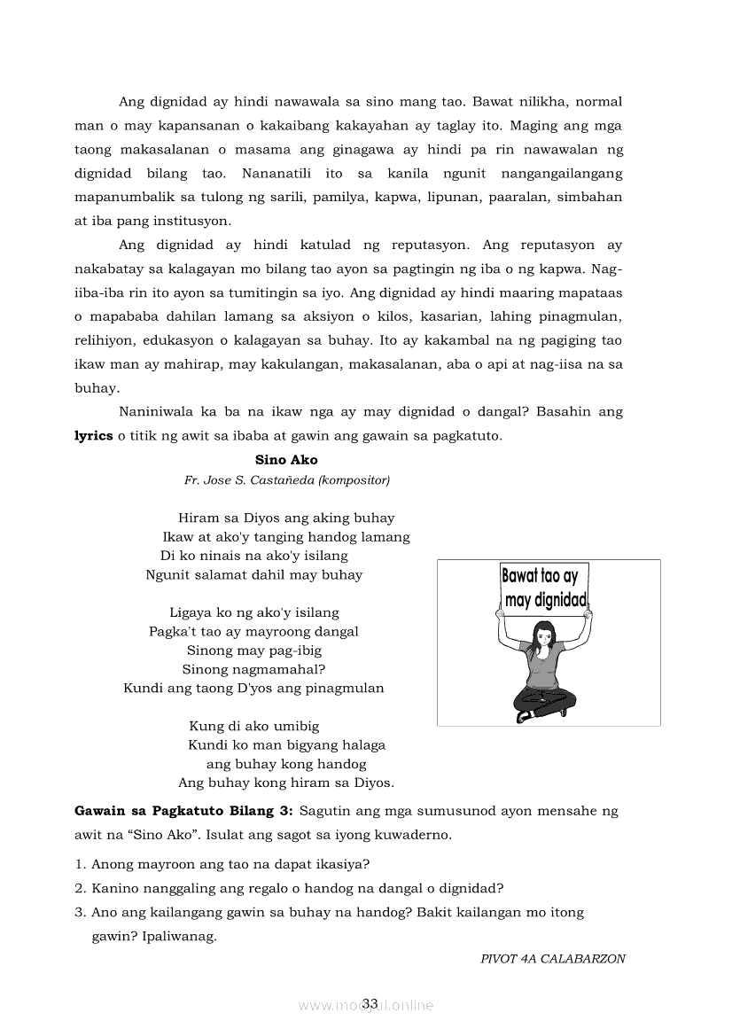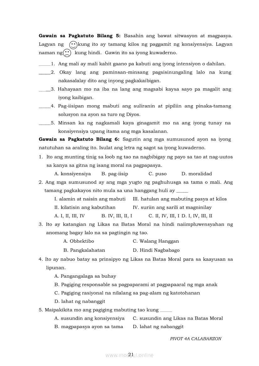 Edukasyon sa Pagpapakatao 10 PIVOT Modyul sa ESPApr 22, 2021 Grade 10Xiaomi Redmi Watch 5 Active 2inch LCD Display Clear Calling 5ATM Waterproof Smart Watch for only ₱3,999 ₱1,200!. Edukasyon sa Pagpapakatao 10RelatedEdukasyon sa Pagpapakatao Ikaapat na Markahan – Modyul 3b: Isyu sa Kawalan ng Paggalang sa Katotohanan Ikaanim na LinggoEdukasyon sa Pagpapakatao Ikaapat na Markahan – Modyul 2a: Isyu sa Kawalan ng Paggalang sa Dignidad at Sekswalidad Ikatlong LinggoEdukasyon sa Pagpapakatao Ikaapat na Markahan – Modyul 1b: Tamang Paggamit ng Kapangyarihan at Pangangalaga sa Kalikasan Ikalawang LinggoEdukasyon sa Pagpapakatao Ikaapat na Markahan – Modyul 1a: Tamang Paggamit ng Kapangyarihan at Pangangalaga sa Kalikasan Unang LinggoEdukasyon sa Pagpapakatao Ikaapat na Markahan – Modyul 2b: Kahalagahan ng Paggalang sa Dignidad at Sekswalidad Ikaapat na Linggo