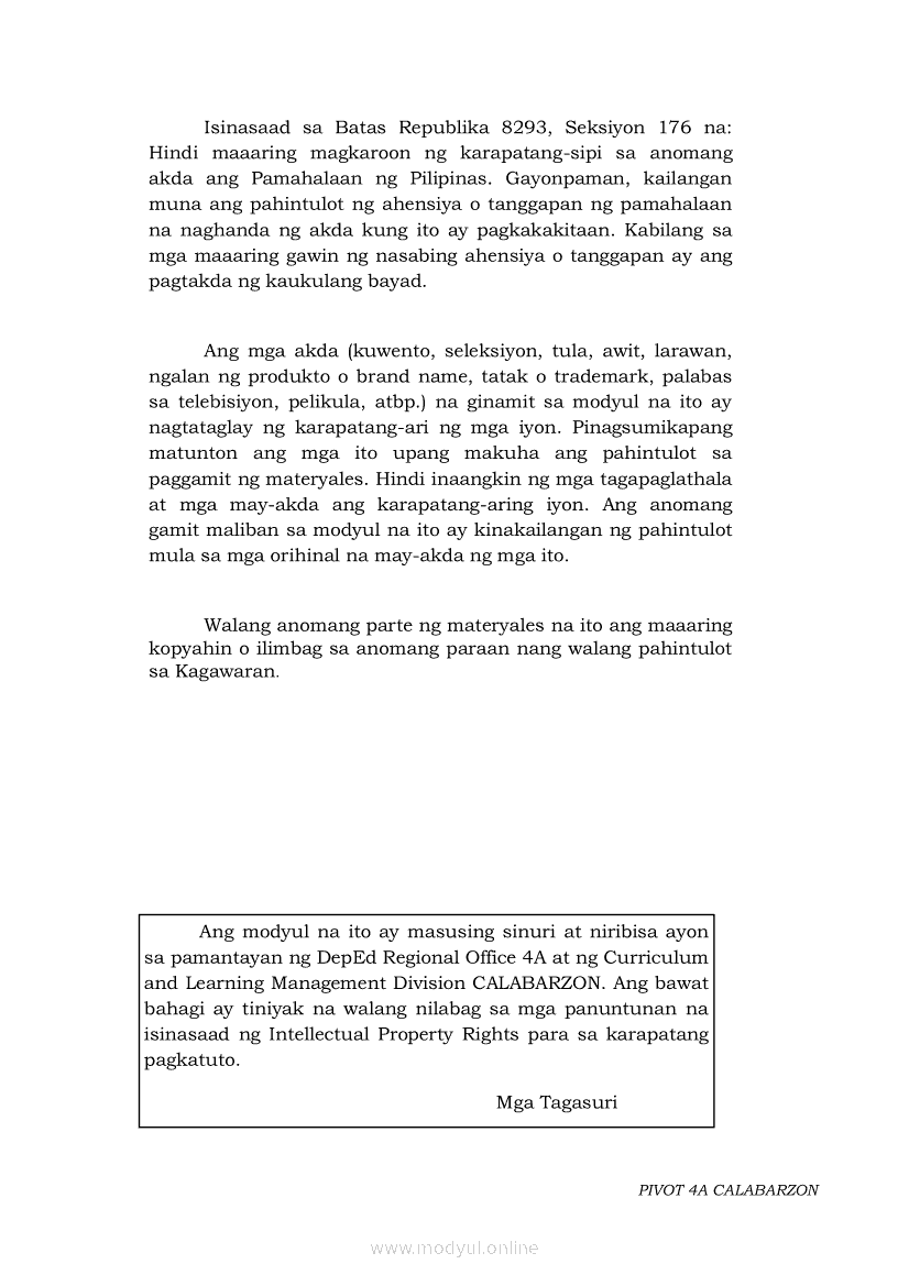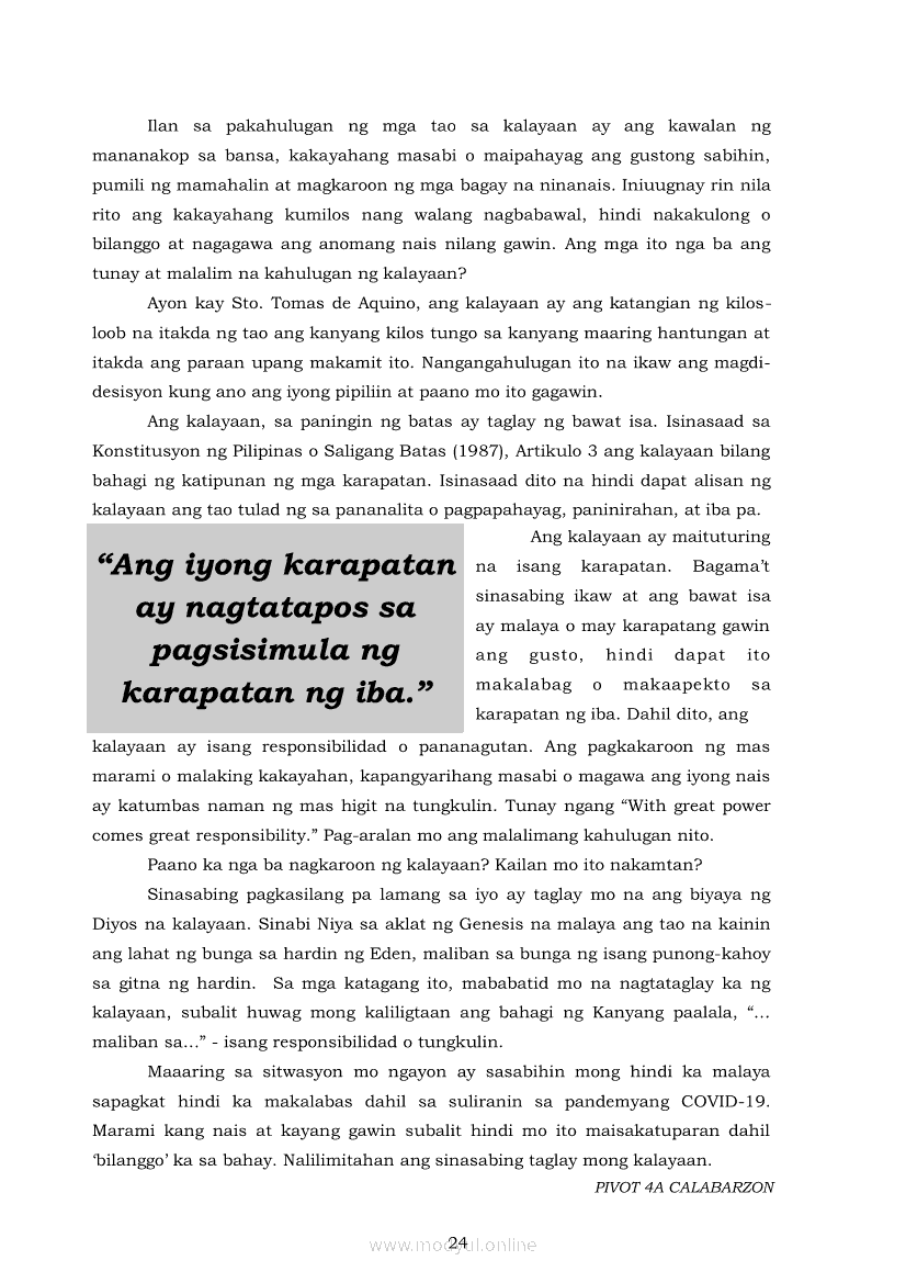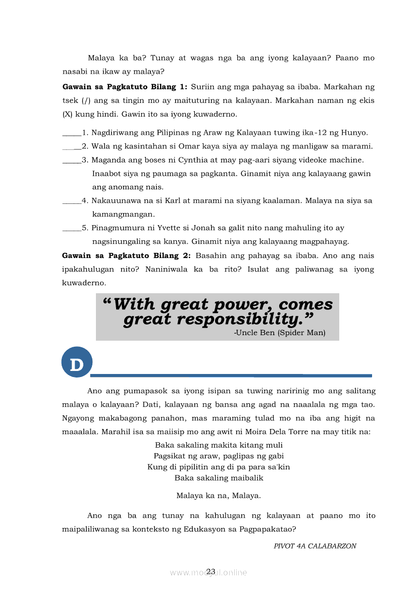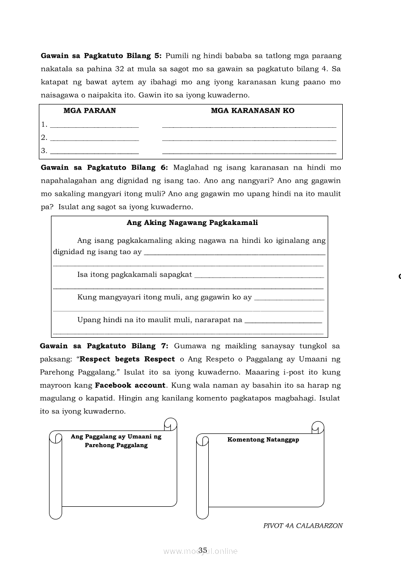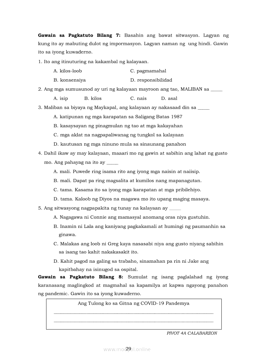 Edukasyon sa Pagpapakatao 10 PIVOT Modyul sa ESPApr 22, 2021 Grade 10Xiaomi Redmi Watch 5 Active 2inch LCD Display Clear Calling 5ATM Waterproof Smart Watch for only ₱3,999 ₱1,200!. Edukasyon sa Pagpapakatao 10RelatedEdukasyon sa Pagpapakatao Ikaapat na Markahan – Modyul 3b: Isyu sa Kawalan ng Paggalang sa Katotohanan Ikaanim na LinggoEdukasyon sa Pagpapakatao Ikaapat na Markahan – Modyul 2a: Isyu sa Kawalan ng Paggalang sa Dignidad at Sekswalidad Ikatlong LinggoEdukasyon sa Pagpapakatao Ikaapat na Markahan – Modyul 1b: Tamang Paggamit ng Kapangyarihan at Pangangalaga sa Kalikasan Ikalawang LinggoEdukasyon sa Pagpapakatao Ikaapat na Markahan – Modyul 1a: Tamang Paggamit ng Kapangyarihan at Pangangalaga sa Kalikasan Unang LinggoEdukasyon sa Pagpapakatao Ikaapat na Markahan – Modyul 2b: Kahalagahan ng Paggalang sa Dignidad at Sekswalidad Ikaapat na Linggo