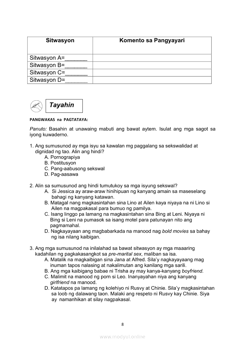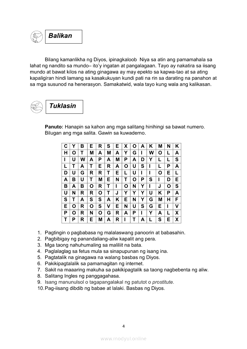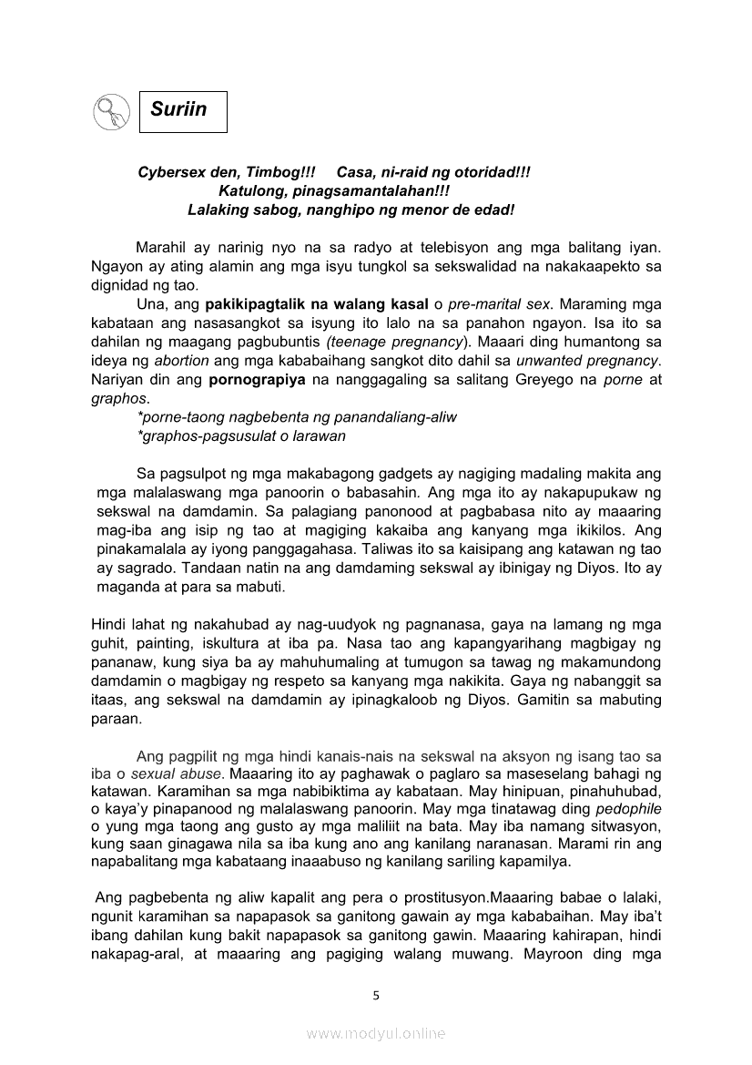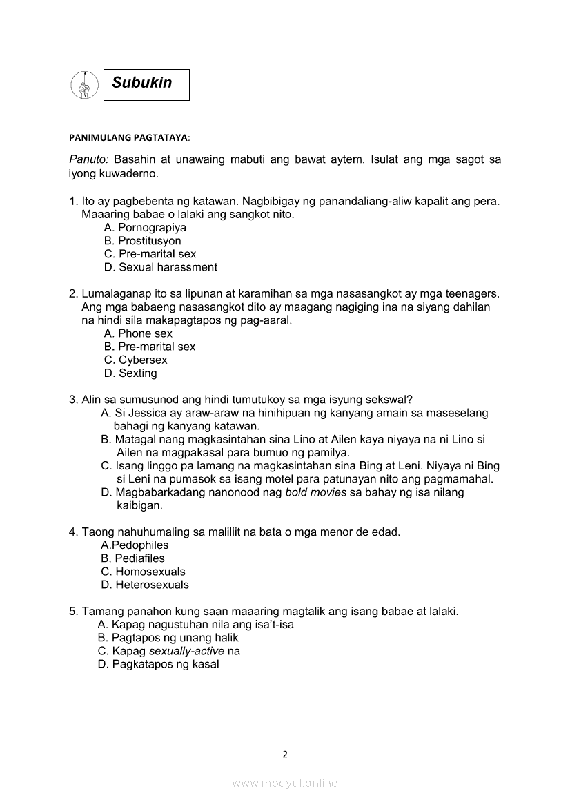 Edukasyon sa Pagpapakatao Ikaapat na Markahan – Modyul 2a: Isyu sa Kawalan ng Paggalang sa Dignidad at Sekswalidad Ikatlong LinggoMay 28, 2021 Grade 10Xiaomi Redmi Watch 5 Active 2inch LCD Display Clear Calling 5ATM Waterproof Smart Watch for only ₱3,999 ₱1,200!. Edukasyon sa Pagpapakatao 10 4th QuarterRelatedEdukasyon sa Pagpapakatao Ikaapat na Markahan – Modyul 1b: Tamang Paggamit ng Kapangyarihan at Pangangalaga sa Kalikasan Ikalawang LinggoEdukasyon sa Pagpapakatao Ikaapat na Markahan – Modyul 1a: Tamang Paggamit ng Kapangyarihan at Pangangalaga sa Kalikasan Unang LinggoEdukasyon sa Pagpapakatao Ikaapat na Markahan – Modyul 3b: Isyu sa Kawalan ng Paggalang sa Katotohanan Ikaanim na LinggoEdukasyon sa Pagpapakatao Ikaapat na Markahan – Modyul 3a: Isyu sa Kawalan ng Paggalang sa Katotohanan Ikalimang LinggoEdukasyon sa Pagpapakatao Ikaapat na Markahan – Modyul 2b: Kahalagahan ng Paggalang sa Dignidad at Sekswalidad Ikaapat na Linggo