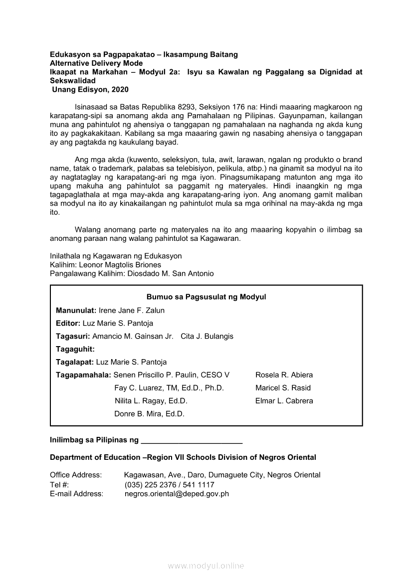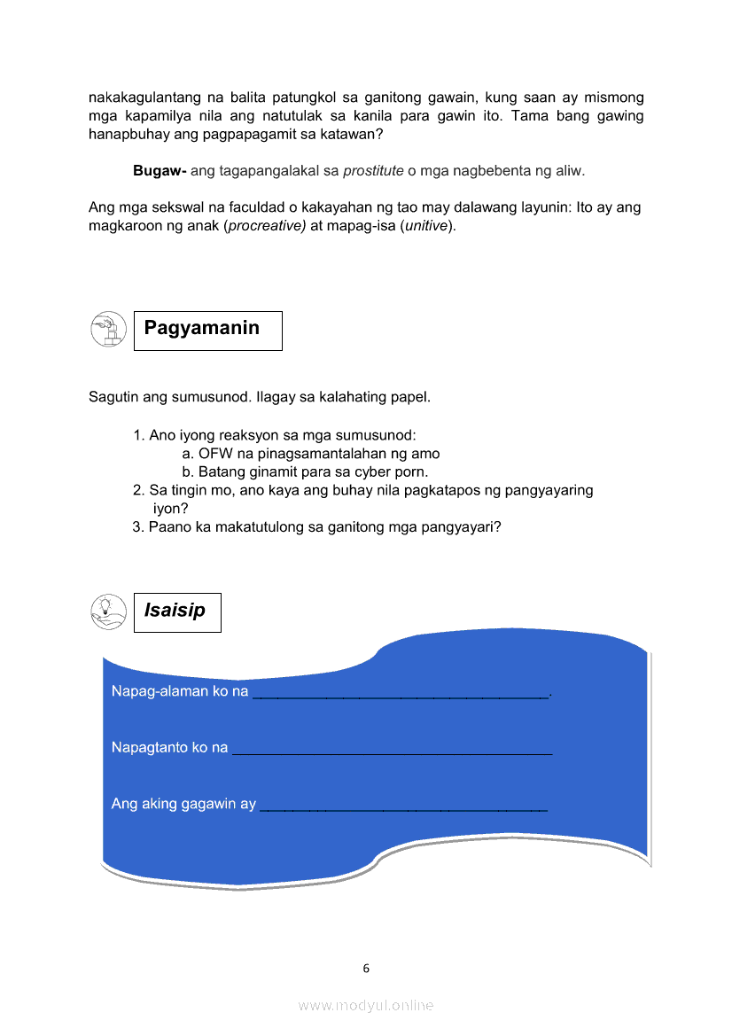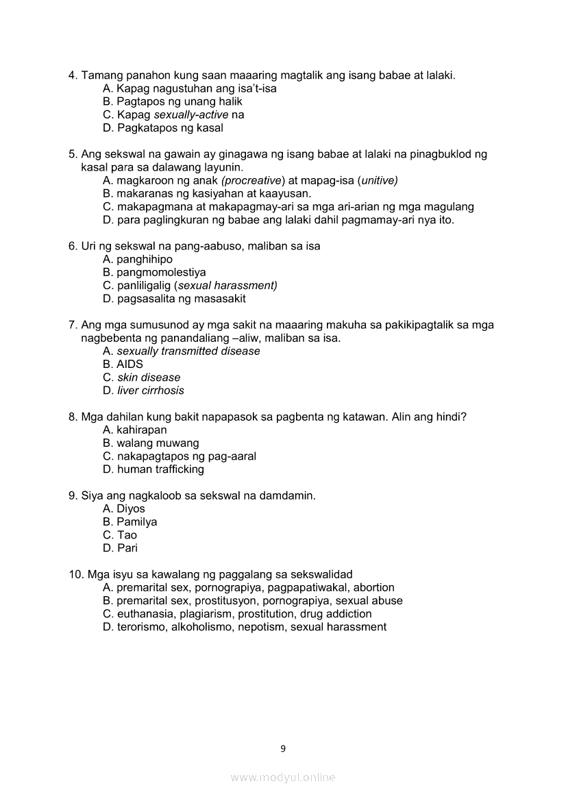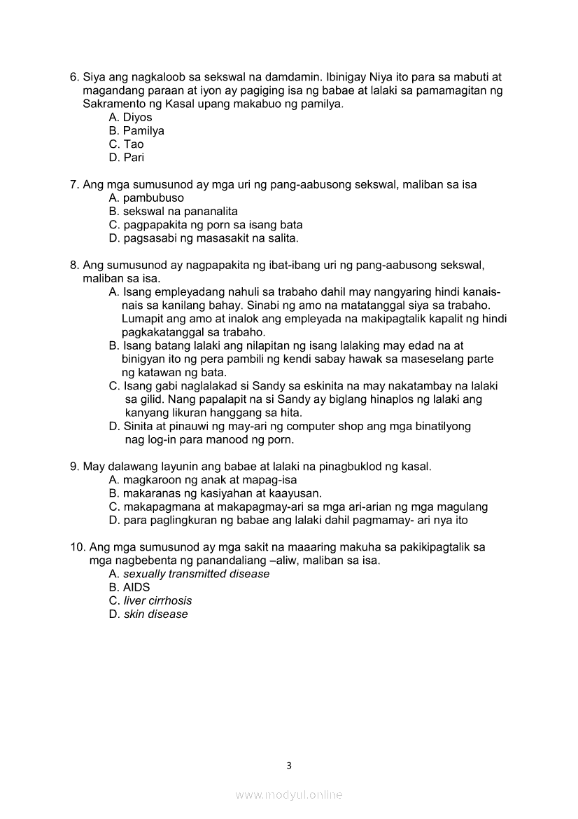 Edukasyon sa Pagpapakatao Ikaapat na Markahan – Modyul 2a: Isyu sa Kawalan ng Paggalang sa Dignidad at Sekswalidad Ikatlong LinggoMay 28, 2021 Grade 10Xiaomi Redmi Watch 5 Active 2inch LCD Display Clear Calling 5ATM Waterproof Smart Watch for only ₱3,999 ₱1,200!. Edukasyon sa Pagpapakatao 10 4th QuarterRelatedEdukasyon sa Pagpapakatao Ikaapat na Markahan – Modyul 1b: Tamang Paggamit ng Kapangyarihan at Pangangalaga sa Kalikasan Ikalawang LinggoEdukasyon sa Pagpapakatao Ikaapat na Markahan – Modyul 1a: Tamang Paggamit ng Kapangyarihan at Pangangalaga sa Kalikasan Unang LinggoEdukasyon sa Pagpapakatao Ikaapat na Markahan – Modyul 3b: Isyu sa Kawalan ng Paggalang sa Katotohanan Ikaanim na LinggoEdukasyon sa Pagpapakatao Ikaapat na Markahan – Modyul 3a: Isyu sa Kawalan ng Paggalang sa Katotohanan Ikalimang LinggoEdukasyon sa Pagpapakatao Ikaapat na Markahan – Modyul 2b: Kahalagahan ng Paggalang sa Dignidad at Sekswalidad Ikaapat na Linggo