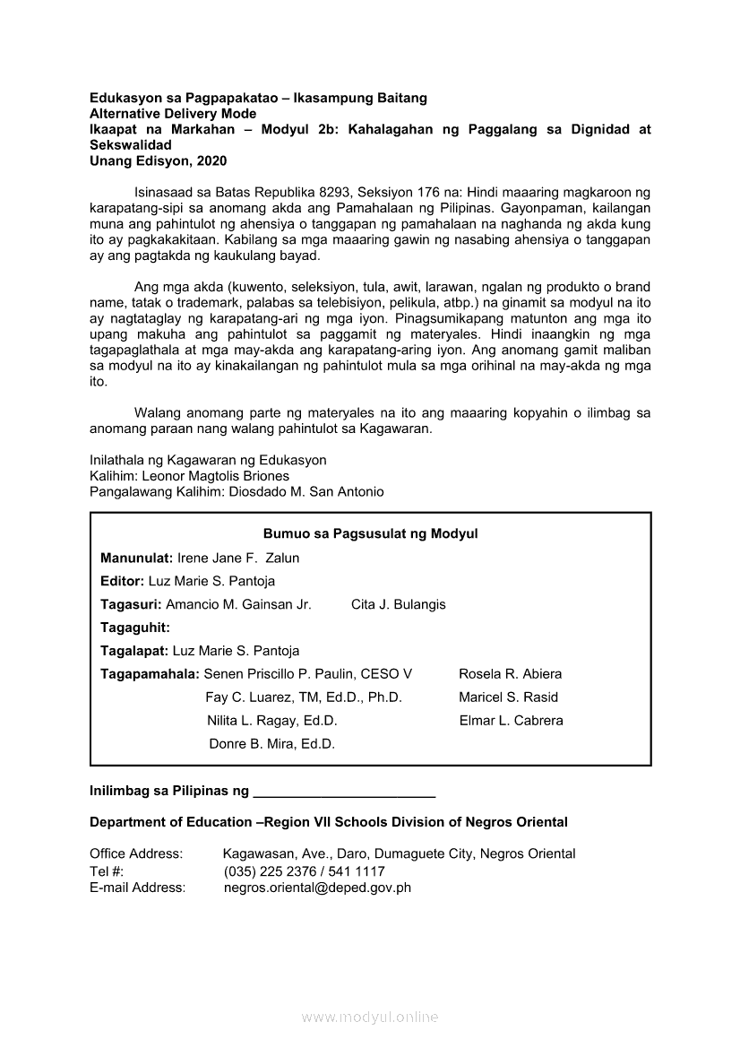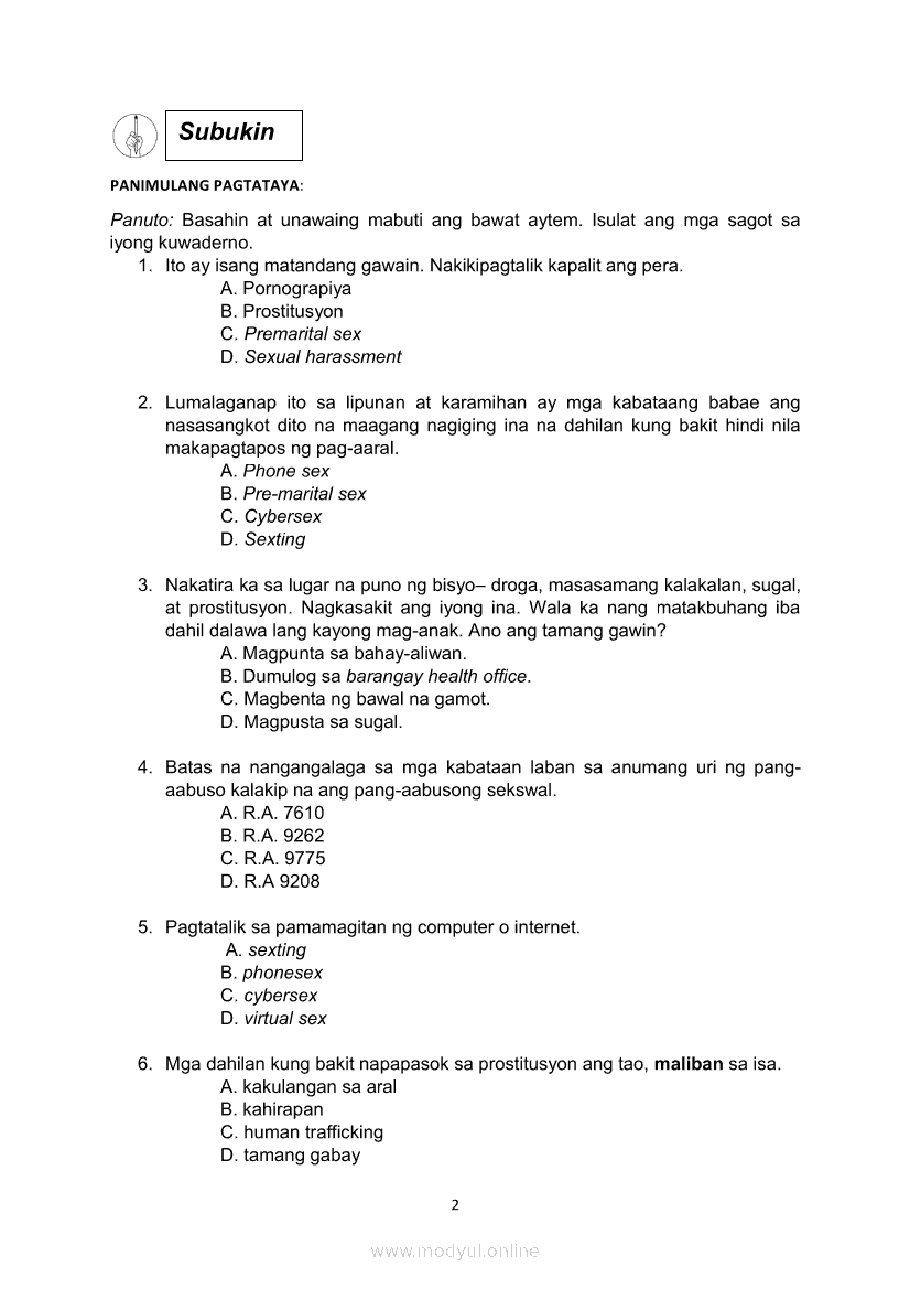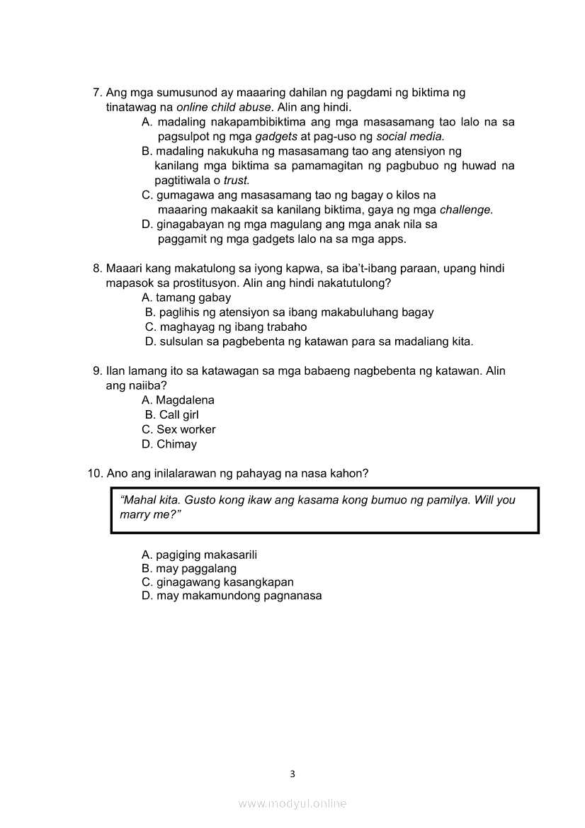 Edukasyon sa Pagpapakatao Ikaapat na Markahan – Modyul 2b: Kahalagahan ng Paggalang sa Dignidad at Sekswalidad Ikaapat na LinggoMay 28, 2021 Grade 10Xiaomi Redmi Watch 5 Active 2inch LCD Display Clear Calling 5ATM Waterproof Smart Watch for only ₱3,999 ₱1,200!. Edukasyon sa Pagpapakatao 10 4th QuarterRelatedEdukasyon sa Pagpapakatao Ikaapat na Markahan – Modyul 1a: Tamang Paggamit ng Kapangyarihan at Pangangalaga sa Kalikasan Unang LinggoEdukasyon sa Pagpapakatao Ikaapat na Markahan – Modyul 2a: Isyu sa Kawalan ng Paggalang sa Dignidad at Sekswalidad Ikatlong LinggoEdukasyon sa Pagpapakatao Ikaapat na Markahan – Modyul 3a: Isyu sa Kawalan ng Paggalang sa Katotohanan Ikalimang LinggoEdukasyon sa Pagpapakatao Ikaapat na Markahan – Modyul 3b: Isyu sa Kawalan ng Paggalang sa Katotohanan Ikaanim na LinggoEdukasyon sa Pagpapakatao Ikaapat na Markahan – Modyul 1b: Tamang Paggamit ng Kapangyarihan at Pangangalaga sa Kalikasan Ikalawang Linggo