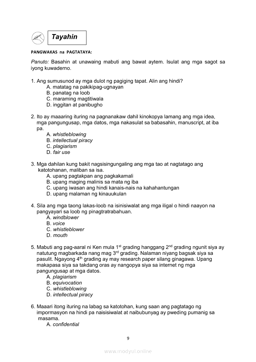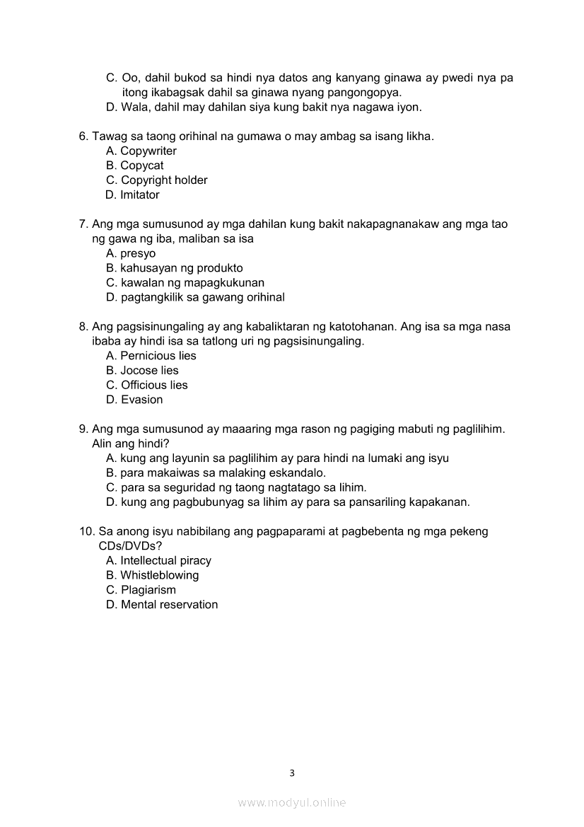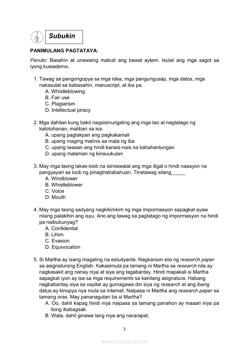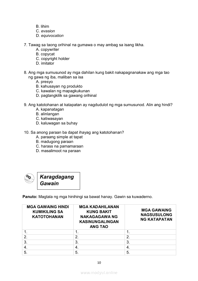 Edukasyon sa Pagpapakatao Ikaapat na Markahan – Modyul 3a: Isyu sa Kawalan ng Paggalang sa Katotohanan Ikalimang LinggoMay 28, 2021 Grade 10Xiaomi Redmi Watch 5 Active 2inch LCD Display Clear Calling 5ATM Waterproof Smart Watch for only ₱3,999 ₱1,200!. Edukasyon sa Pagpapakatao 10 4th QuarterRelatedEdukasyon sa Pagpapakatao Ikaapat na Markahan – Modyul 1b: Tamang Paggamit ng Kapangyarihan at Pangangalaga sa Kalikasan Ikalawang LinggoEdukasyon sa Pagpapakatao Ikaapat na Markahan – Modyul 3b: Isyu sa Kawalan ng Paggalang sa Katotohanan Ikaanim na LinggoEdukasyon sa Pagpapakatao Ikaapat na Markahan – Modyul 2a: Isyu sa Kawalan ng Paggalang sa Dignidad at Sekswalidad Ikatlong LinggoEdukasyon sa Pagpapakatao Ikaapat na Markahan – Modyul 2b: Kahalagahan ng Paggalang sa Dignidad at Sekswalidad Ikaapat na LinggoEdukasyon sa Pagpapakatao Ikaapat na Markahan – Modyul 1a: Tamang Paggamit ng Kapangyarihan at Pangangalaga sa Kalikasan Unang Linggo