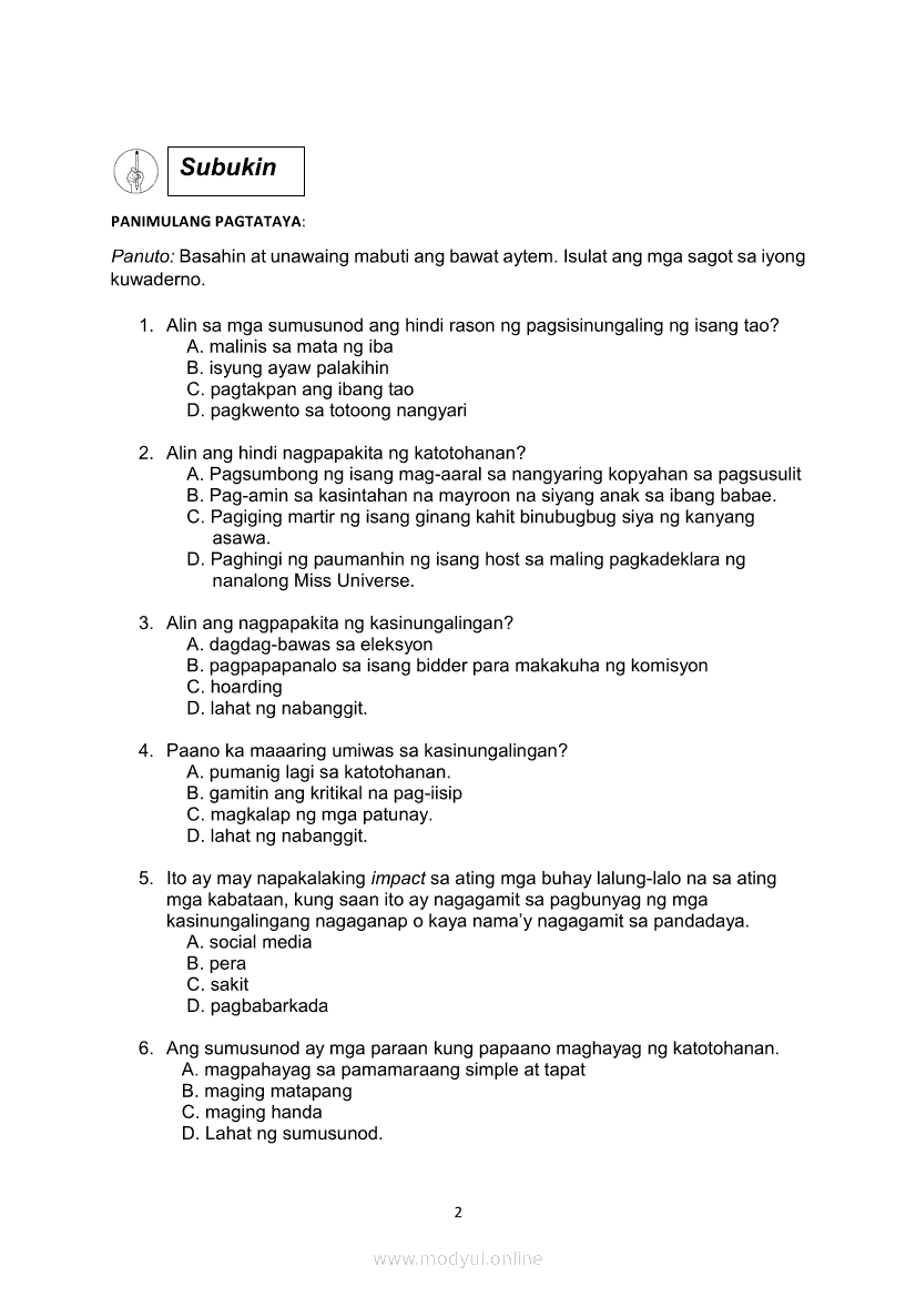 Edukasyon sa Pagpapakatao Ikaapat na Markahan – Modyul 3b: Isyu sa Kawalan ng Paggalang sa Katotohanan Ikaanim na LinggoMay 28, 2021 Grade 10Xiaomi Redmi Watch 5 Active 2inch LCD Display Clear Calling 5ATM Waterproof Smart Watch for only ₱3,999 ₱1,200!. Edukasyon sa Pagpapakatao 10 4th QuarterRelatedEdukasyon sa Pagpapakatao Ikaapat na Markahan – Modyul 1a: Tamang Paggamit ng Kapangyarihan at Pangangalaga sa Kalikasan Unang LinggoEdukasyon sa Pagpapakatao Ikaapat na Markahan – Modyul 3a: Isyu sa Kawalan ng Paggalang sa Katotohanan Ikalimang LinggoEdukasyon sa Pagpapakatao Ikaapat na Markahan – Modyul 2b: Kahalagahan ng Paggalang sa Dignidad at Sekswalidad Ikaapat na LinggoEdukasyon sa Pagpapakatao Ikaapat na Markahan – Modyul 2a: Isyu sa Kawalan ng Paggalang sa Dignidad at Sekswalidad Ikatlong LinggoEdukasyon sa Pagpapakatao Ikaapat na Markahan – Modyul 1b: Tamang Paggamit ng Kapangyarihan at Pangangalaga sa Kalikasan Ikalawang Linggo