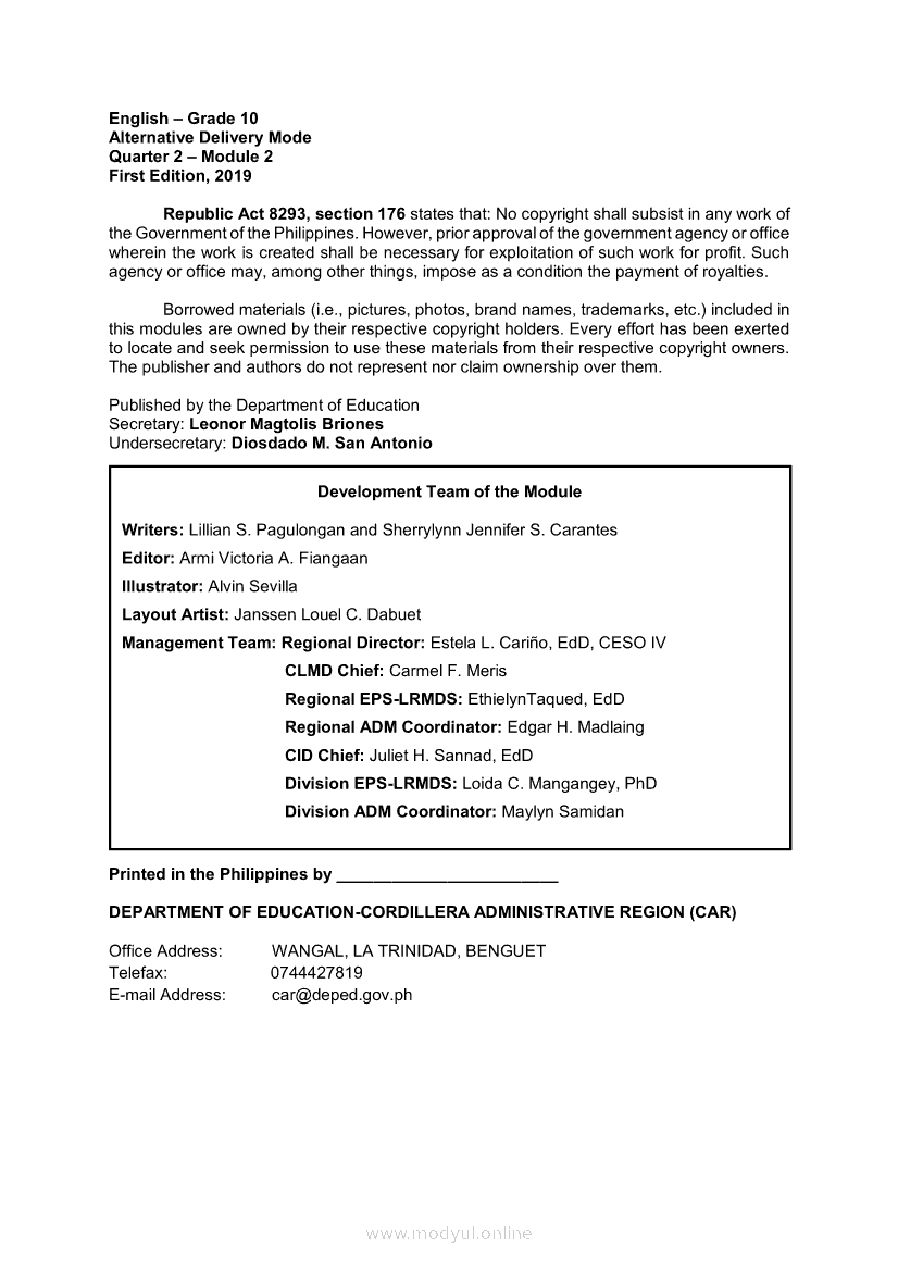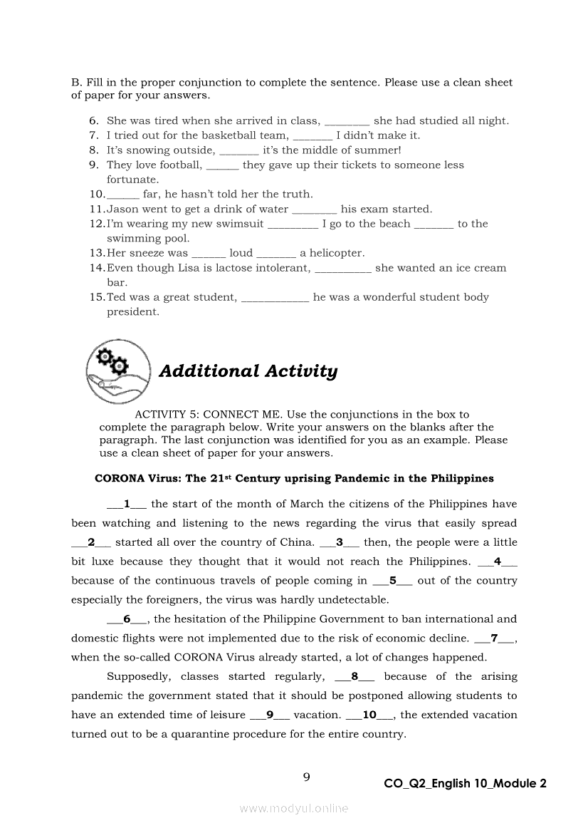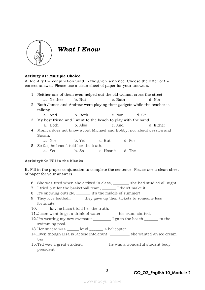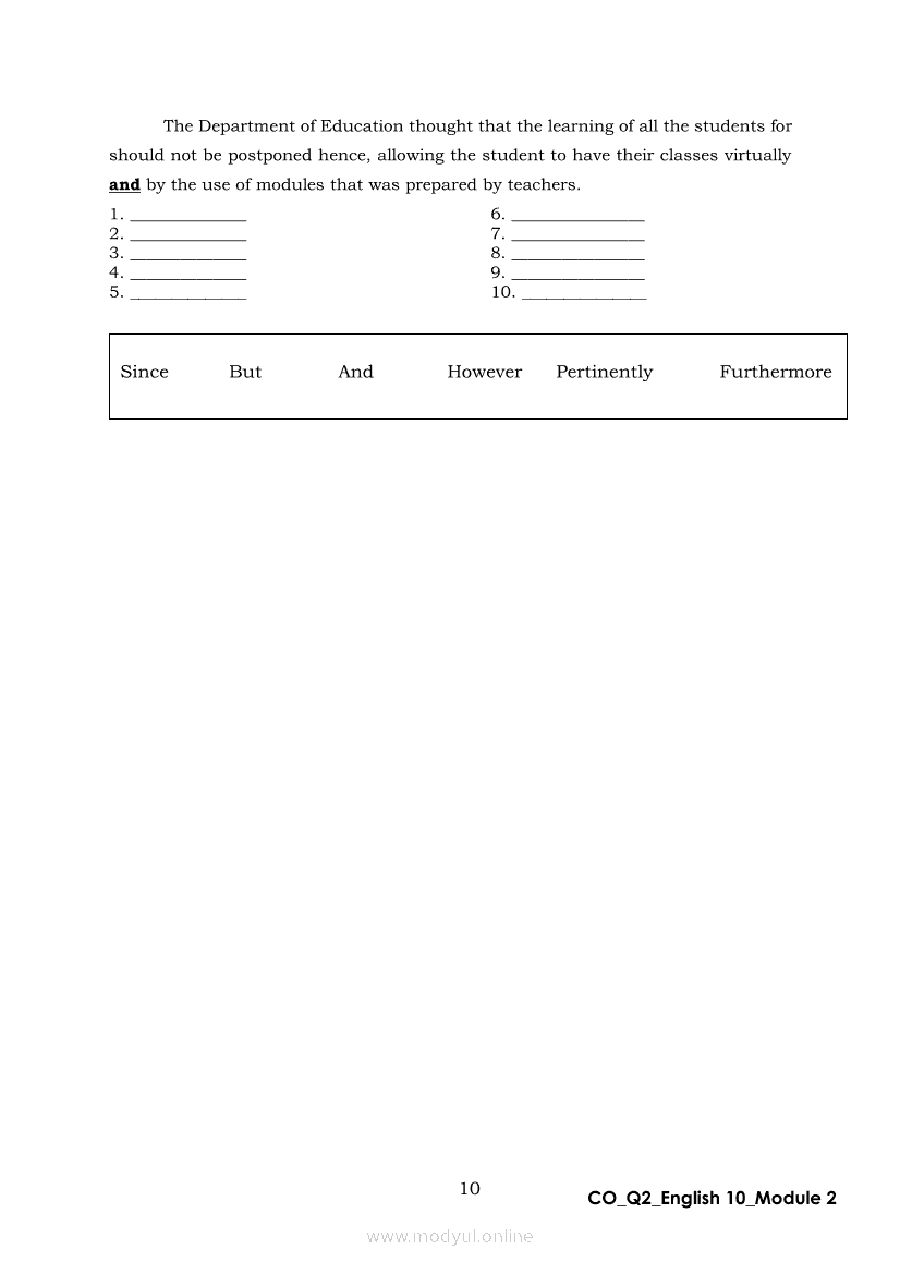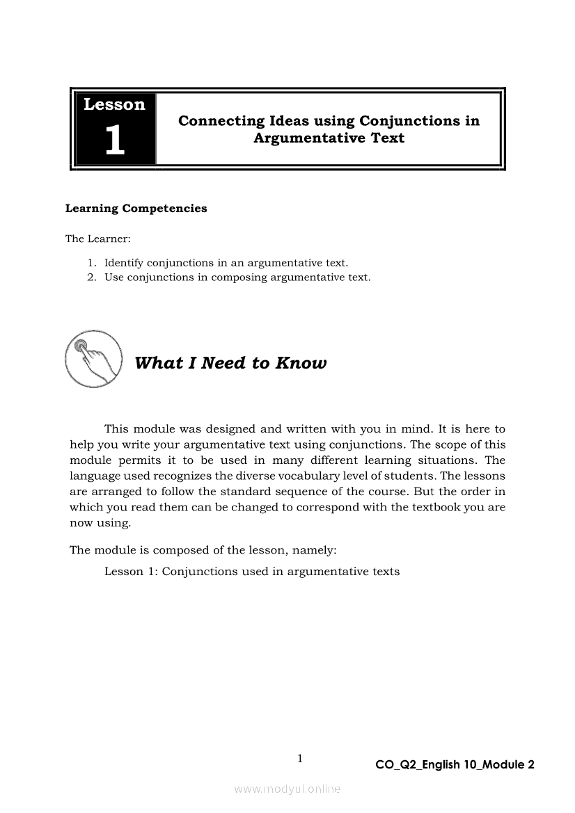 English 10 Quarter 2 – Module 2: Connecting Ideas using Conjunctions in an Argumentative TextApr 22, 2021 Grade 10Xiaomi Redmi Watch 5 Active 2inch LCD Display Clear Calling 5ATM Waterproof Smart Watch for only ₱3,999 ₱1,200!. English 10RelatedEnglish Quarter 4 – Module 2: Giving Technical and Operational DefinitionsEnglish Quarter 4 – Module 1: Language of ResearchEnglish Quarter 4 – Module 3: Giving Expanded Definitions of WordsEnglish 10 Quarter 2 – Module 6: Rhetorical QuestionsEnglish 10 Quarter 2 - Module 5: FORMULATING CLAIMS OF FACT, POLICY AND VALUE