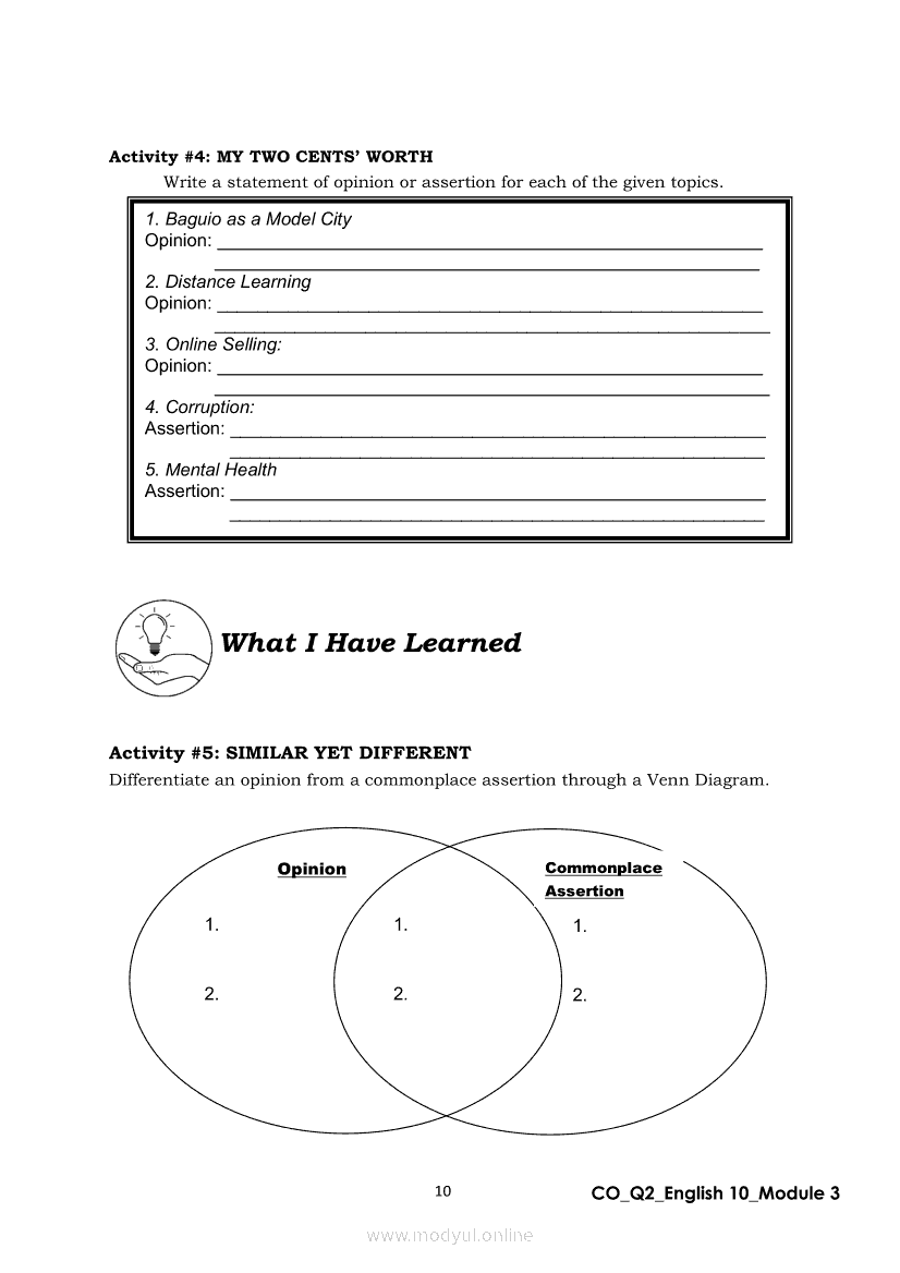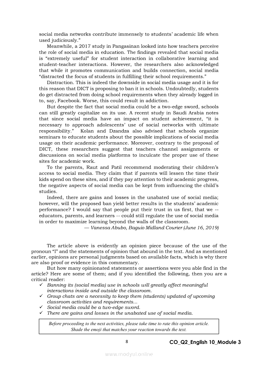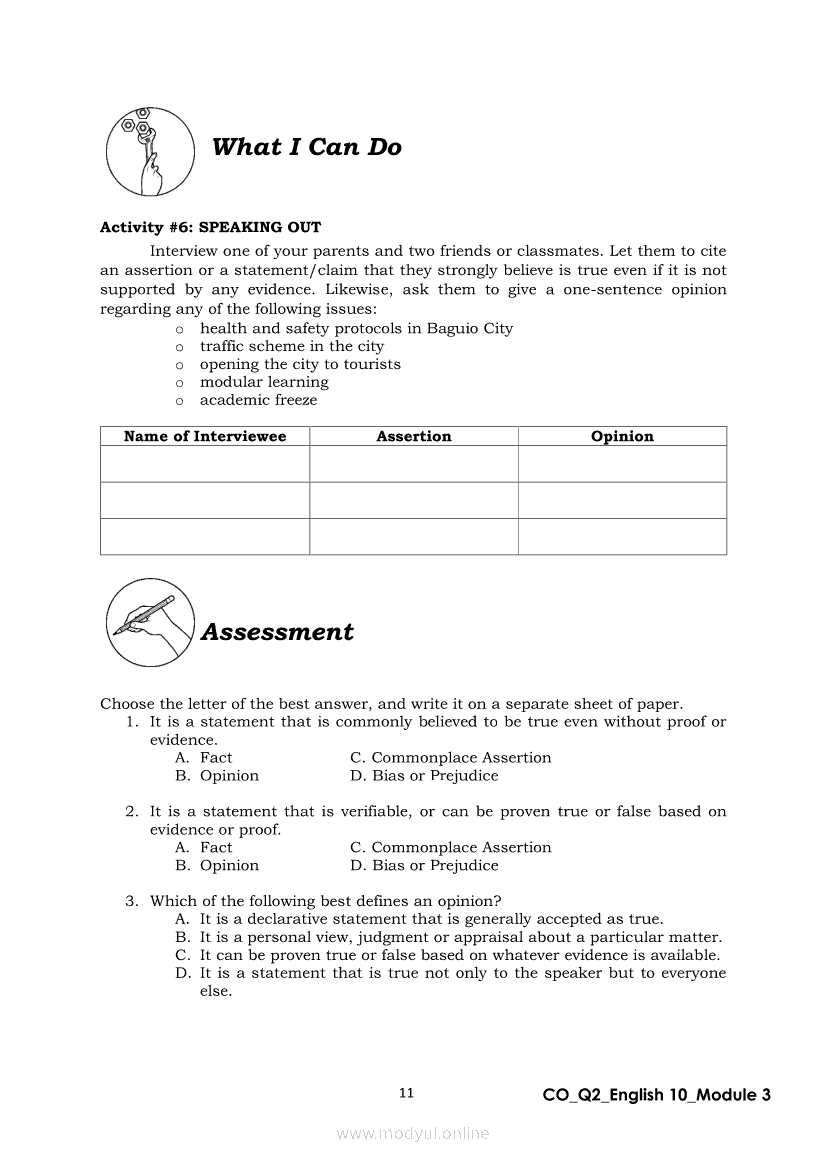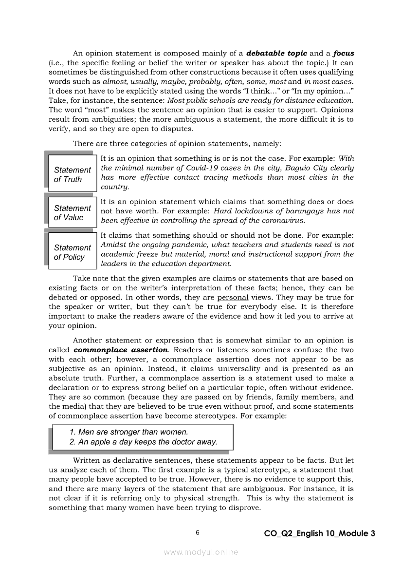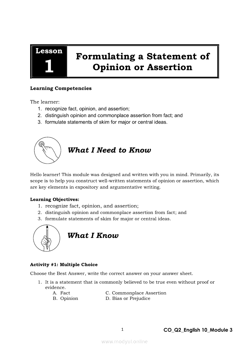 English 10 Quarter 2 – Module 3: Formulating a Statement of Opinion or AssertionApr 22, 2021 Grade 10Xiaomi Redmi Watch 5 Active 2inch LCD Display Clear Calling 5ATM Waterproof Smart Watch for only ₱3,999 ₱1,200!. English 10RelatedEnglish Quarter 4 – Module 2: Giving Technical and Operational DefinitionsEnglish Quarter 4 – Module 1: Language of ResearchEnglish Quarter 4 – Module 3: Giving Expanded Definitions of WordsEnglish 10 Quarter 2 – Module 2: Connecting Ideas using Conjunctions in an Argumentative TextEnglish 10 Quarter 2 – Module 7: Multimodal and its Elements