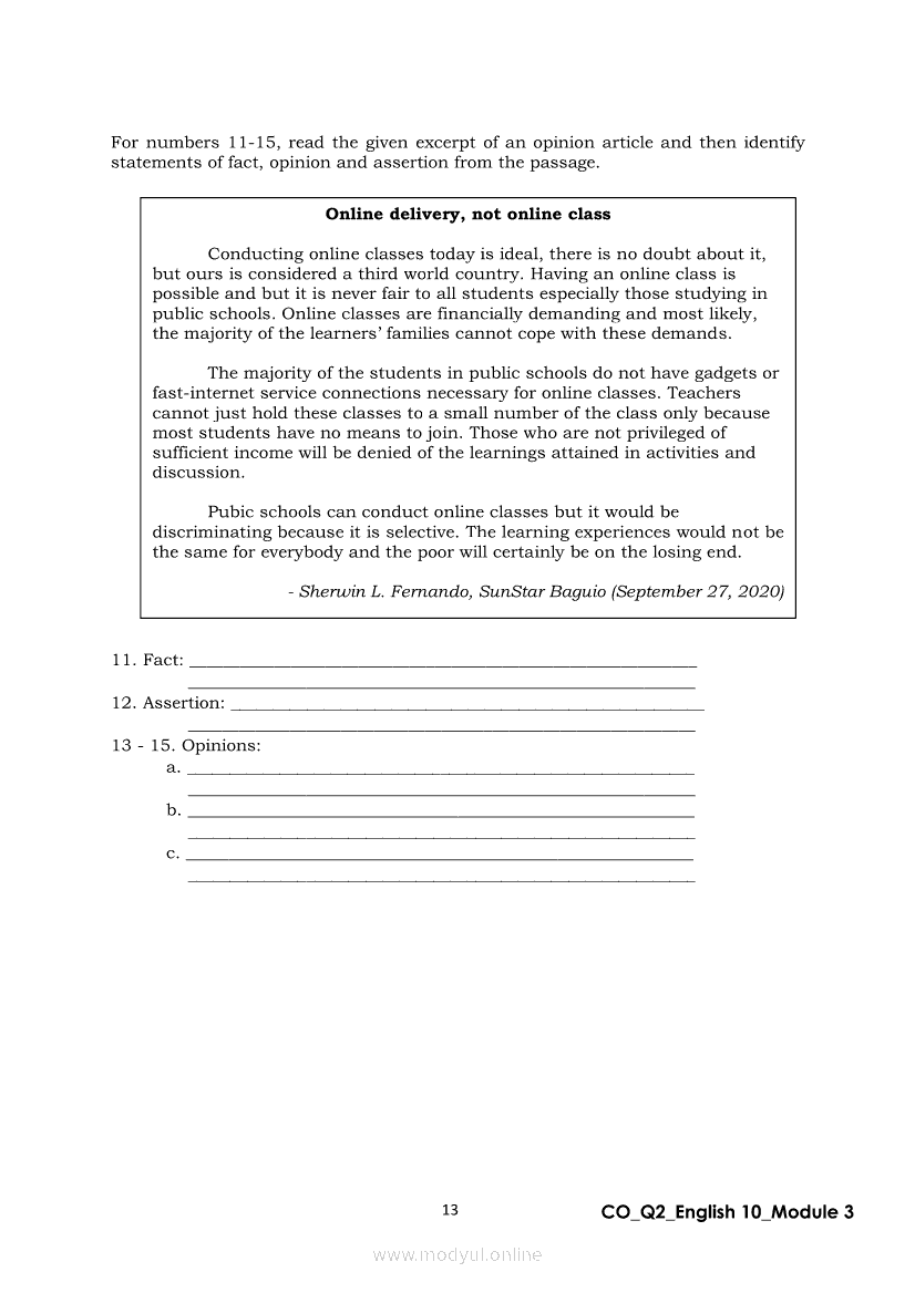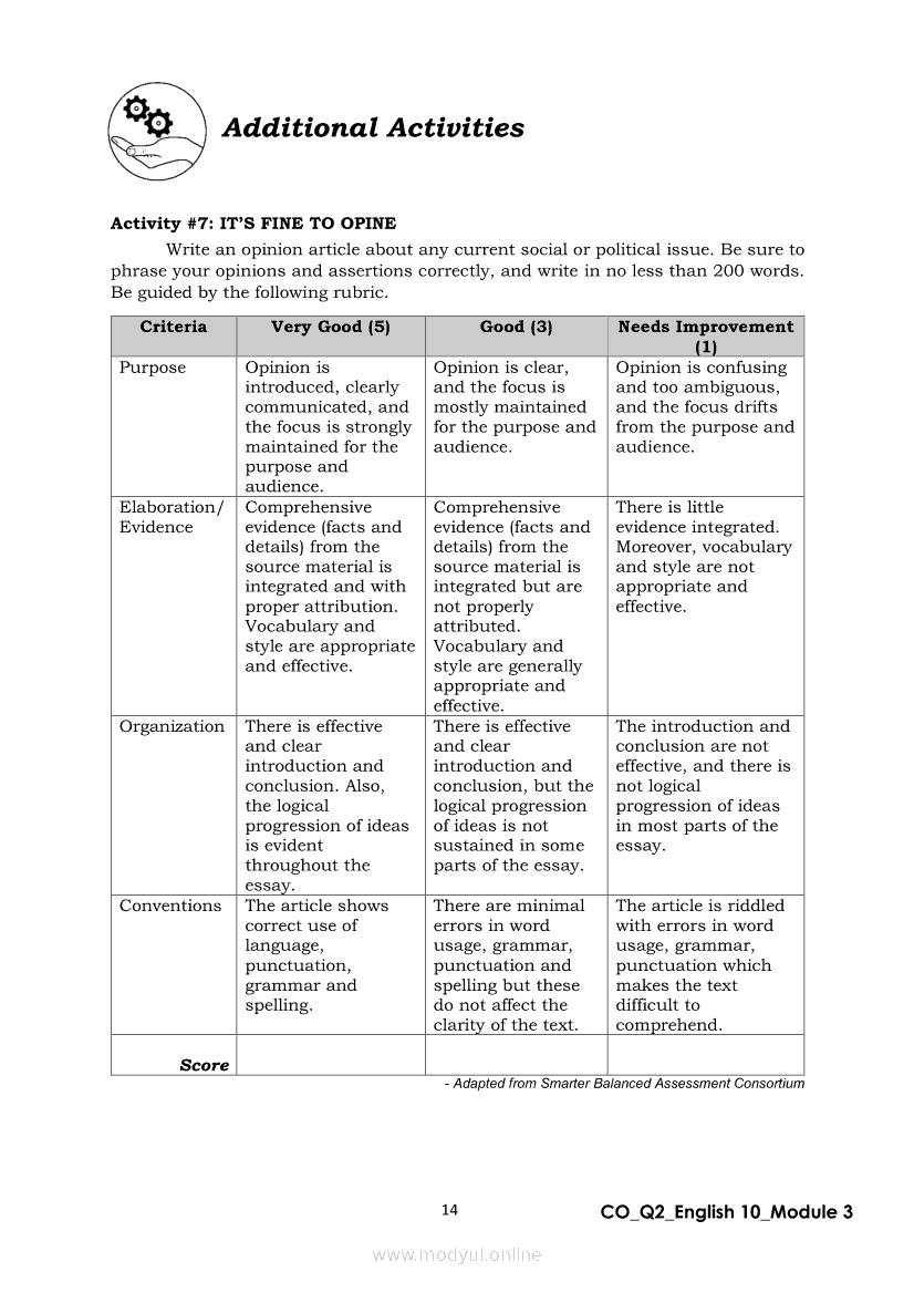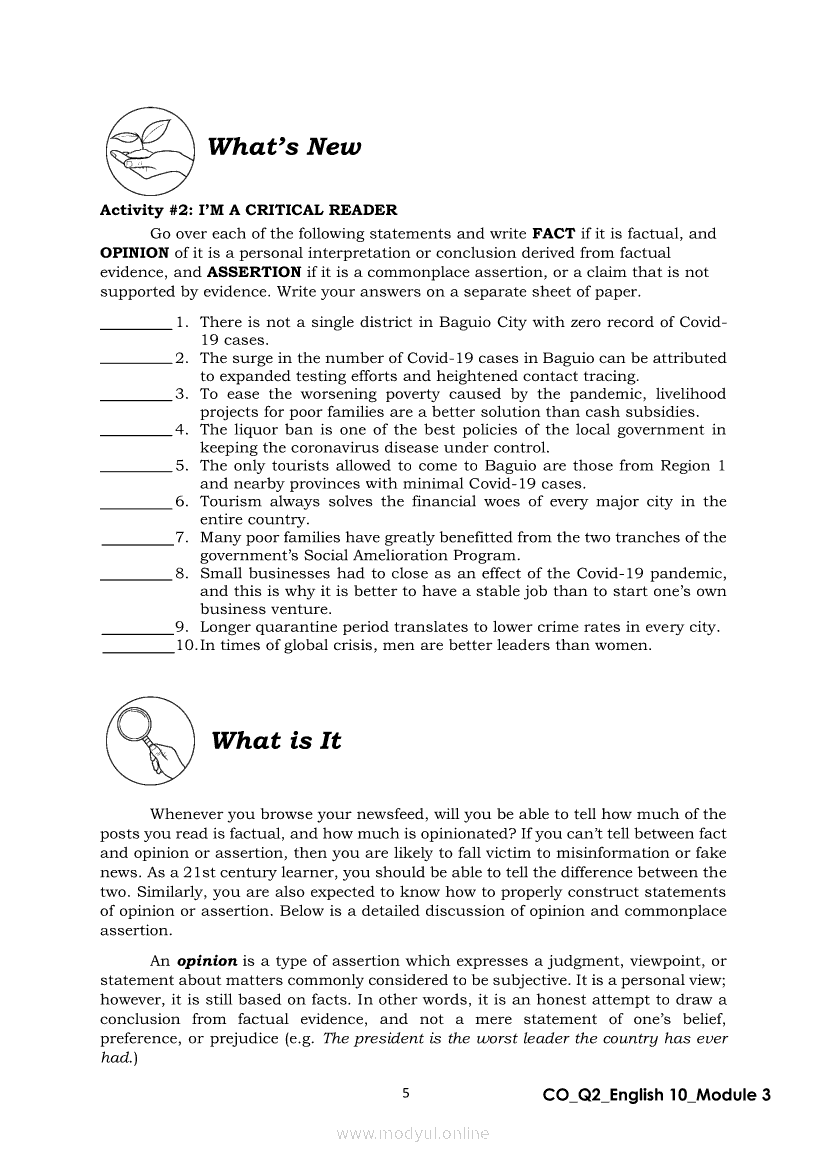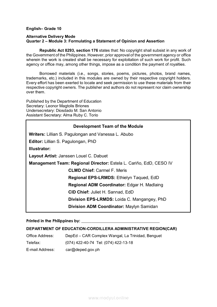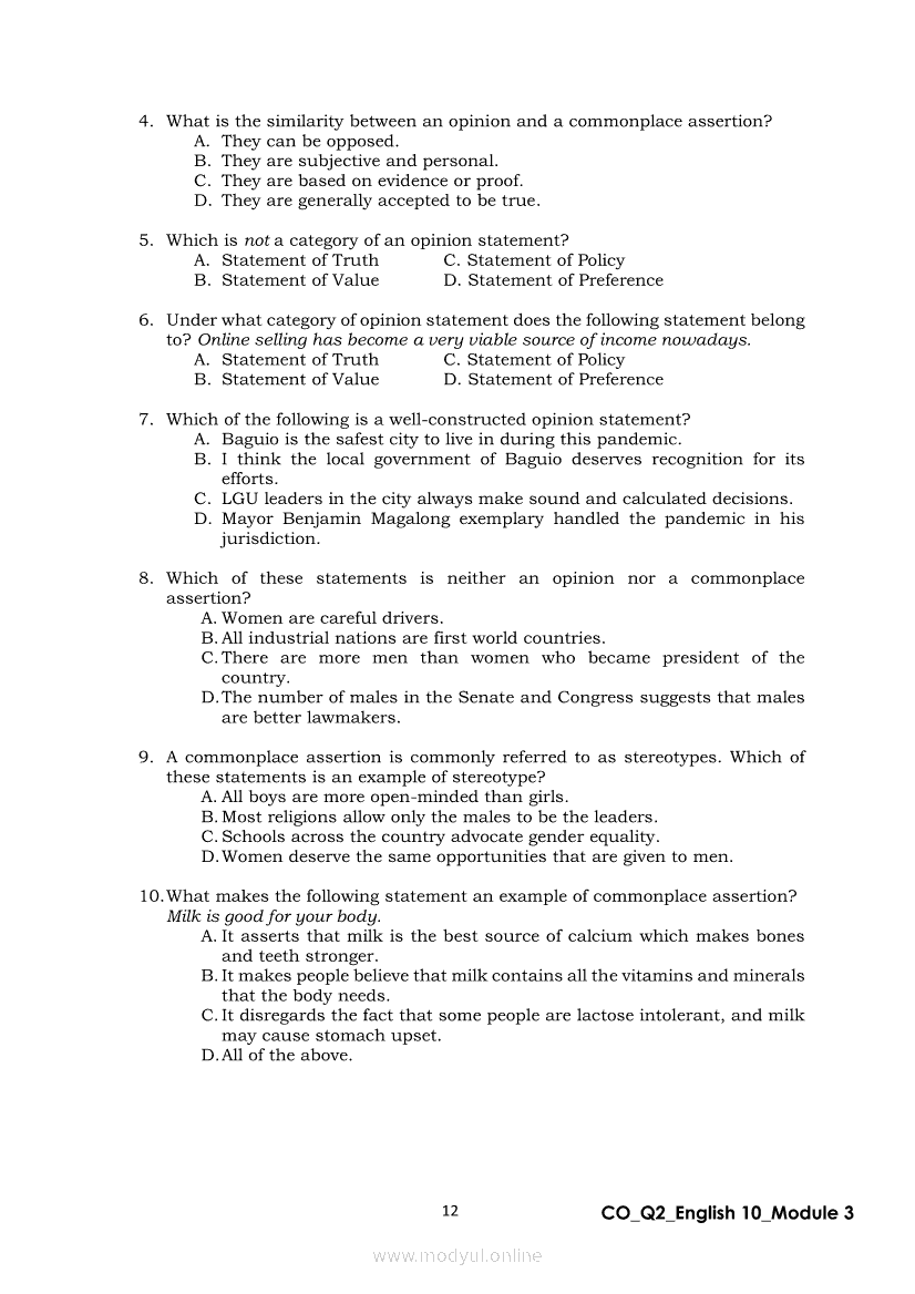 English 10 Quarter 2 – Module 3: Formulating a Statement of Opinion or AssertionApr 22, 2021 Grade 10Xiaomi Redmi Watch 5 Active 2inch LCD Display Clear Calling 5ATM Waterproof Smart Watch for only ₱3,999 ₱1,200!. English 10RelatedEnglish Quarter 4 – Module 2: Giving Technical and Operational DefinitionsEnglish Quarter 4 – Module 1: Language of ResearchEnglish Quarter 4 – Module 3: Giving Expanded Definitions of WordsEnglish 10 Quarter 2 – Module 2: Connecting Ideas using Conjunctions in an Argumentative TextEnglish 10 Quarter 2 – Module 7: Multimodal and its Elements