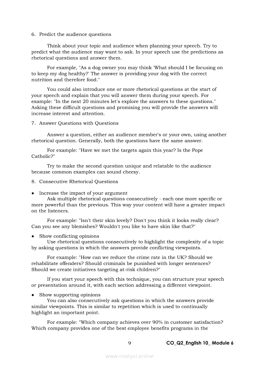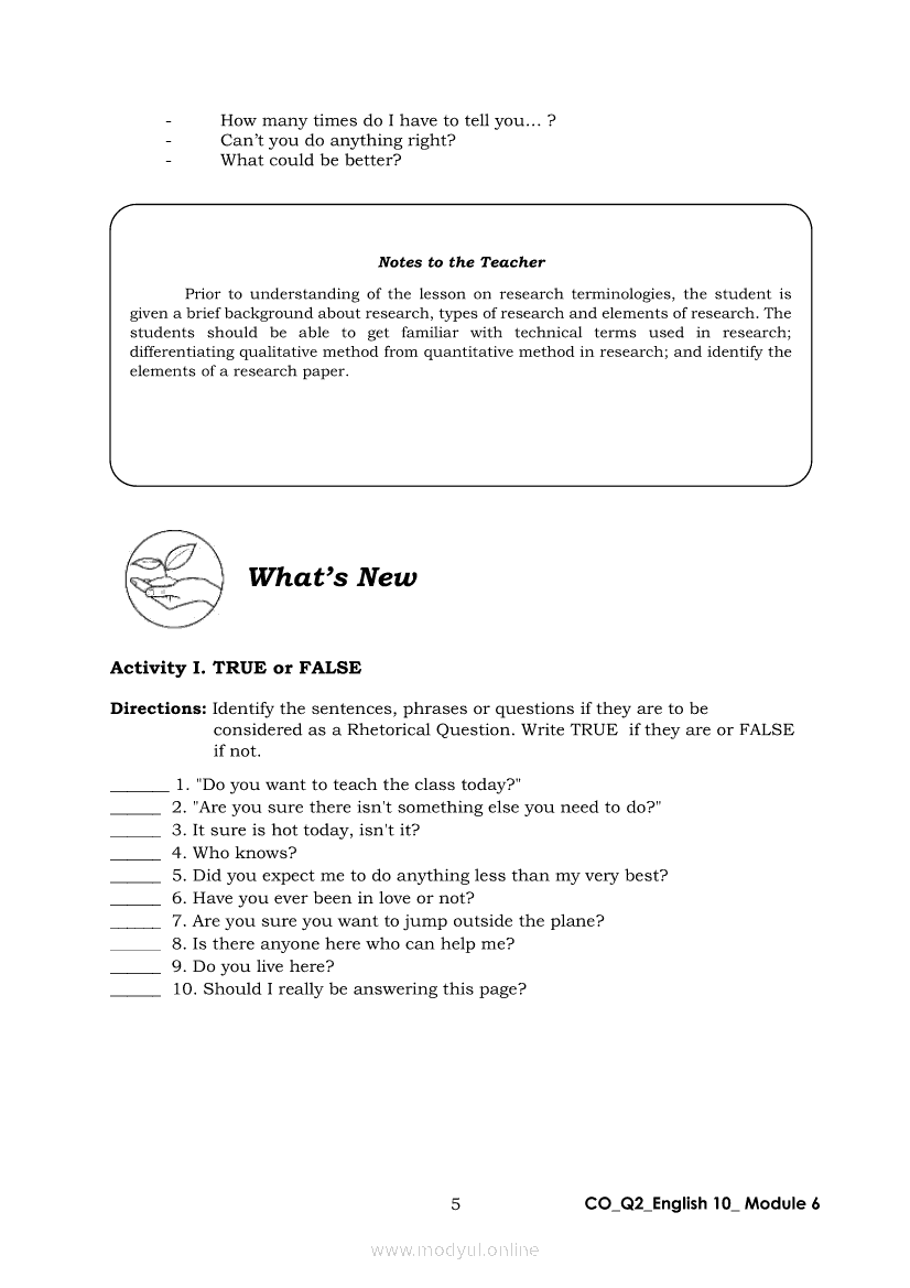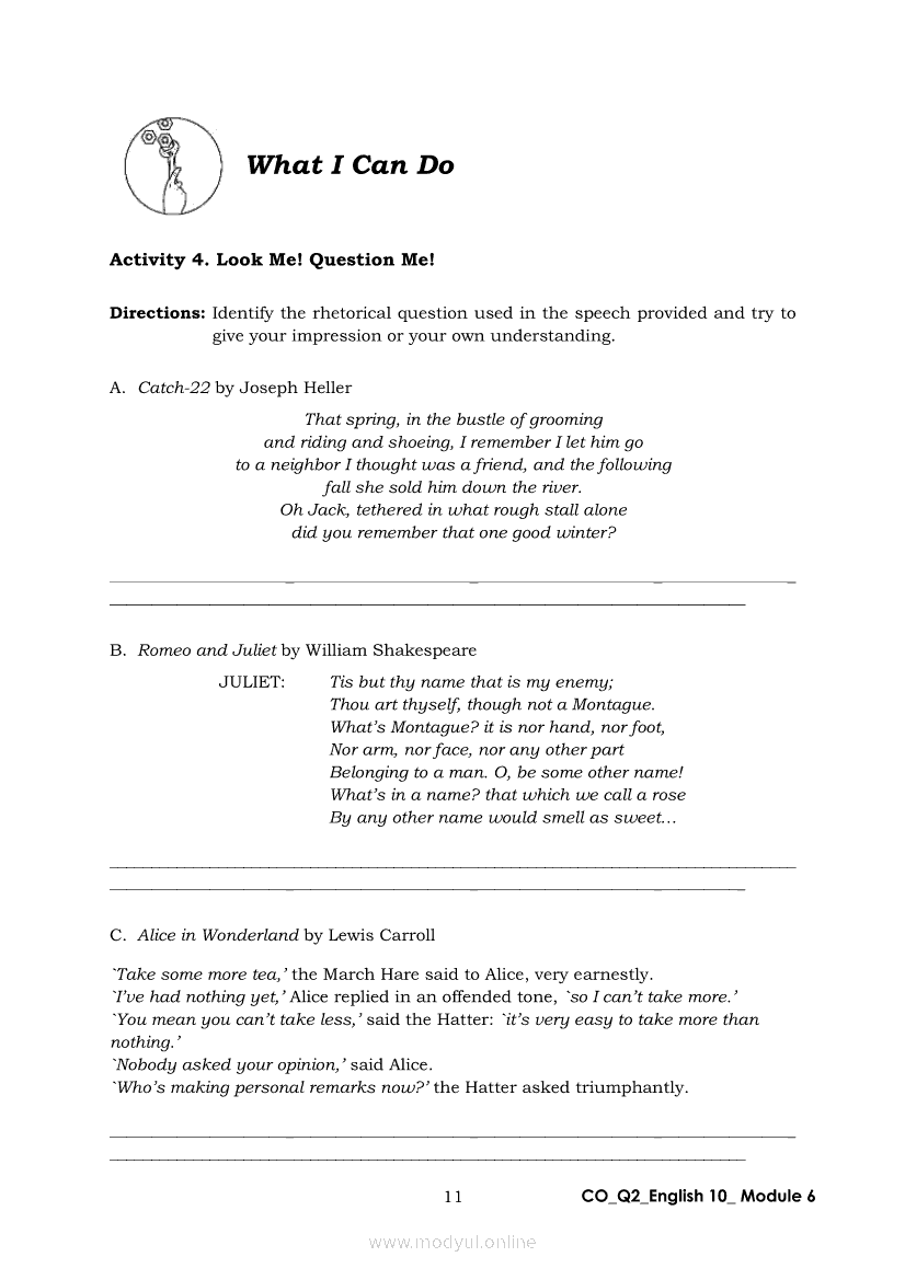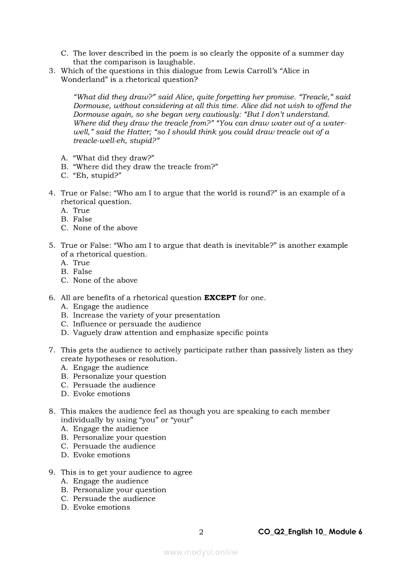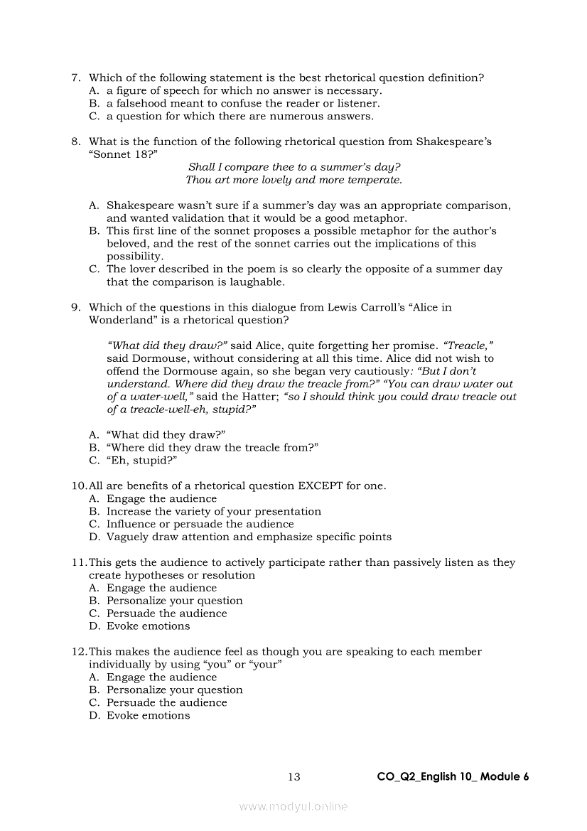English 10 Quarter 2 – Module 6: Rhetorical QuestionsApr 22, 2021 Grade 10Xiaomi Redmi Watch 5 Active 2inch LCD Display Clear Calling 5ATM Waterproof Smart Watch for only ₱3,999 ₱1,200!. English 10RelatedEnglish Quarter 4 – Module 3: Giving Expanded Definitions of WordsEnglish Quarter 4 – Module 2: Giving Technical and Operational DefinitionsEnglish Quarter 4 – Module 1: Language of ResearchEnglish 10 Second Quarter Module (PIVOT)English 10 Quarter 2 - Module 5: FORMULATING CLAIMS OF FACT, POLICY AND VALUE