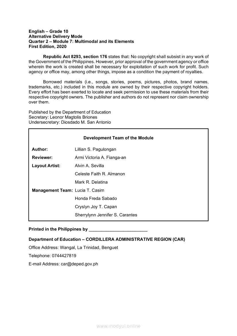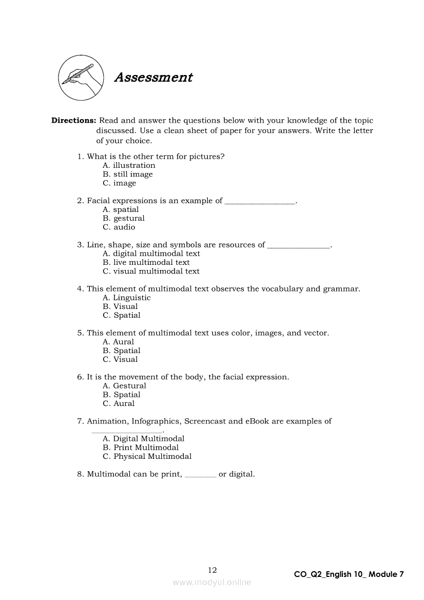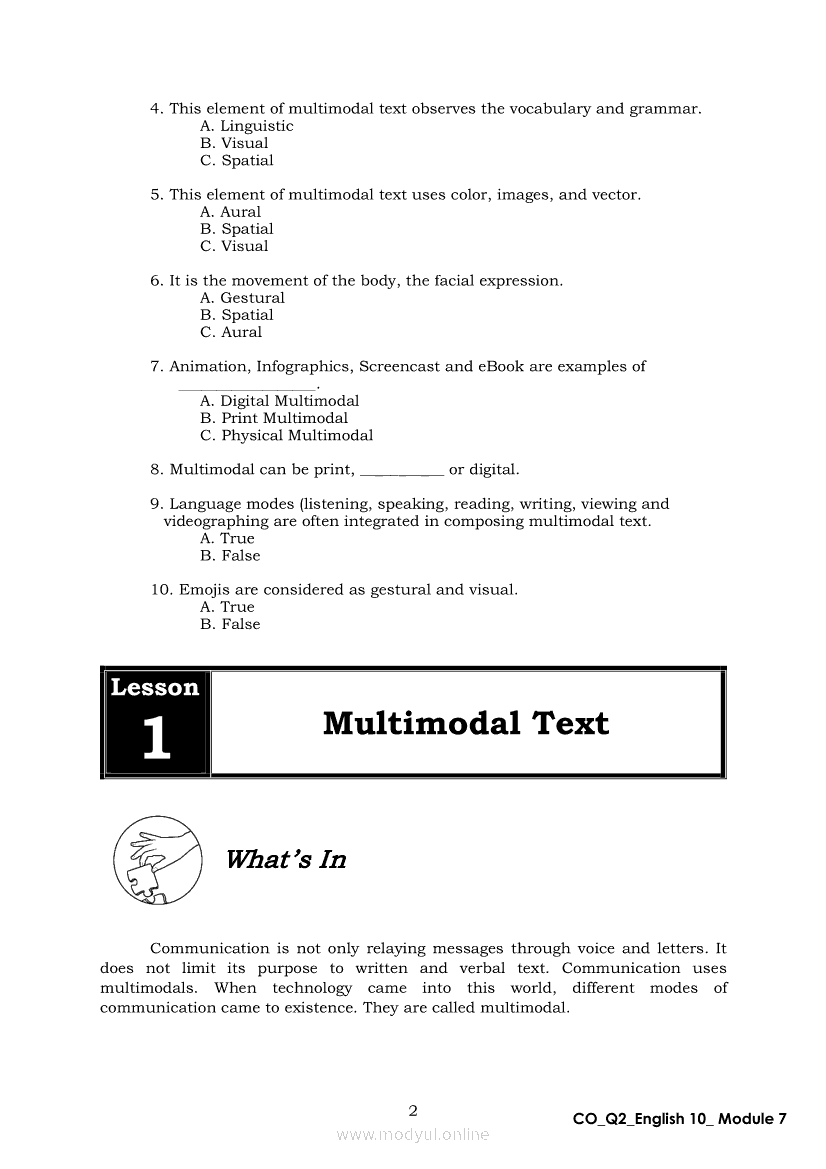 English 10 Quarter 2 – Module 7: Multimodal and its ElementsApr 22, 2021 Grade 10Xiaomi Redmi Watch 5 Active 2inch LCD Display Clear Calling 5ATM Waterproof Smart Watch for only ₱3,999 ₱1,200!. English 10RelatedEnglish Quarter 4 – Module 2: Giving Technical and Operational DefinitionsEnglish Quarter 4 – Module 3: Giving Expanded Definitions of WordsEnglish Quarter 4 – Module 1: Language of ResearchEnglish 10 Second Quarter Module (PIVOT)English 10 Quarter 2 – Module 3: Formulating a Statement of Opinion or Assertion