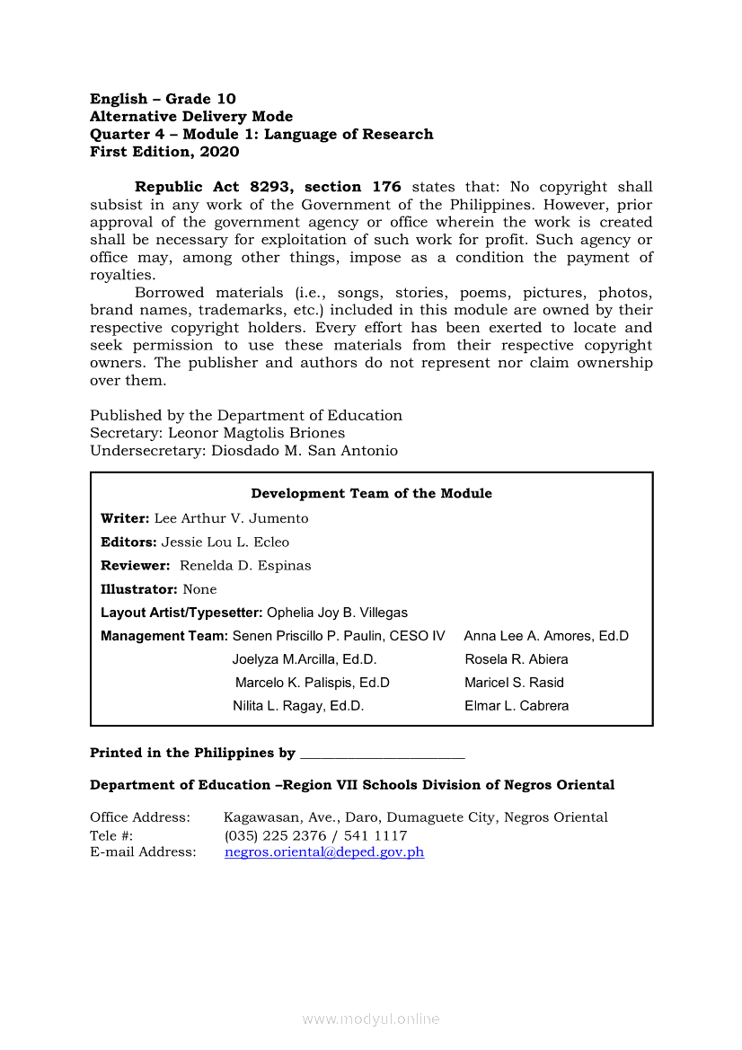 English Quarter 4 – Module 1: Language of ResearchMay 28, 2021 Grade 10Xiaomi Redmi Watch 5 Active 2inch LCD Display Clear Calling 5ATM Waterproof Smart Watch for only ₱3,999 ₱1,200!. English 10 4th QuarterRelatedEnglish Quarter 4 – Module 2: Giving Technical and Operational DefinitionsEnglish Quarter 4 – Module 3: Giving Expanded Definitions of WordsEdukasyon sa Pagpapakatao Ikaapat na Markahan – Modyul 3b: Isyu sa Kawalan ng Paggalang sa Katotohanan Ikaanim na LinggoAPPLY THE PRINCIPLES OF CONSERVATION OF MASS TO CHEMICAL REACTIONS for SCIENCE Grade 10 Q4/ Week 5-6Filipino 10 Ikaapat na Markahan – Modyul 7 KABULUHAN NG MGA KAISIPANG LUTANG SA PILING KABANATA NG EL FILIBUSTERISMO KAUGNAY KAY SIMOUN Sub-Aralin: Pagbibigay-kahulugan ng Matatalinghagang Pahayag