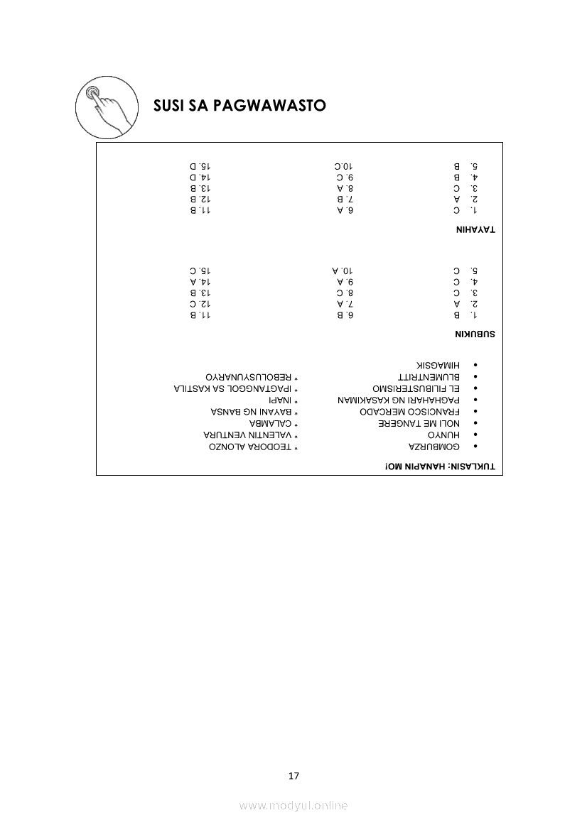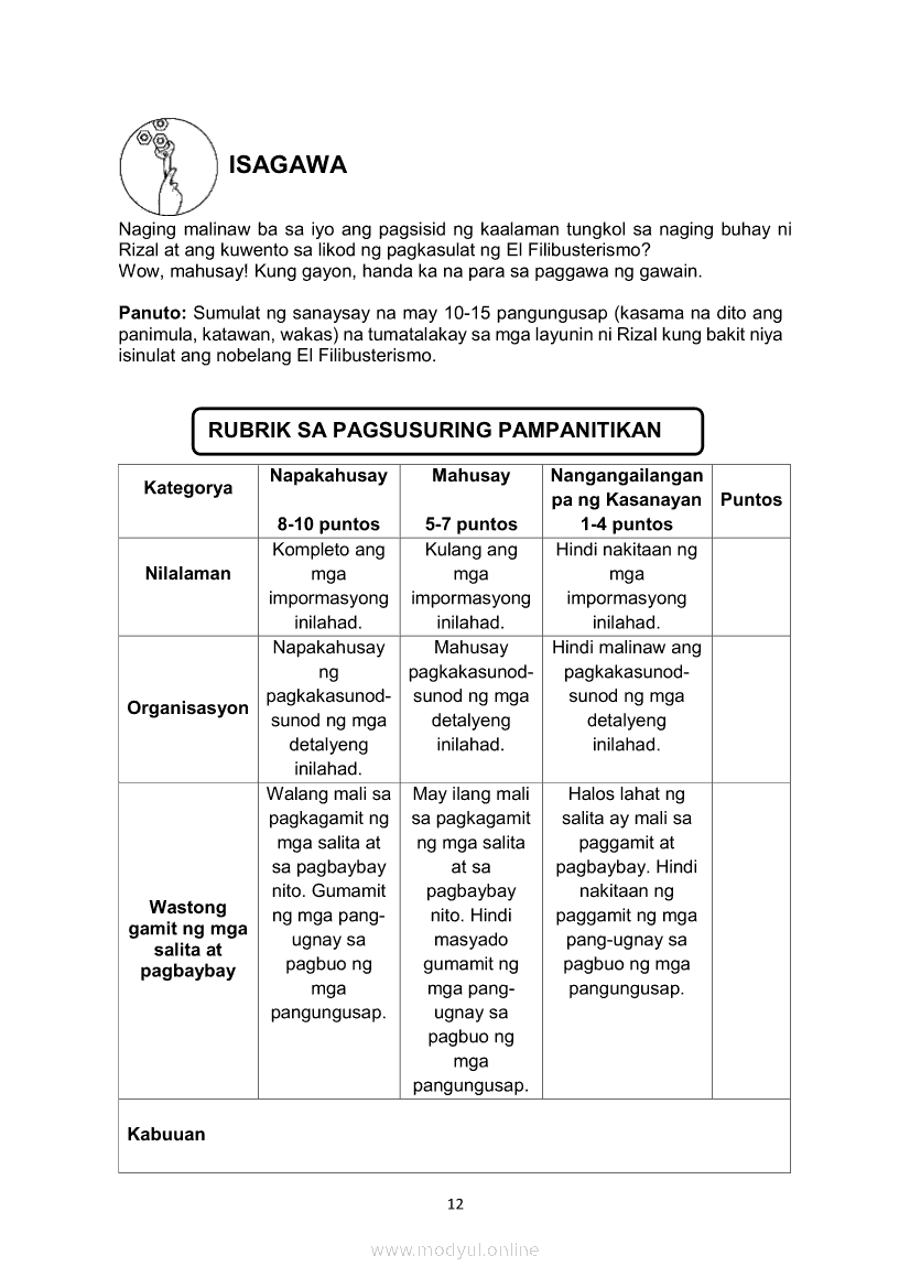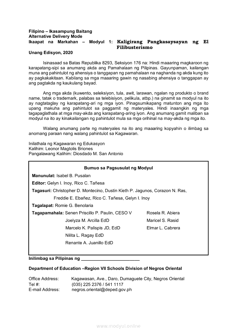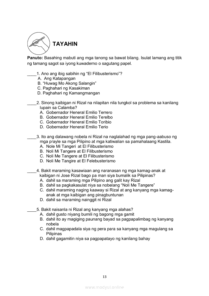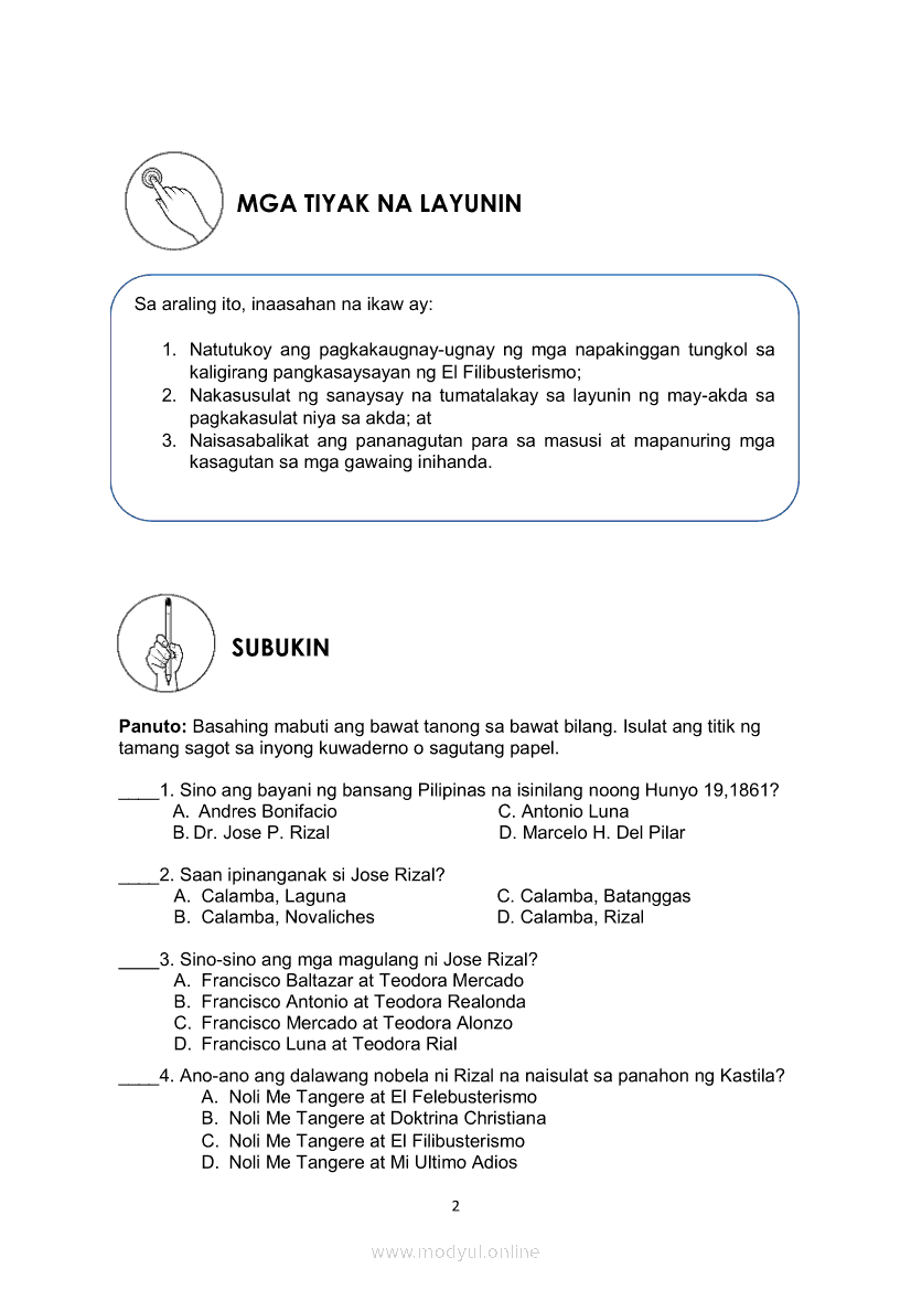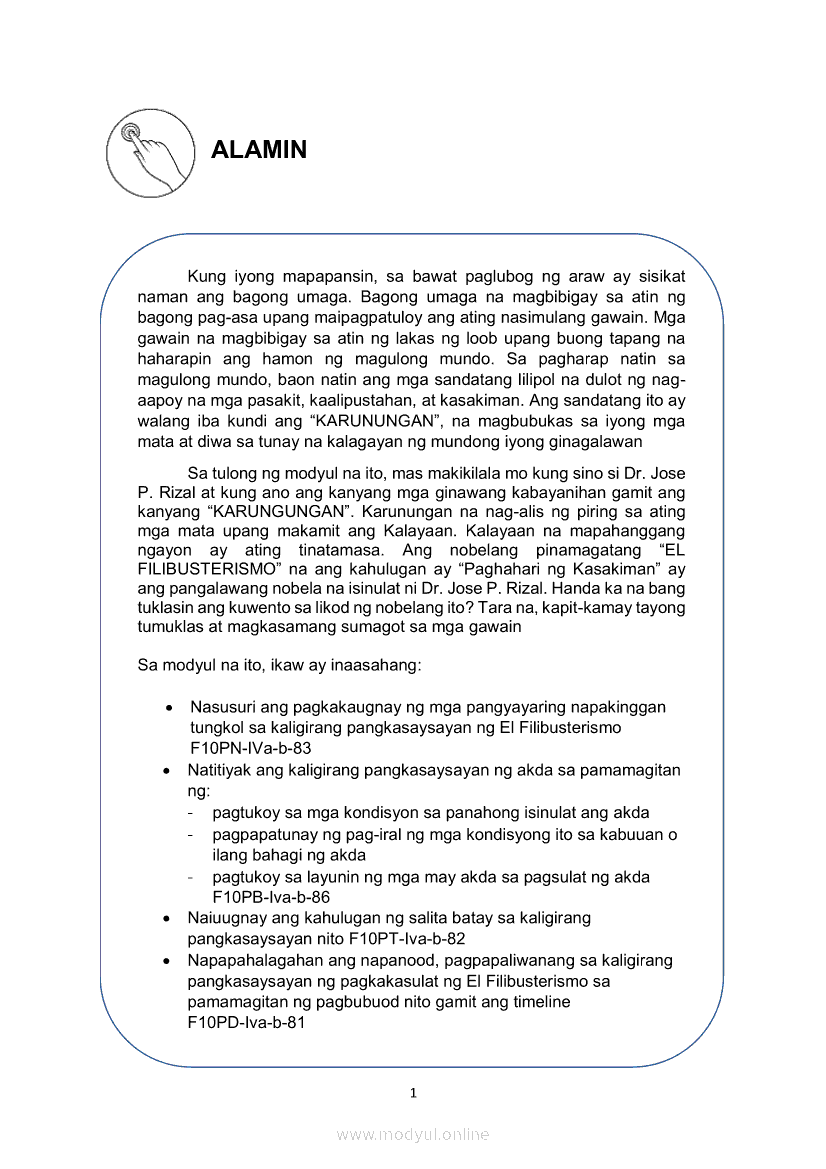 Filipino 10 Ikaapat na Markahan – Modyul 1 KALIGIRANG PANGKASAYSAYAN NG EL FILIBUSTERISMOMay 28, 2021 Grade 10Xiaomi Redmi Watch 5 Active 2inch LCD Display Clear Calling 5ATM Waterproof Smart Watch for only ₱3,999 ₱1,200!. Filipino 10 4th QuarterRelatedFilipino 10 Ikaapat na Markahan – Modyul 5 ANG MGA KAISIPANG LUTANG SA AKDA (Sa Ilalim ng Kubyerta, Sa Bahay ng mga Estudyante, Ginoong Pasta, Ang Palabas, Ang Prayle at Ang mga Pilipino, Ang Piging at Ang Hiwaga)Filipino 10 Ikaapat na Markahan – Modyul 8 PAGSUSURI SA PILING KABANATA NG EL FILIBUSTERISMO NA KAKIKITAAN NG KLASIKONG KATANGIAN NG AKDA Sub-Aralin: Mga Pang-uring Umaakit sa Imahinasyon at mga PandamaFilipino 10 Ikaapat na Markahan – Modyul 4 PAGSUSURI SA PILING KABANATA NG EL FILIBUSTERISMO Sub-Aralin: Pagbubuod Gamit ang Tamang Mekaniks sa PagsulatFilipino 10 Ikaapat na Markahan – Modyul 2 PAGSULAT NG BUOD HANGO SA TIMELINE (Kaligirang Pangkasaysayan ng El Filibusterismo)Filipino 10 Ikaapat na Markahan – Modyul 7 KABULUHAN NG MGA KAISIPANG LUTANG SA PILING KABANATA NG EL FILIBUSTERISMO KAUGNAY KAY SIMOUN Sub-Aralin: Pagbibigay-kahulugan ng Matatalinghagang Pahayag