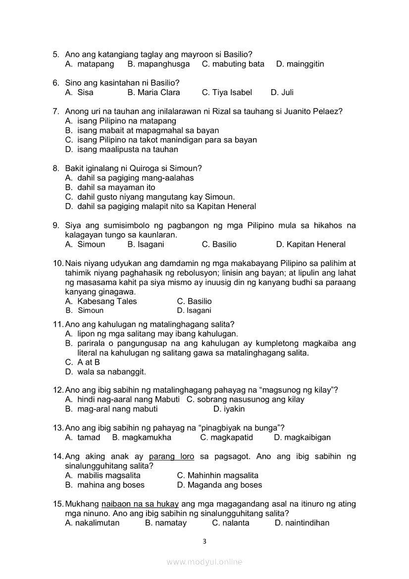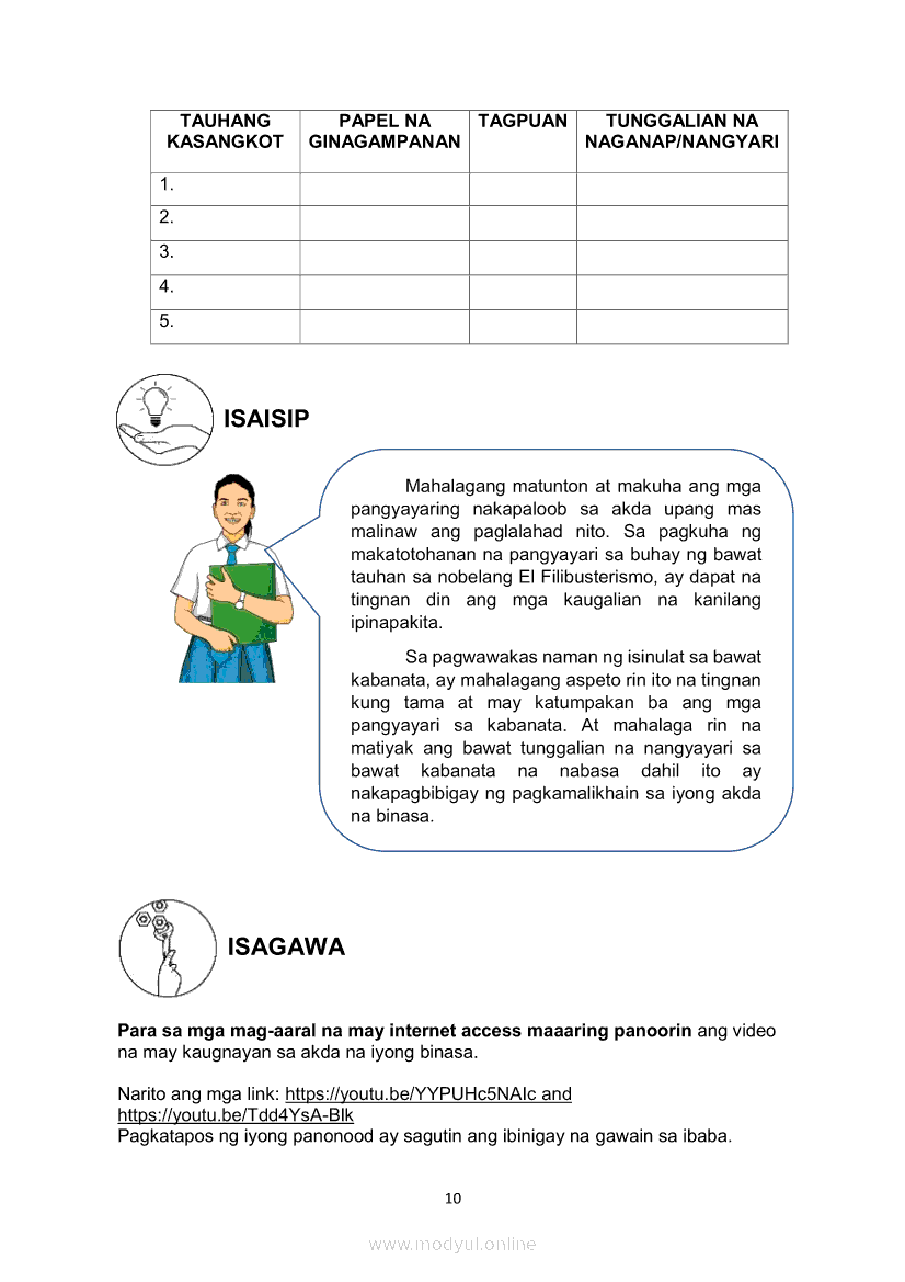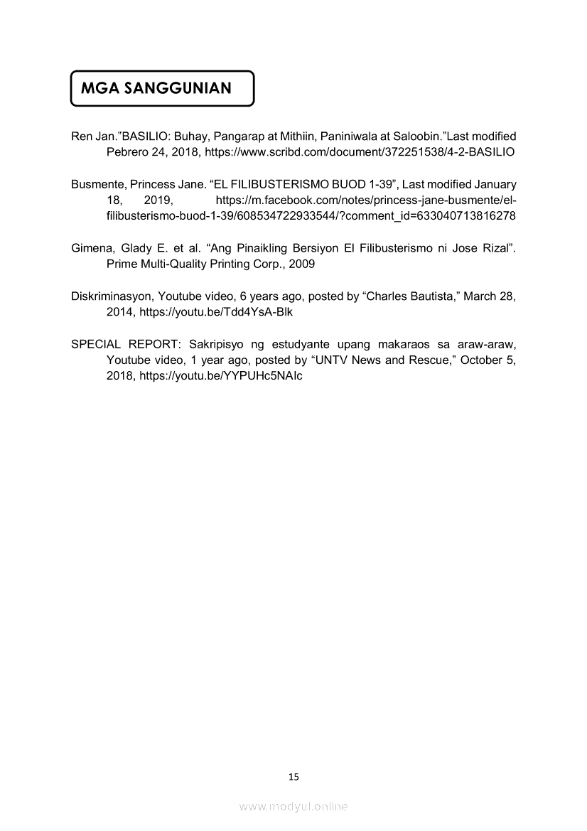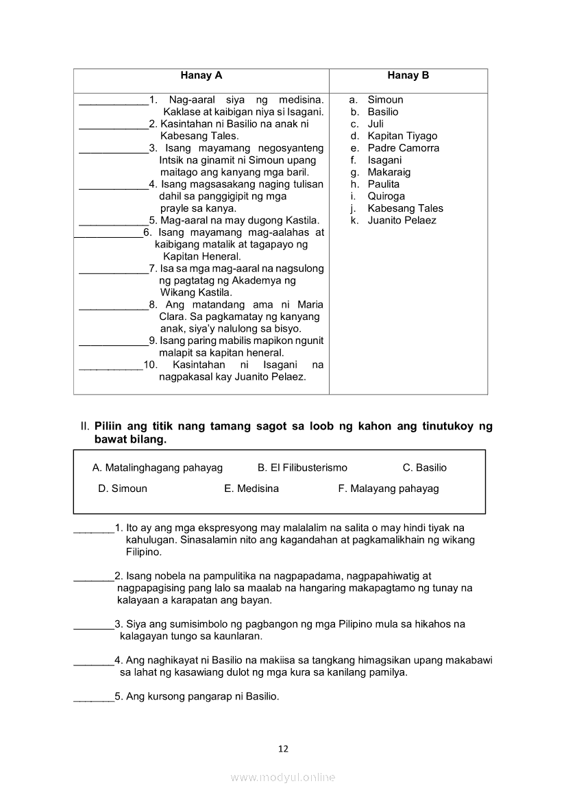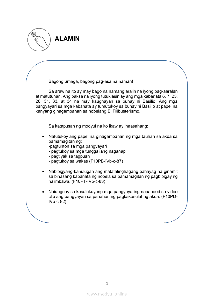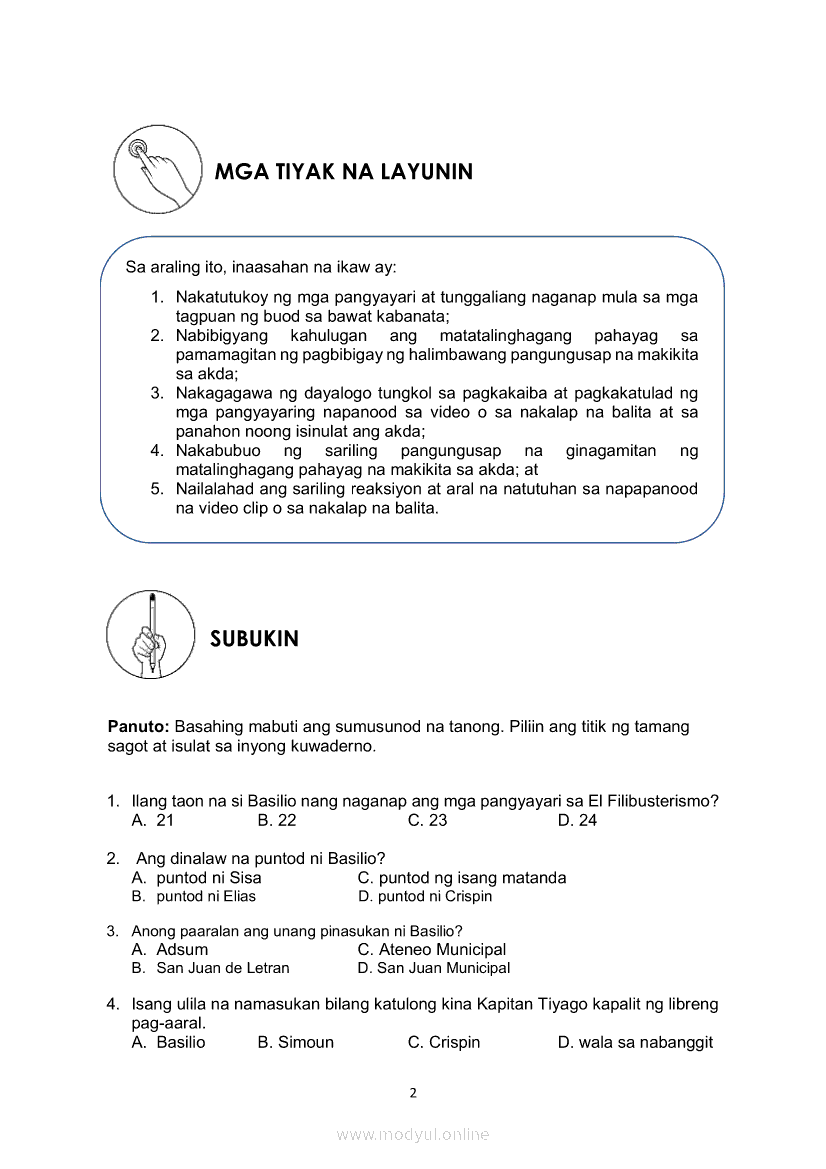 Filipino 10 Ikaapat na Markahan – Modyul 3 BASILIO: BUHAY, PANGARAP AT MITHIIN, PANINIWALA AT SALOOBIN (BUOD NG KABANATA 6, 7, 23, 26, 31, 33, 34 Sub-Aralin: Matatalinghagang Pahayag na Ginagamit sa Binasang Kabanata ng NobelaMay 28, 2021 Grade 10Xiaomi Redmi Watch 5 Active 2inch LCD Display Clear Calling 5ATM Waterproof Smart Watch for only ₱3,999 ₱1,200!. 4th QuarterRelatedFilipino 10 Ikaapat na Markahan – Modyul 6 PAGPAPAHALAGA SA MGA KAISIPANG LUTANG MULA SA BINASANG AKDA (Sa ilalim ng Kubyerta, Ang mga Alamat at Ang Wakas) Sub-Aralin: Mga Salitang Hudyat sa Pagpapahayag ng Saloobin o DamdaminAraling Panlipunan Ikaapat na Markahan – Modyul 2 Lumawak Na Pananaw ng PagkamamamayanTLE - HE - DRESSMAKING Quarter 4 - Module 2: Sew and Assemble the Lady’s TrousersTLE - HE - HAIRDRESSING Quarter 4 - Module 1: APPLYING MAKE-UPFilipino 10 Ikaapat na Markahan – Modyul 4 PAGSUSURI SA PILING KABANATA NG EL FILIBUSTERISMO Sub-Aralin: Pagbubuod Gamit ang Tamang Mekaniks sa Pagsulat