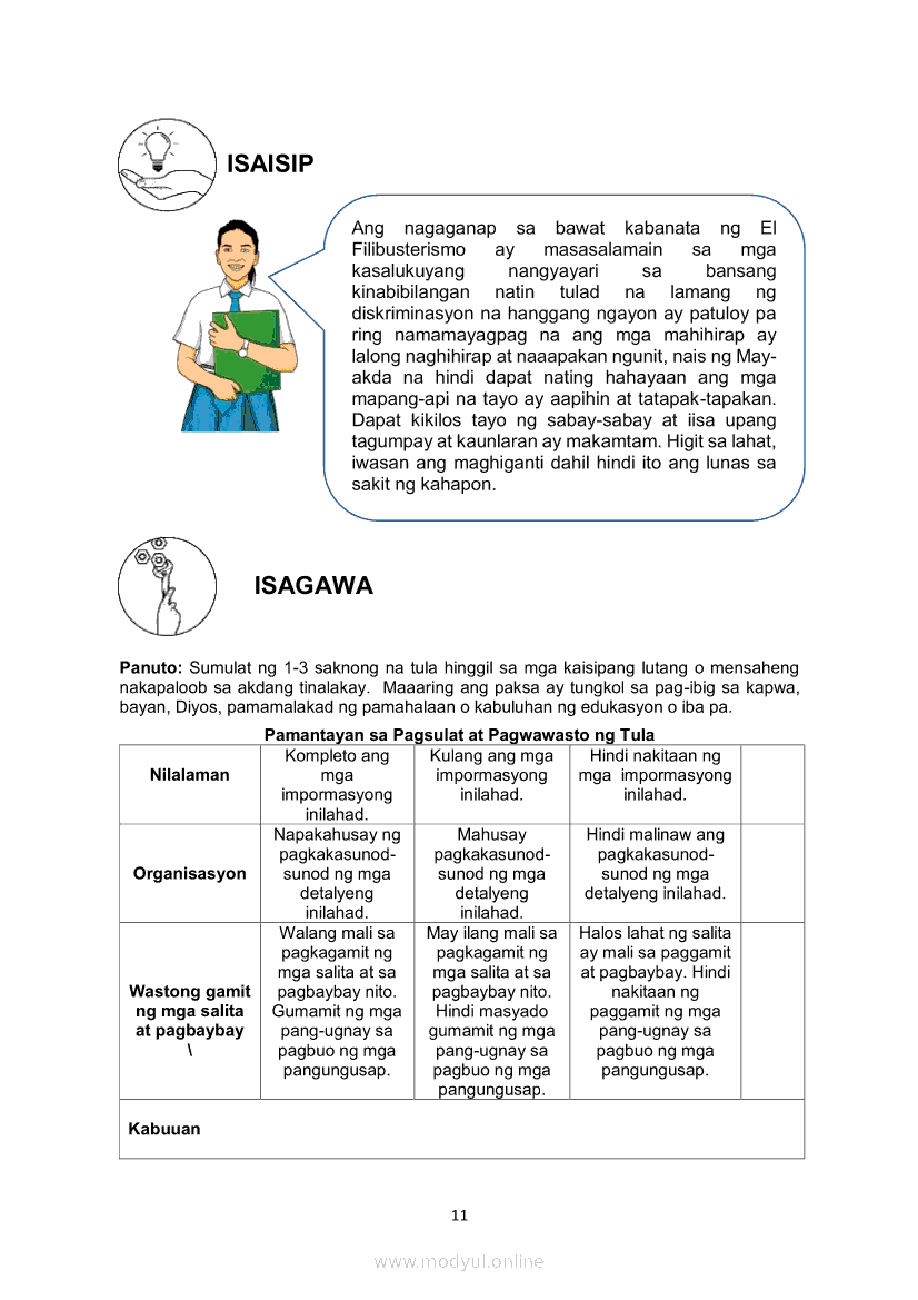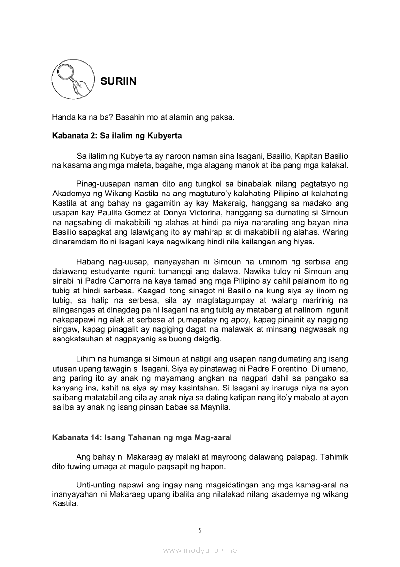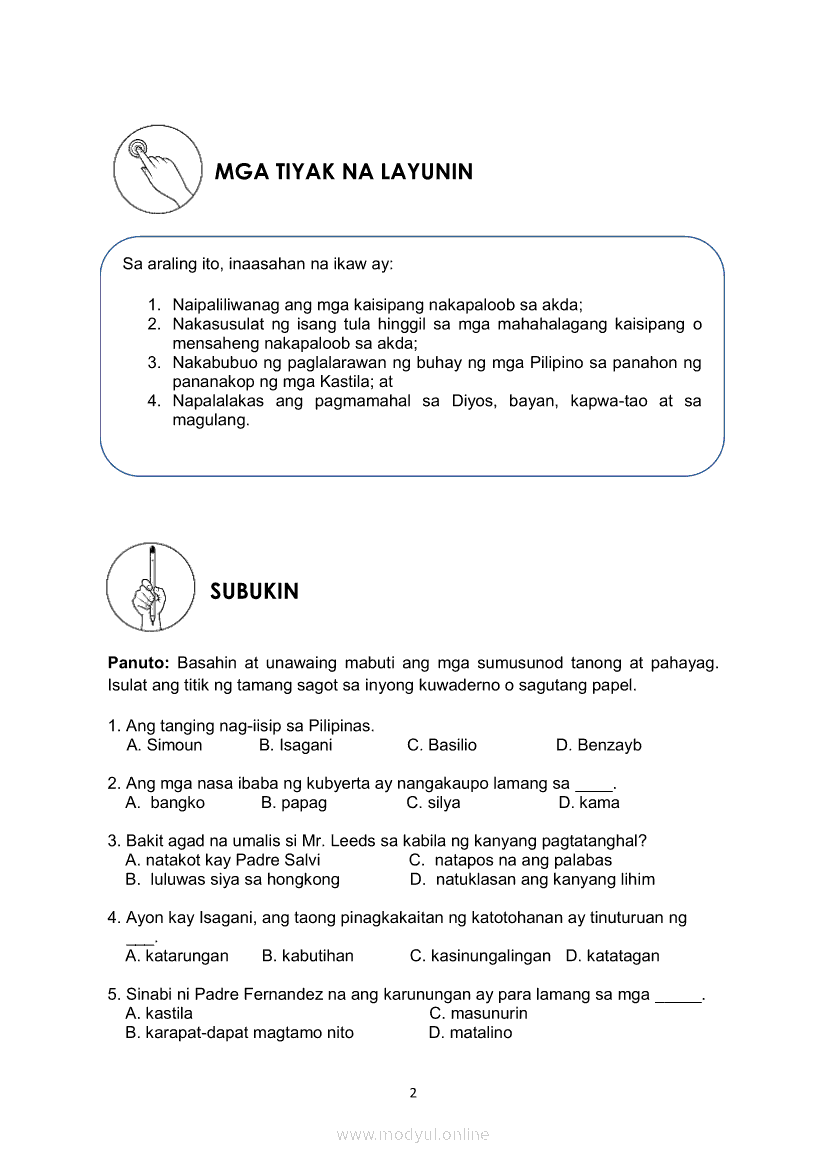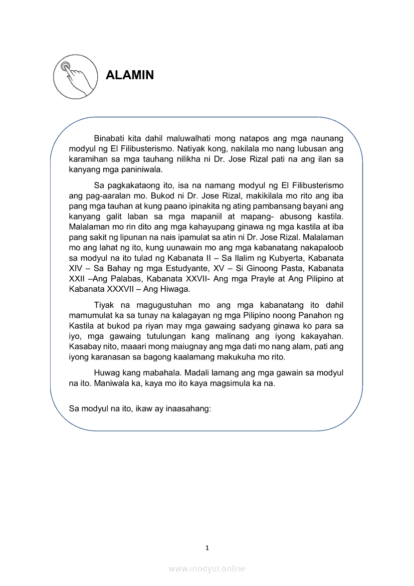 Filipino 10 Ikaapat na Markahan – Modyul 5 ANG MGA KAISIPANG LUTANG SA AKDA (Sa Ilalim ng Kubyerta, Sa Bahay ng mga Estudyante, Ginoong Pasta, Ang Palabas, Ang Prayle at Ang mga Pilipino, Ang Piging at Ang Hiwaga)May 28, 2021 Grade 10Xiaomi Redmi Watch 5 Active 2inch LCD Display Clear Calling 5ATM Waterproof Smart Watch for only ₱3,999 ₱1,200!. Filipino 10 4th QuarterRelatedFilipino 10 Ikaapat na Markahan – Modyul 8 PAGSUSURI SA PILING KABANATA NG EL FILIBUSTERISMO NA KAKIKITAAN NG KLASIKONG KATANGIAN NG AKDA Sub-Aralin: Mga Pang-uring Umaakit sa Imahinasyon at mga PandamaFilipino 10 Ikaapat na Markahan – Modyul 4 PAGSUSURI SA PILING KABANATA NG EL FILIBUSTERISMO Sub-Aralin: Pagbubuod Gamit ang Tamang Mekaniks sa PagsulatFilipino 10 Ikaapat na Markahan – Modyul 2 PAGSULAT NG BUOD HANGO SA TIMELINE (Kaligirang Pangkasaysayan ng El Filibusterismo)Filipino 10 Ikaapat na Markahan – Modyul 7 KABULUHAN NG MGA KAISIPANG LUTANG SA PILING KABANATA NG EL FILIBUSTERISMO KAUGNAY KAY SIMOUN Sub-Aralin: Pagbibigay-kahulugan ng Matatalinghagang PahayagFilipino 10 Ikaapat na Markahan – Modyul 1 KALIGIRANG PANGKASAYSAYAN NG EL FILIBUSTERISMO