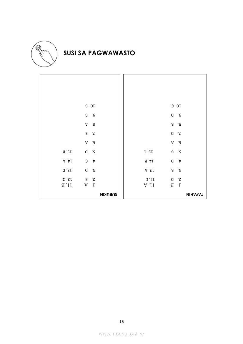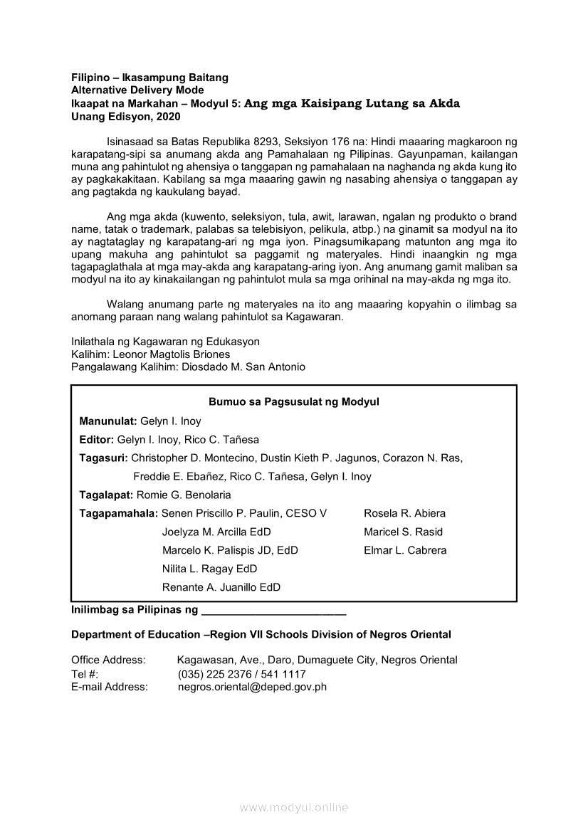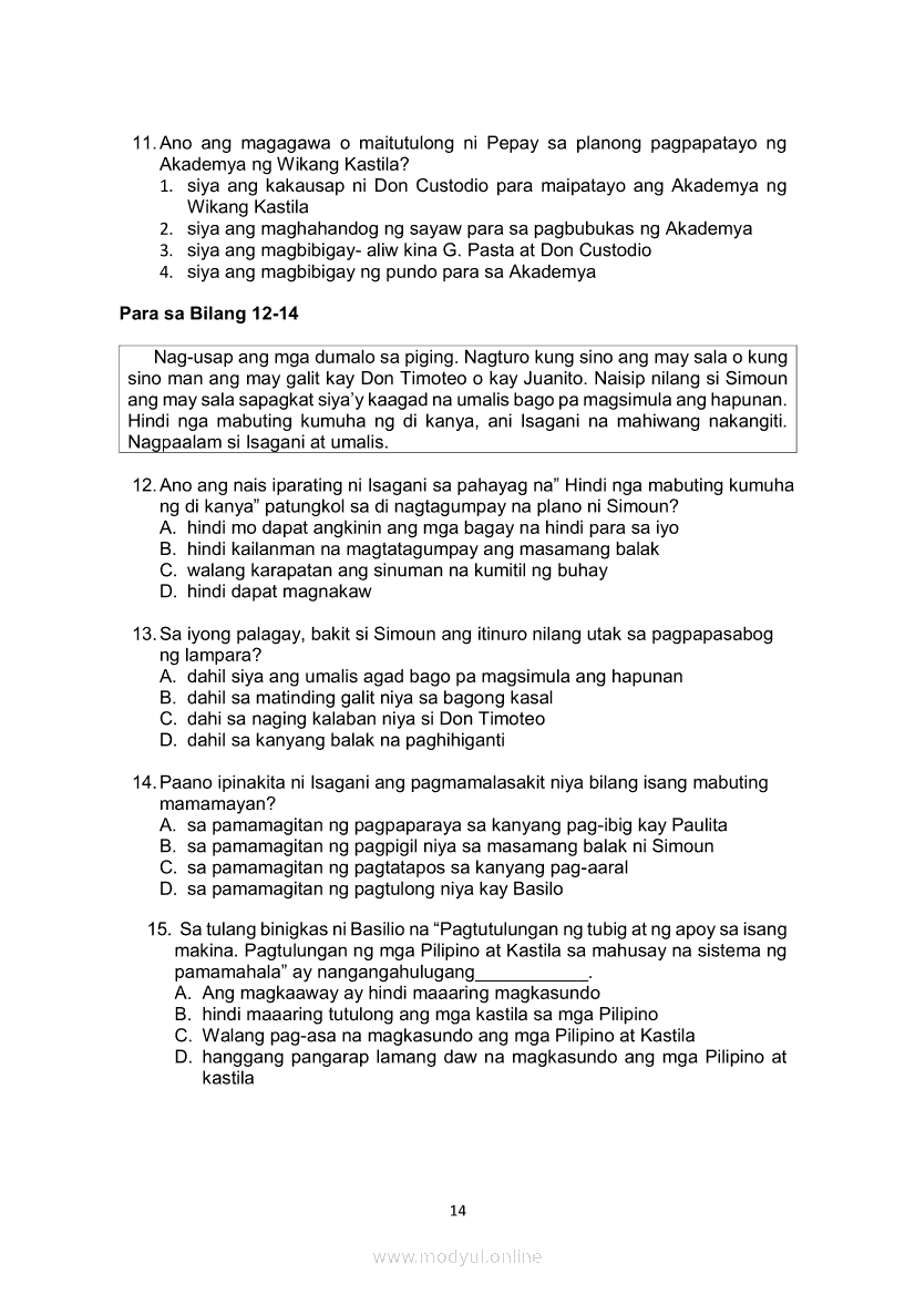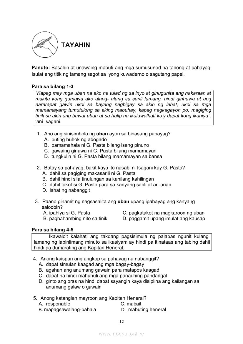 Filipino 10 Ikaapat na Markahan – Modyul 5 ANG MGA KAISIPANG LUTANG SA AKDA (Sa Ilalim ng Kubyerta, Sa Bahay ng mga Estudyante, Ginoong Pasta, Ang Palabas, Ang Prayle at Ang mga Pilipino, Ang Piging at Ang Hiwaga)May 28, 2021 Grade 10Xiaomi Redmi Watch 5 Active 2inch LCD Display Clear Calling 5ATM Waterproof Smart Watch for only ₱3,999 ₱1,200!. Filipino 10 4th QuarterRelatedFilipino 10 Ikaapat na Markahan – Modyul 8 PAGSUSURI SA PILING KABANATA NG EL FILIBUSTERISMO NA KAKIKITAAN NG KLASIKONG KATANGIAN NG AKDA Sub-Aralin: Mga Pang-uring Umaakit sa Imahinasyon at mga PandamaFilipino 10 Ikaapat na Markahan – Modyul 4 PAGSUSURI SA PILING KABANATA NG EL FILIBUSTERISMO Sub-Aralin: Pagbubuod Gamit ang Tamang Mekaniks sa PagsulatFilipino 10 Ikaapat na Markahan – Modyul 2 PAGSULAT NG BUOD HANGO SA TIMELINE (Kaligirang Pangkasaysayan ng El Filibusterismo)Filipino 10 Ikaapat na Markahan – Modyul 7 KABULUHAN NG MGA KAISIPANG LUTANG SA PILING KABANATA NG EL FILIBUSTERISMO KAUGNAY KAY SIMOUN Sub-Aralin: Pagbibigay-kahulugan ng Matatalinghagang PahayagFilipino 10 Ikaapat na Markahan – Modyul 1 KALIGIRANG PANGKASAYSAYAN NG EL FILIBUSTERISMO