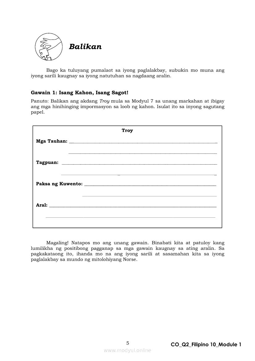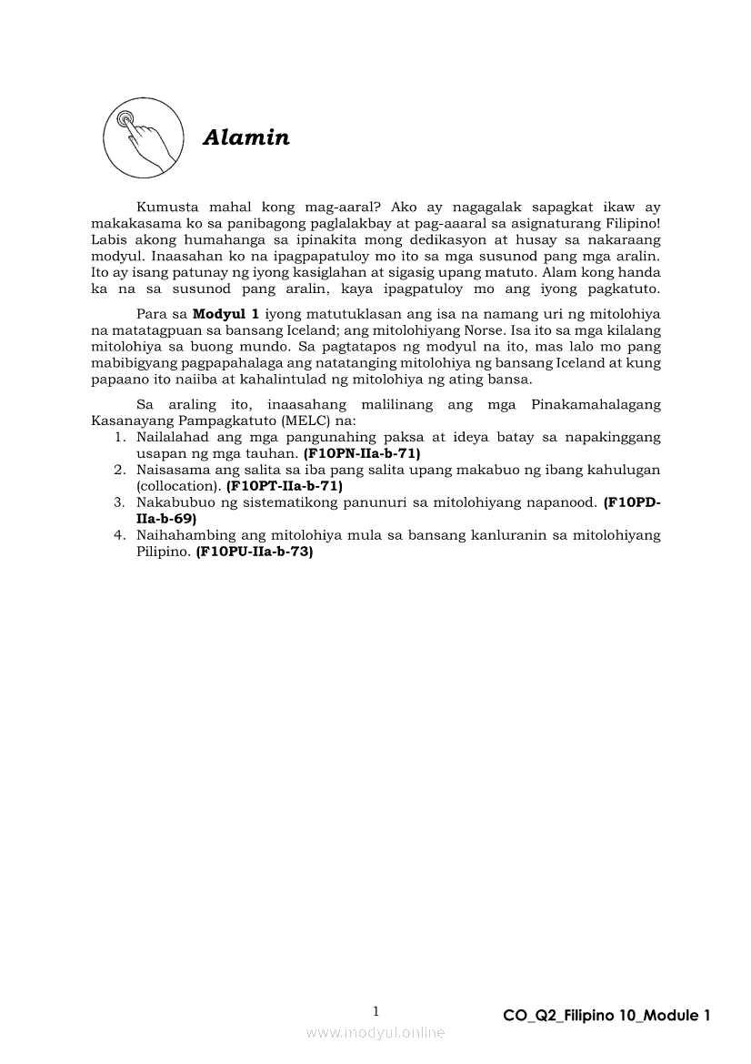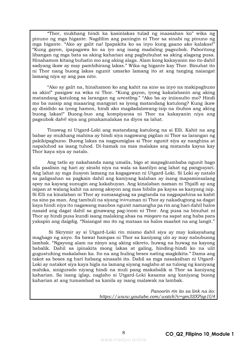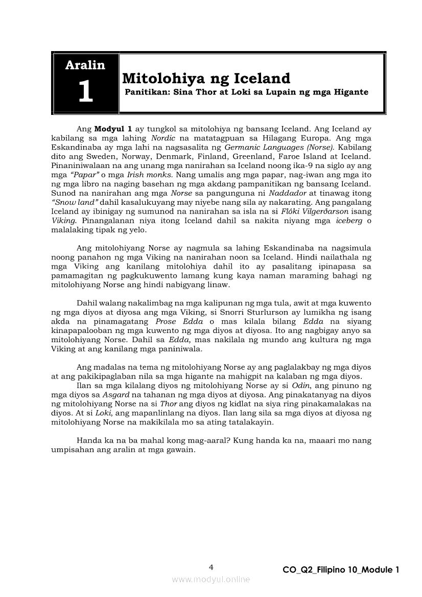 Filipino 10 Ikalawang Markahan – Modyul 1: Mito mula sa Iceland (Panitikang Kanluranin)Apr 22, 2021 Grade 10Xiaomi Redmi Watch 5 Active 2inch LCD Display Clear Calling 5ATM Waterproof Smart Watch for only ₱3,999 ₱1,200!. Filipino 10RelatedFilipino 10 Ikaapat na Markahan – Modyul 2 PAGSULAT NG BUOD HANGO SA TIMELINE (Kaligirang Pangkasaysayan ng El Filibusterismo)Filipino 10 Ikaapat na Markahan – Modyul 5 ANG MGA KAISIPANG LUTANG SA AKDA (Sa Ilalim ng Kubyerta, Sa Bahay ng mga Estudyante, Ginoong Pasta, Ang Palabas, Ang Prayle at Ang mga Pilipino, Ang Piging at Ang Hiwaga)Filipino 10 Ikaapat na Markahan – Modyul 7 KABULUHAN NG MGA KAISIPANG LUTANG SA PILING KABANATA NG EL FILIBUSTERISMO KAUGNAY KAY SIMOUN Sub-Aralin: Pagbibigay-kahulugan ng Matatalinghagang PahayagFilipino 10 Ikaapat na Markahan – Modyul 1 KALIGIRANG PANGKASAYSAYAN NG EL FILIBUSTERISMOFilipino 10 Ikaapat na Markahan – Modyul 4 PAGSUSURI SA PILING KABANATA NG EL FILIBUSTERISMO Sub-Aralin: Pagbubuod Gamit ang Tamang Mekaniks sa Pagsulat