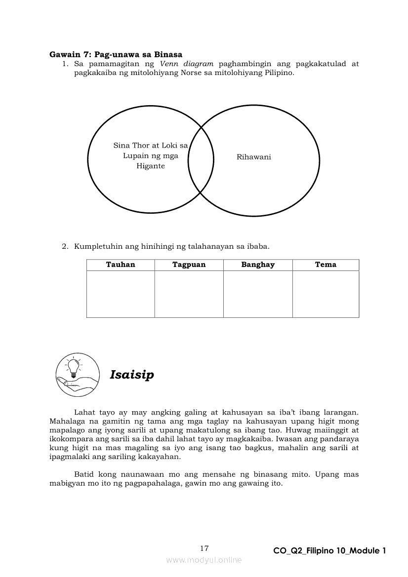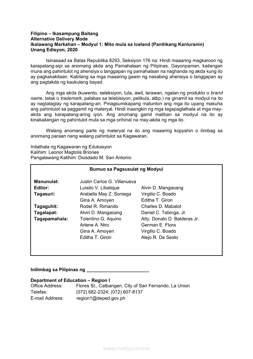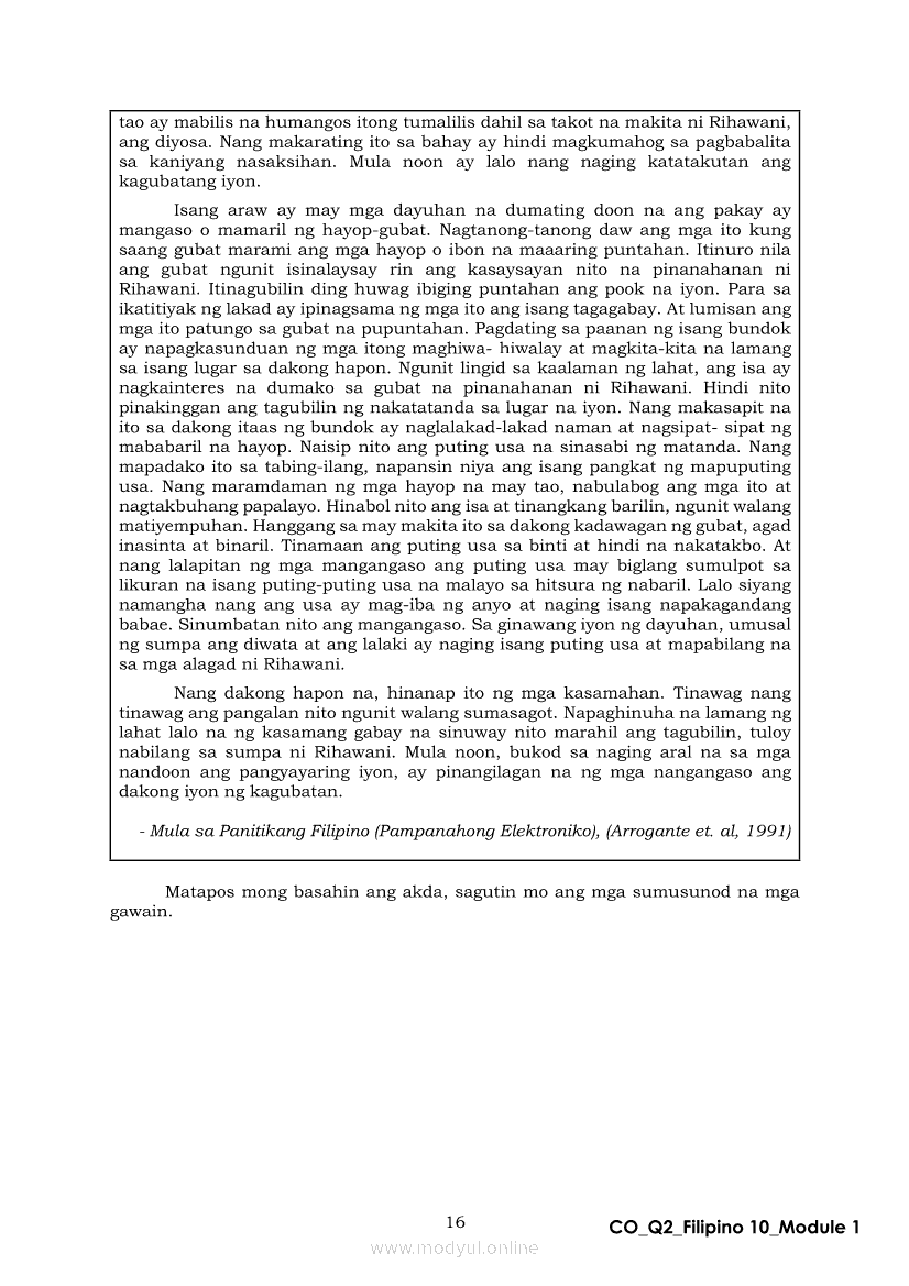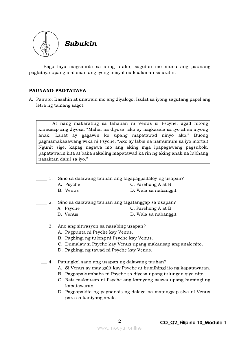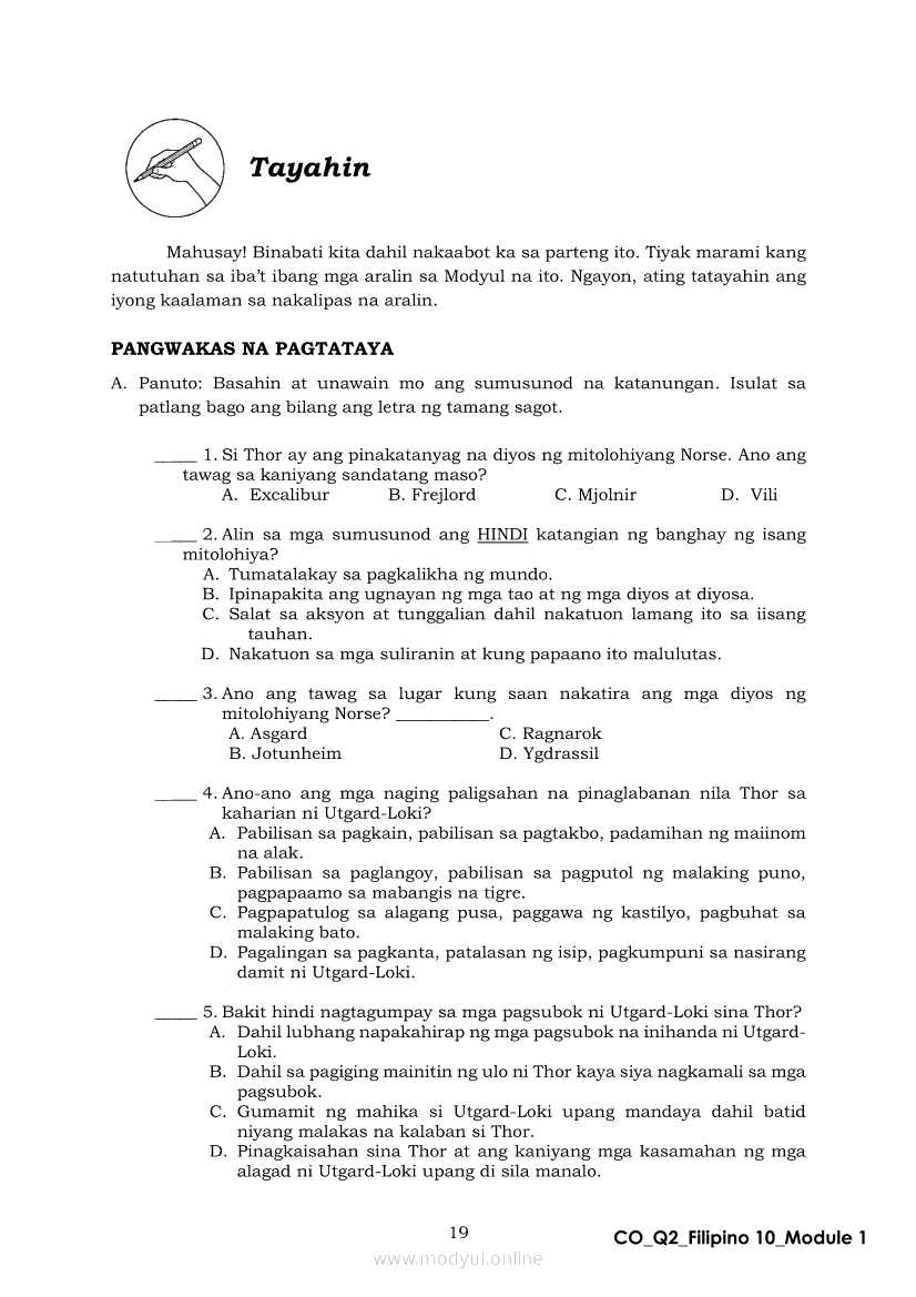 Filipino 10 Ikalawang Markahan – Modyul 1: Mito mula sa Iceland (Panitikang Kanluranin)Apr 22, 2021 Grade 10Xiaomi Redmi Watch 5 Active 2inch LCD Display Clear Calling 5ATM Waterproof Smart Watch for only ₱3,999 ₱1,200!. Filipino 10RelatedFilipino 10 Ikaapat na Markahan – Modyul 2 PAGSULAT NG BUOD HANGO SA TIMELINE (Kaligirang Pangkasaysayan ng El Filibusterismo)Filipino 10 Ikaapat na Markahan – Modyul 5 ANG MGA KAISIPANG LUTANG SA AKDA (Sa Ilalim ng Kubyerta, Sa Bahay ng mga Estudyante, Ginoong Pasta, Ang Palabas, Ang Prayle at Ang mga Pilipino, Ang Piging at Ang Hiwaga)Filipino 10 Ikaapat na Markahan – Modyul 7 KABULUHAN NG MGA KAISIPANG LUTANG SA PILING KABANATA NG EL FILIBUSTERISMO KAUGNAY KAY SIMOUN Sub-Aralin: Pagbibigay-kahulugan ng Matatalinghagang PahayagFilipino 10 Ikaapat na Markahan – Modyul 1 KALIGIRANG PANGKASAYSAYAN NG EL FILIBUSTERISMOFilipino 10 Ikaapat na Markahan – Modyul 4 PAGSUSURI SA PILING KABANATA NG EL FILIBUSTERISMO Sub-Aralin: Pagbubuod Gamit ang Tamang Mekaniks sa Pagsulat
