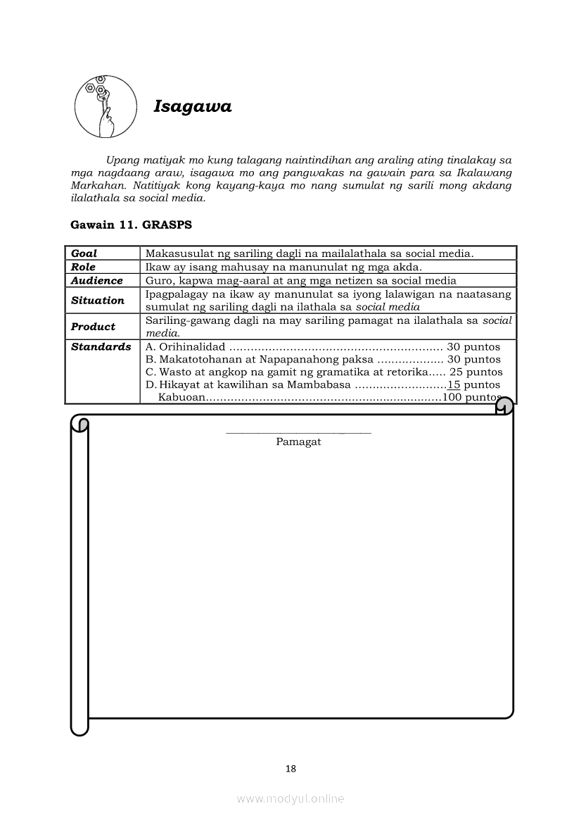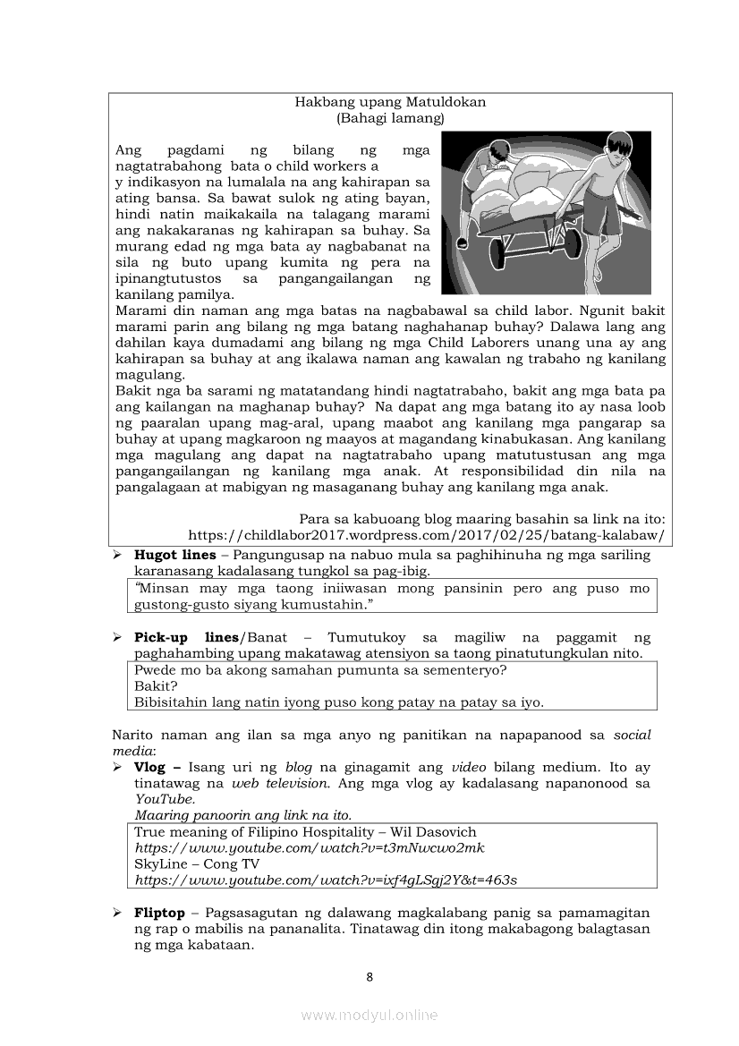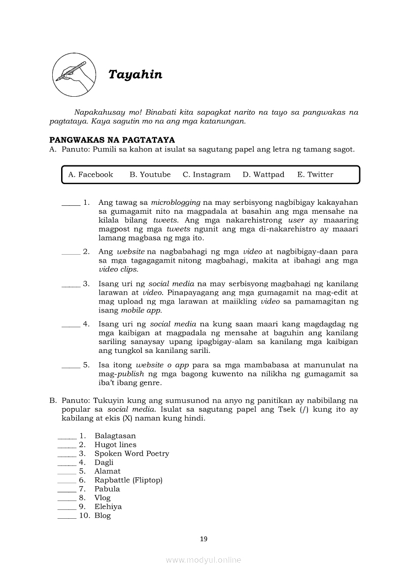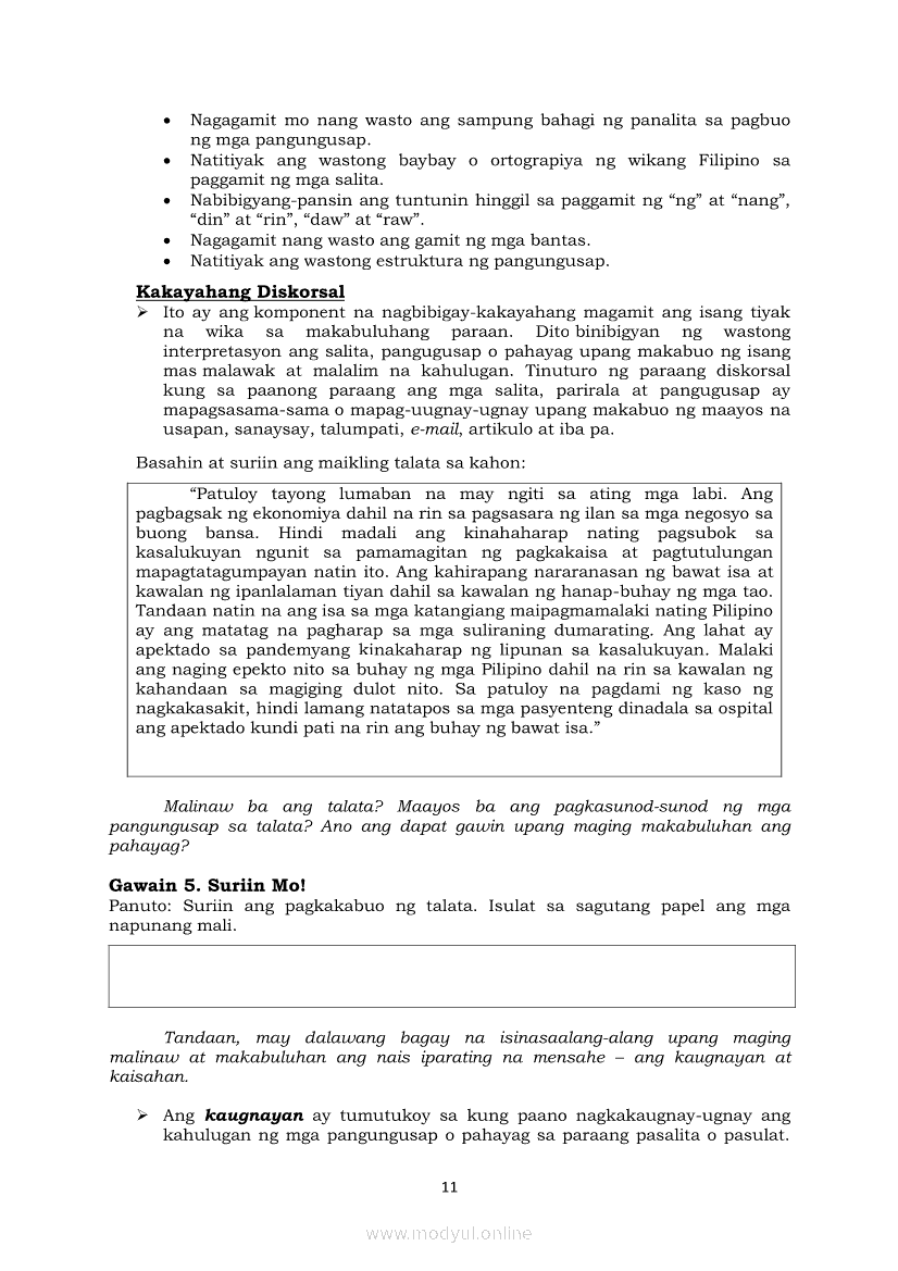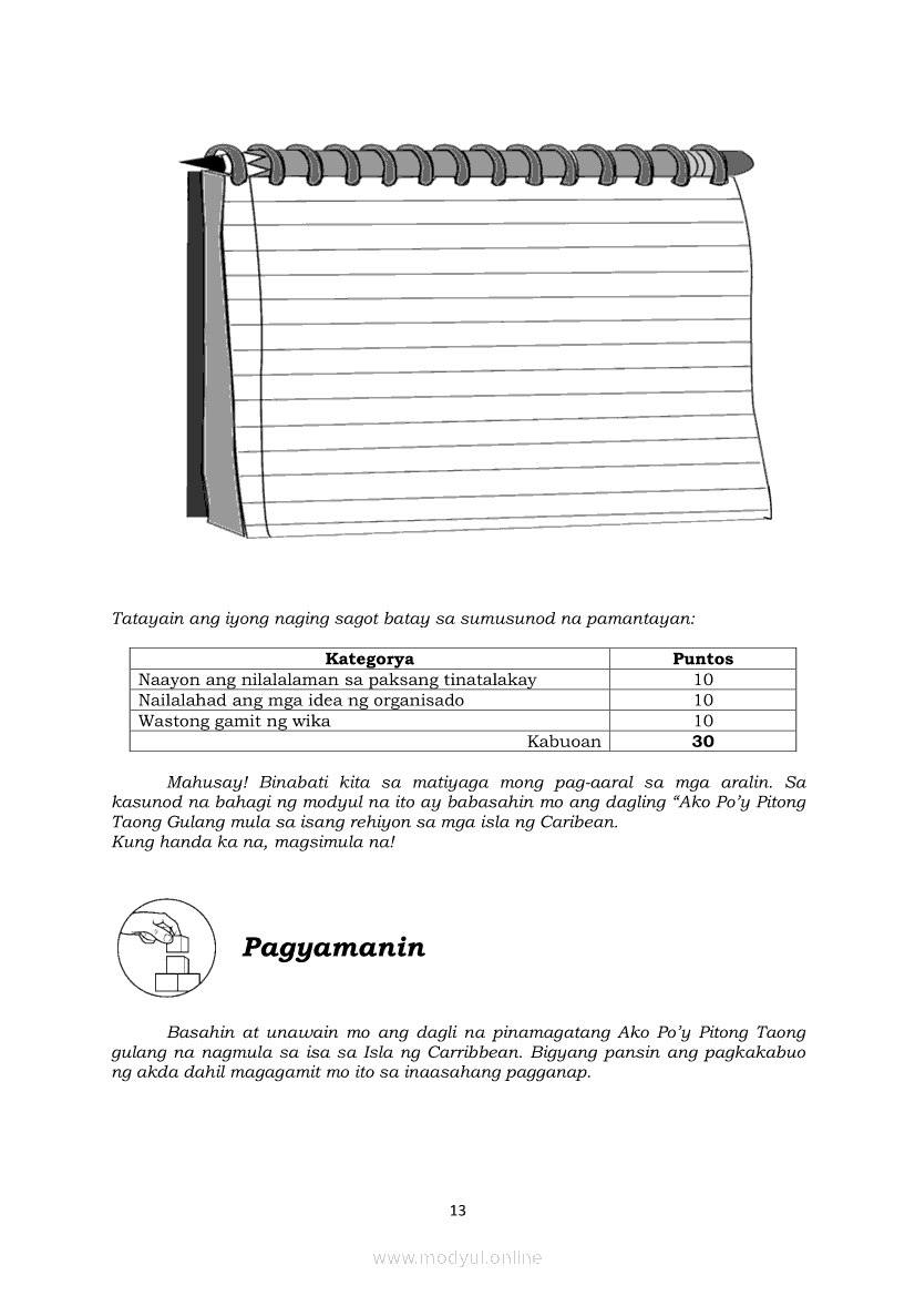 Filipino 10 Ikalawang Markahan – Modyul 7: Pangwakas na Gawain sa Panitikang KanluraninApr 22, 2021 Grade 10Xiaomi Redmi Watch 5 Active 2inch LCD Display Clear Calling 5ATM Waterproof Smart Watch for only ₱3,999 ₱1,200!. Filipino 10RelatedFilipino 10 Ikaapat na Markahan – Modyul 4 PAGSUSURI SA PILING KABANATA NG EL FILIBUSTERISMO Sub-Aralin: Pagbubuod Gamit ang Tamang Mekaniks sa PagsulatFilipino 10 Ikaapat na Markahan – Modyul 1 KALIGIRANG PANGKASAYSAYAN NG EL FILIBUSTERISMOFilipino 10 Ikaapat na Markahan – Modyul 8 PAGSUSURI SA PILING KABANATA NG EL FILIBUSTERISMO NA KAKIKITAAN NG KLASIKONG KATANGIAN NG AKDA Sub-Aralin: Mga Pang-uring Umaakit sa Imahinasyon at mga PandamaFilipino 10 Ikaapat na Markahan – Modyul 5 ANG MGA KAISIPANG LUTANG SA AKDA (Sa Ilalim ng Kubyerta, Sa Bahay ng mga Estudyante, Ginoong Pasta, Ang Palabas, Ang Prayle at Ang mga Pilipino, Ang Piging at Ang Hiwaga)Filipino 10 Ikaapat na Markahan – Modyul 7 KABULUHAN NG MGA KAISIPANG LUTANG SA PILING KABANATA NG EL FILIBUSTERISMO KAUGNAY KAY SIMOUN Sub-Aralin: Pagbibigay-kahulugan ng Matatalinghagang Pahayag