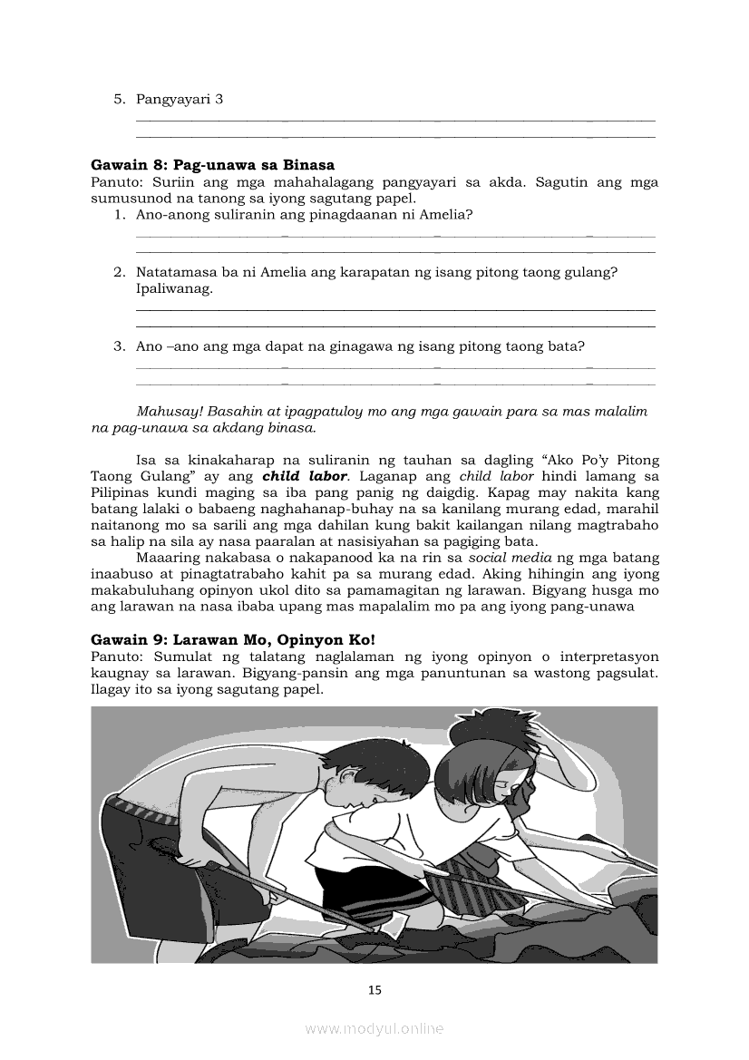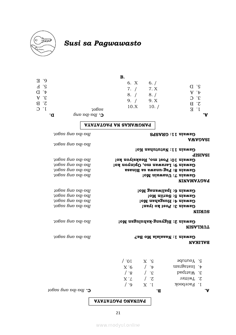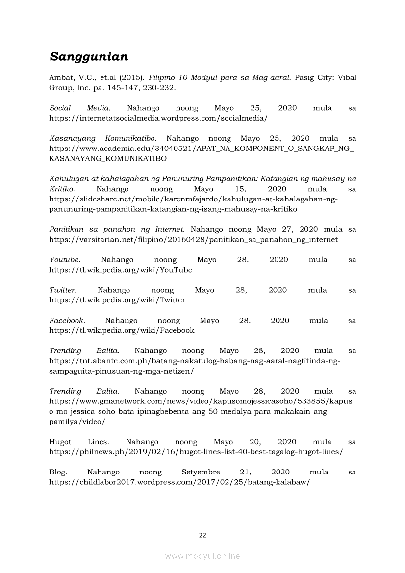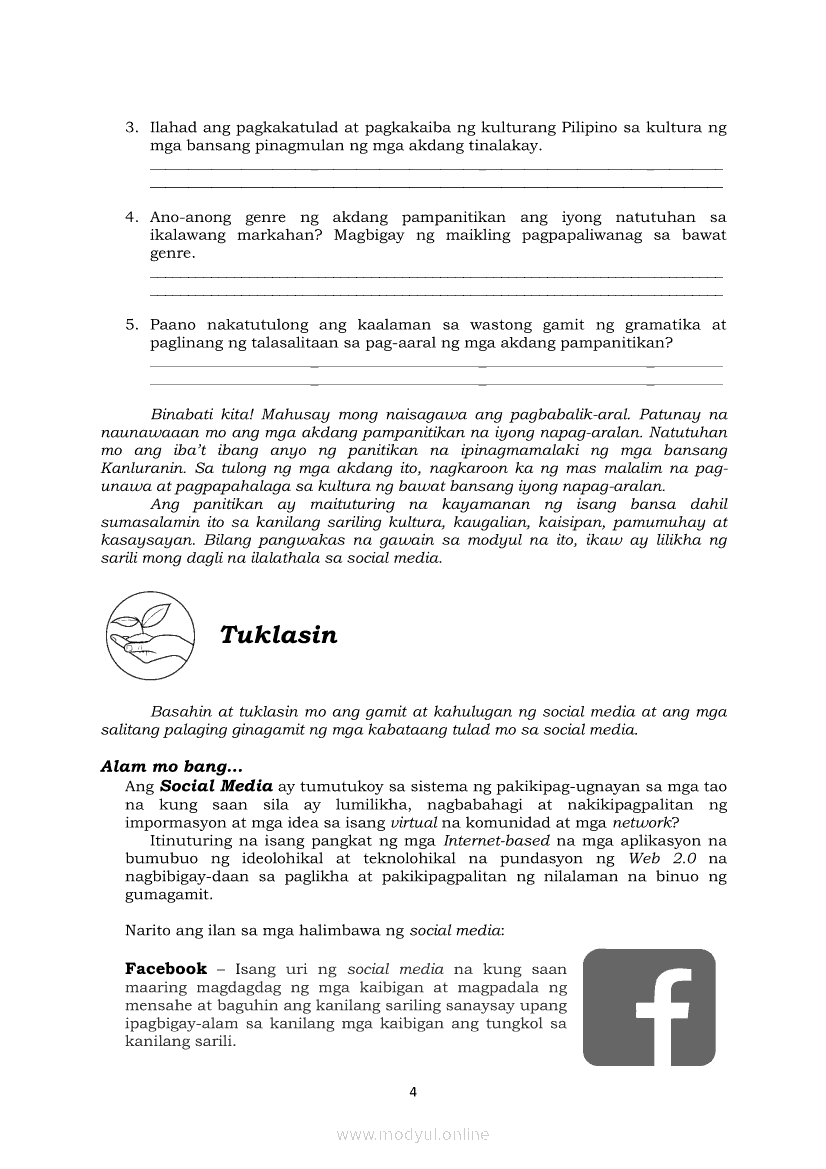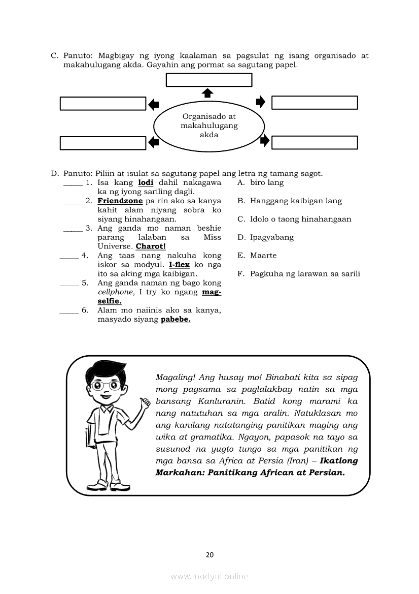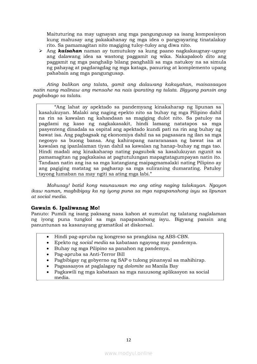 Filipino 10 Ikalawang Markahan – Modyul 7: Pangwakas na Gawain sa Panitikang KanluraninApr 22, 2021 Grade 10Xiaomi Redmi Watch 5 Active 2inch LCD Display Clear Calling 5ATM Waterproof Smart Watch for only ₱3,999 ₱1,200!. Filipino 10RelatedFilipino 10 Ikaapat na Markahan – Modyul 4 PAGSUSURI SA PILING KABANATA NG EL FILIBUSTERISMO Sub-Aralin: Pagbubuod Gamit ang Tamang Mekaniks sa PagsulatFilipino 10 Ikaapat na Markahan – Modyul 1 KALIGIRANG PANGKASAYSAYAN NG EL FILIBUSTERISMOFilipino 10 Ikaapat na Markahan – Modyul 8 PAGSUSURI SA PILING KABANATA NG EL FILIBUSTERISMO NA KAKIKITAAN NG KLASIKONG KATANGIAN NG AKDA Sub-Aralin: Mga Pang-uring Umaakit sa Imahinasyon at mga PandamaFilipino 10 Ikaapat na Markahan – Modyul 5 ANG MGA KAISIPANG LUTANG SA AKDA (Sa Ilalim ng Kubyerta, Sa Bahay ng mga Estudyante, Ginoong Pasta, Ang Palabas, Ang Prayle at Ang mga Pilipino, Ang Piging at Ang Hiwaga)Filipino 10 Ikaapat na Markahan – Modyul 7 KABULUHAN NG MGA KAISIPANG LUTANG SA PILING KABANATA NG EL FILIBUSTERISMO KAUGNAY KAY SIMOUN Sub-Aralin: Pagbibigay-kahulugan ng Matatalinghagang Pahayag