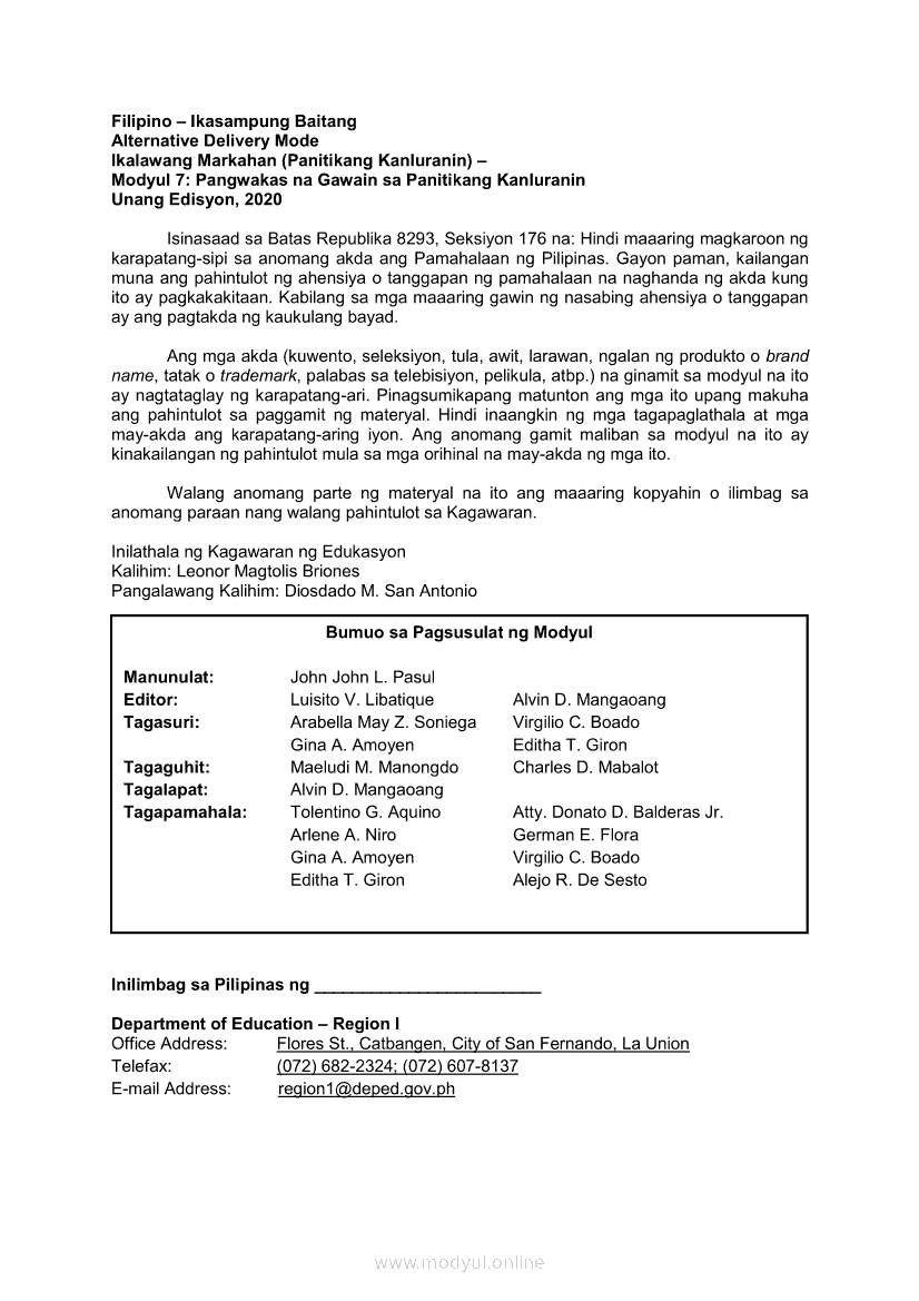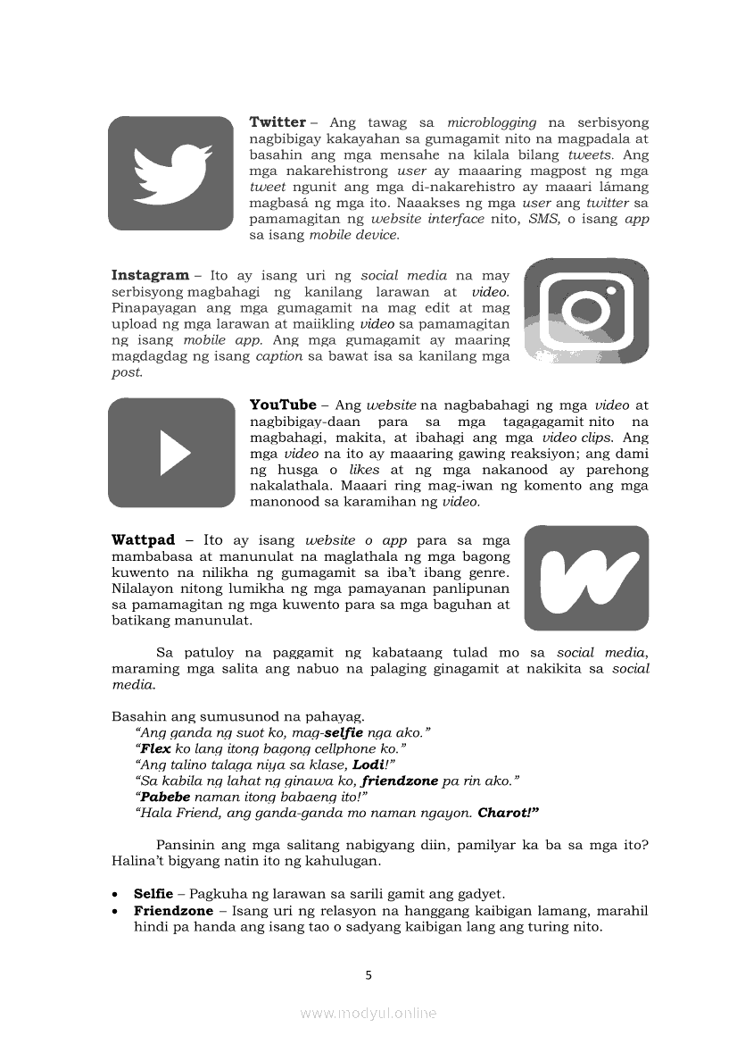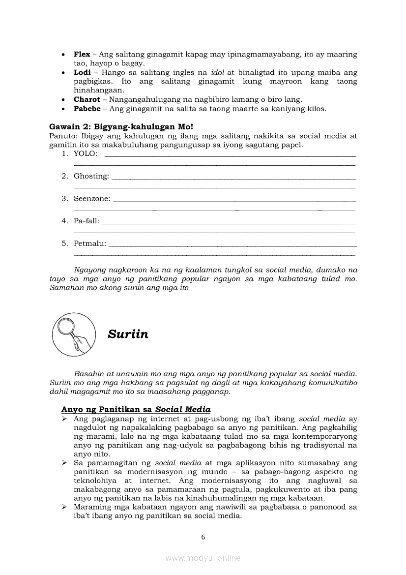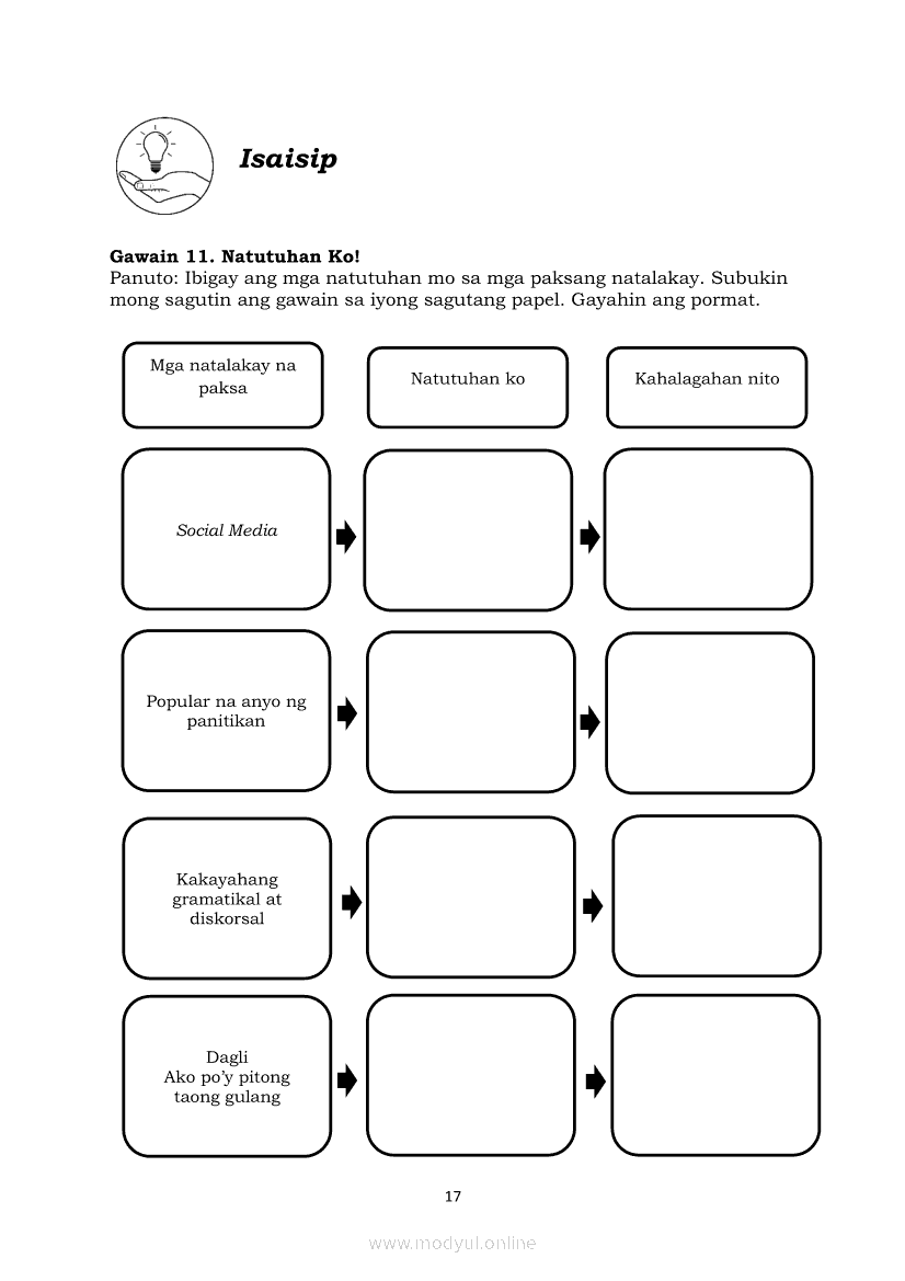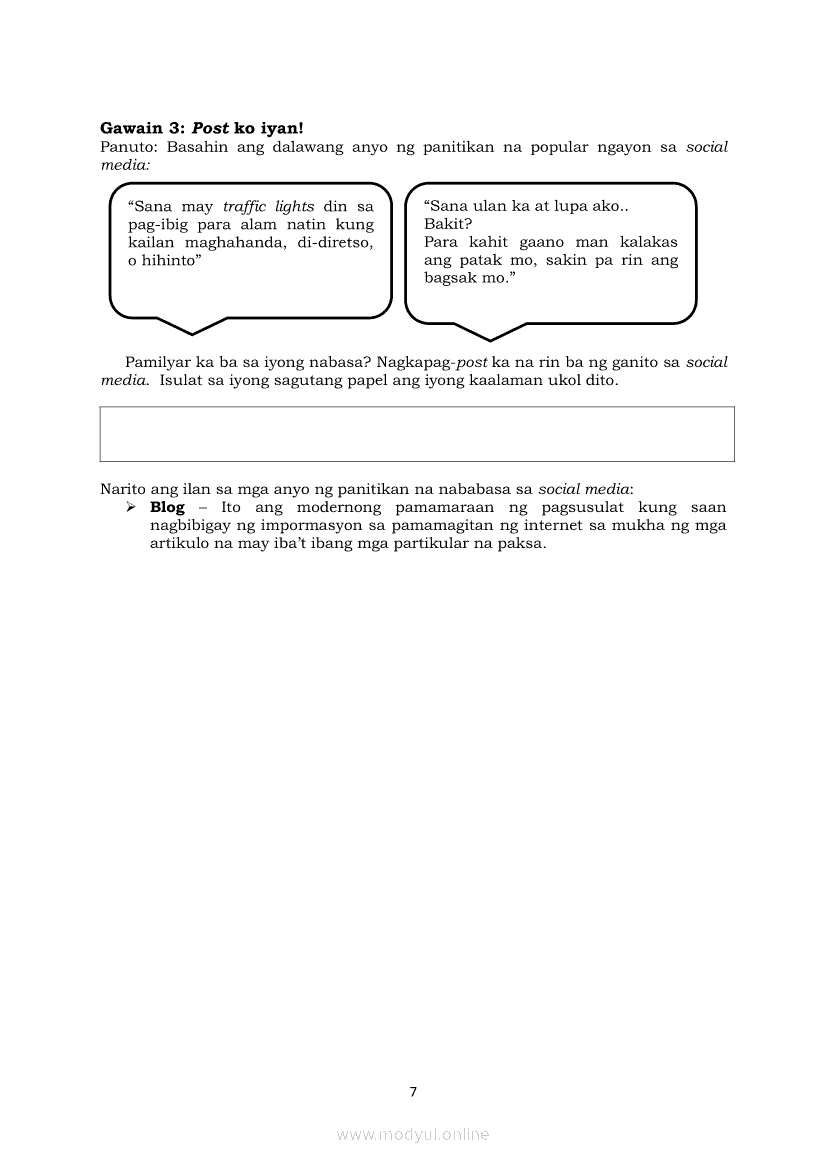 Filipino 10 Ikalawang Markahan – Modyul 7: Pangwakas na Gawain sa Panitikang KanluraninApr 22, 2021 Grade 10Xiaomi Redmi Watch 5 Active 2inch LCD Display Clear Calling 5ATM Waterproof Smart Watch for only ₱3,999 ₱1,200!. Filipino 10RelatedFilipino 10 Ikaapat na Markahan – Modyul 4 PAGSUSURI SA PILING KABANATA NG EL FILIBUSTERISMO Sub-Aralin: Pagbubuod Gamit ang Tamang Mekaniks sa PagsulatFilipino 10 Ikaapat na Markahan – Modyul 1 KALIGIRANG PANGKASAYSAYAN NG EL FILIBUSTERISMOFilipino 10 Ikaapat na Markahan – Modyul 8 PAGSUSURI SA PILING KABANATA NG EL FILIBUSTERISMO NA KAKIKITAAN NG KLASIKONG KATANGIAN NG AKDA Sub-Aralin: Mga Pang-uring Umaakit sa Imahinasyon at mga PandamaFilipino 10 Ikaapat na Markahan – Modyul 5 ANG MGA KAISIPANG LUTANG SA AKDA (Sa Ilalim ng Kubyerta, Sa Bahay ng mga Estudyante, Ginoong Pasta, Ang Palabas, Ang Prayle at Ang mga Pilipino, Ang Piging at Ang Hiwaga)Filipino 10 Ikaapat na Markahan – Modyul 7 KABULUHAN NG MGA KAISIPANG LUTANG SA PILING KABANATA NG EL FILIBUSTERISMO KAUGNAY KAY SIMOUN Sub-Aralin: Pagbibigay-kahulugan ng Matatalinghagang Pahayag