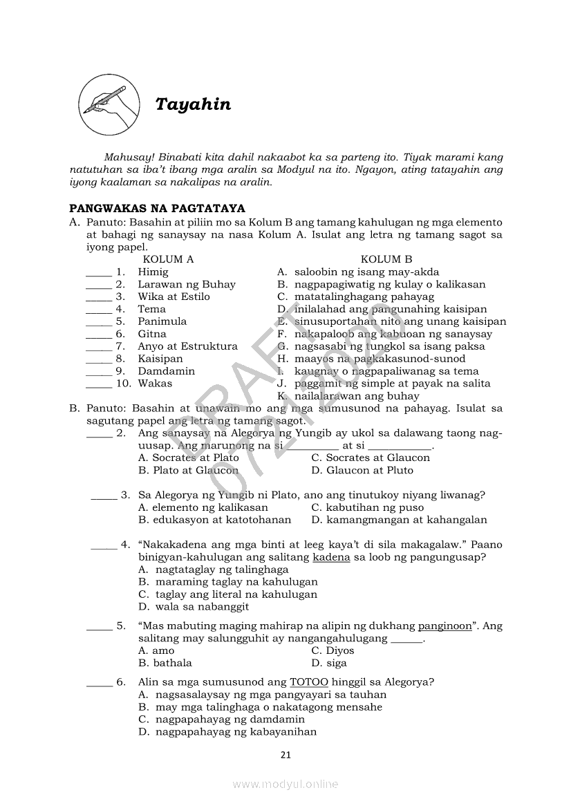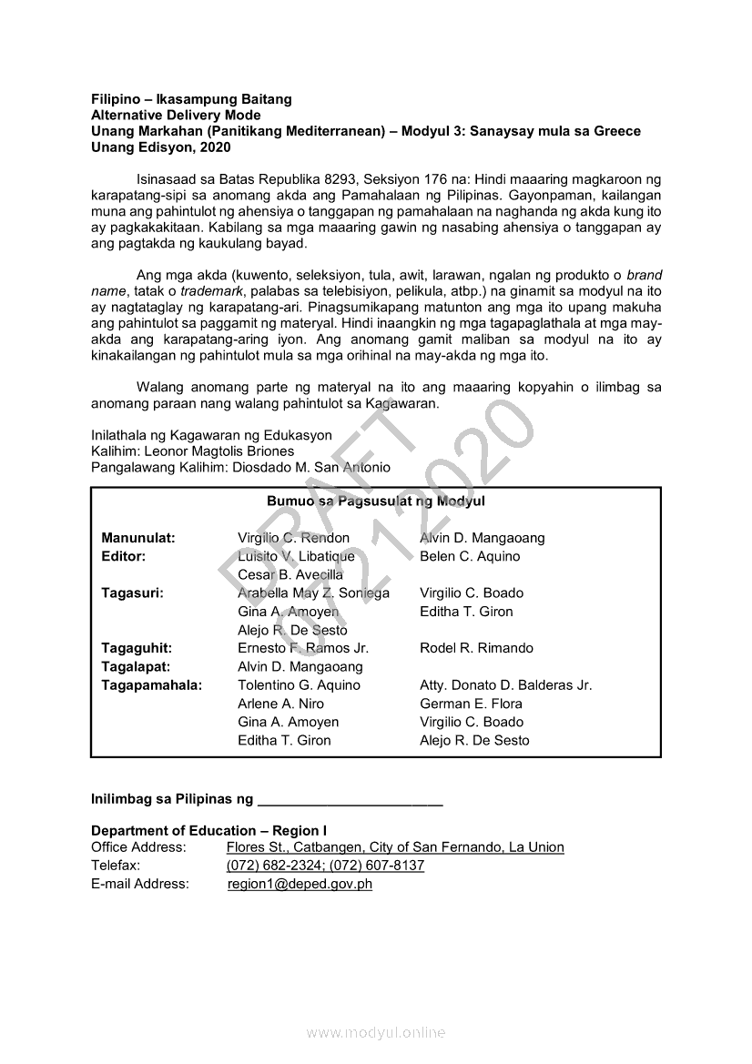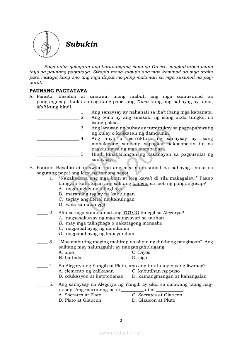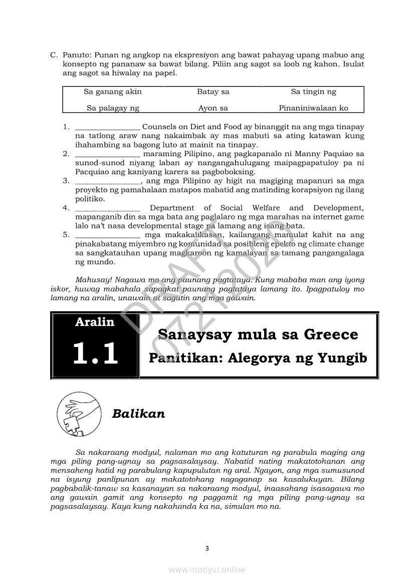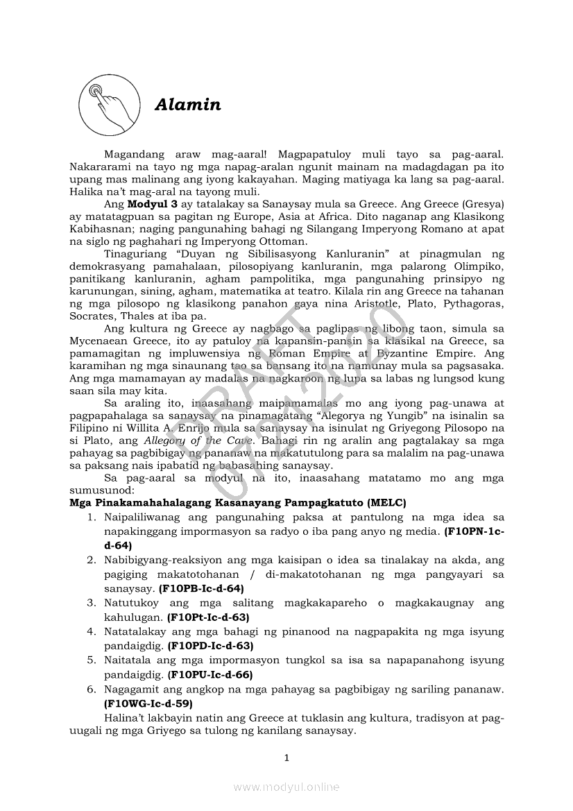 Filipino 10 Modyul 3: Sanaysay mula sa Greece (Panitikang Mediterranean)Apr 22, 2021 Grade 10Xiaomi Redmi Watch 5 Active 2inch LCD Display Clear Calling 5ATM Waterproof Smart Watch for only ₱3,999 ₱1,200!. Filipino 10RelatedFilipino 10 Ikaapat na Markahan – Modyul 8 PAGSUSURI SA PILING KABANATA NG EL FILIBUSTERISMO NA KAKIKITAAN NG KLASIKONG KATANGIAN NG AKDA Sub-Aralin: Mga Pang-uring Umaakit sa Imahinasyon at mga PandamaFilipino 10 Ikaapat na Markahan – Modyul 1 KALIGIRANG PANGKASAYSAYAN NG EL FILIBUSTERISMOFilipino 10 Ikaapat na Markahan – Modyul 7 KABULUHAN NG MGA KAISIPANG LUTANG SA PILING KABANATA NG EL FILIBUSTERISMO KAUGNAY KAY SIMOUN Sub-Aralin: Pagbibigay-kahulugan ng Matatalinghagang PahayagFilipino 10 Ikaapat na Markahan – Modyul 4 PAGSUSURI SA PILING KABANATA NG EL FILIBUSTERISMO Sub-Aralin: Pagbubuod Gamit ang Tamang Mekaniks sa PagsulatFilipino 10 Ikaapat na Markahan – Modyul 5 ANG MGA KAISIPANG LUTANG SA AKDA (Sa Ilalim ng Kubyerta, Sa Bahay ng mga Estudyante, Ginoong Pasta, Ang Palabas, Ang Prayle at Ang mga Pilipino, Ang Piging at Ang Hiwaga)