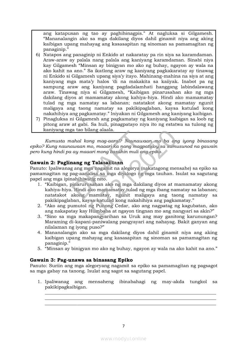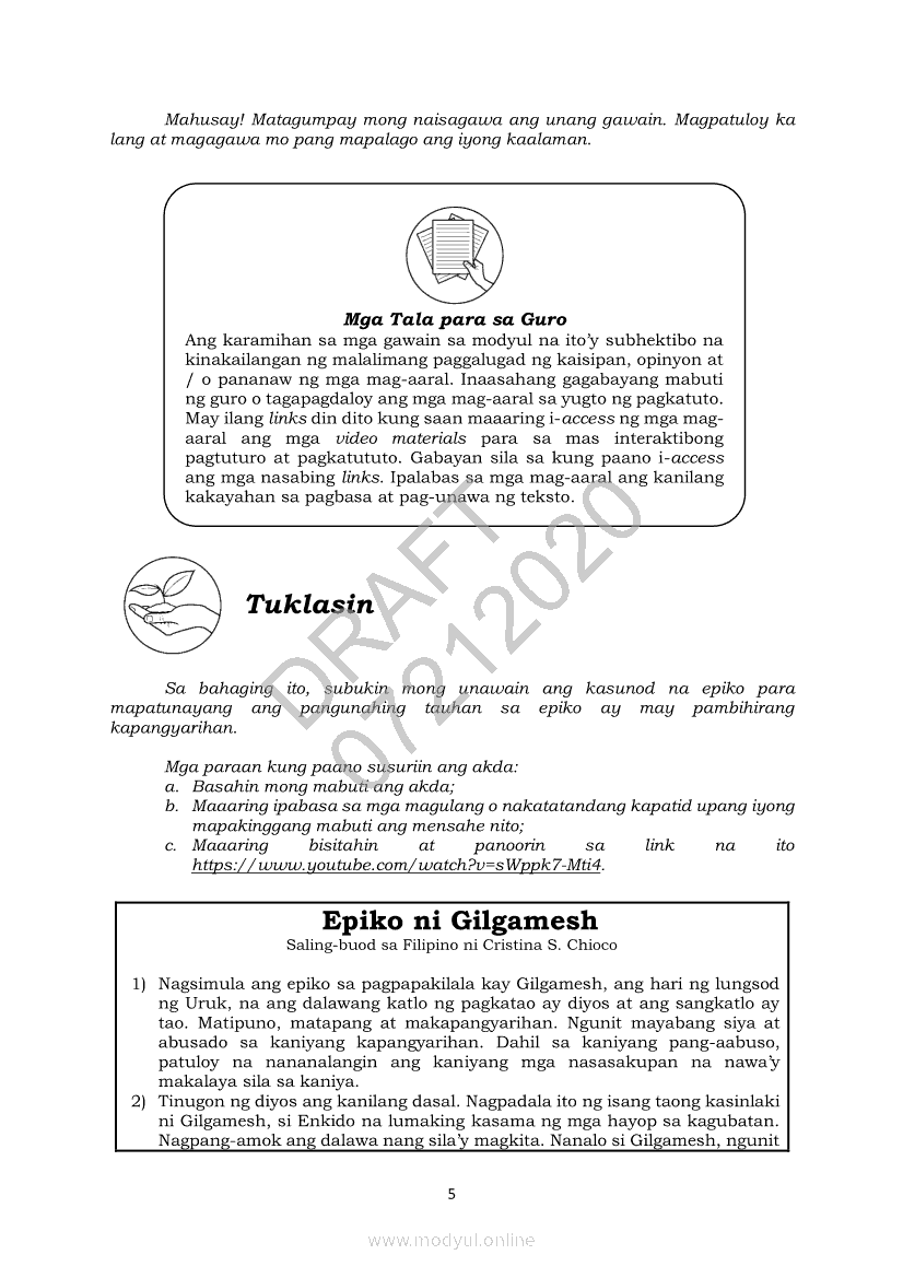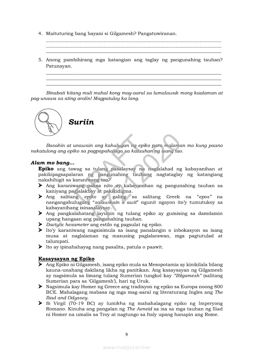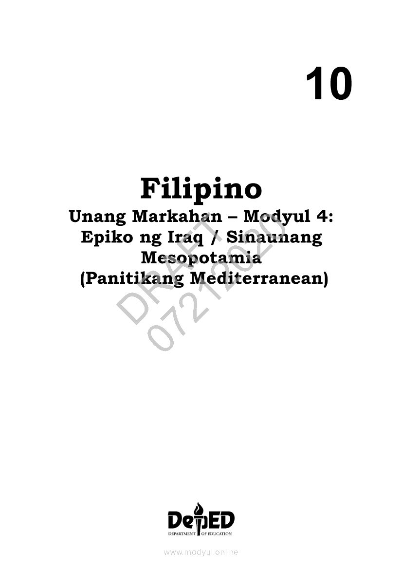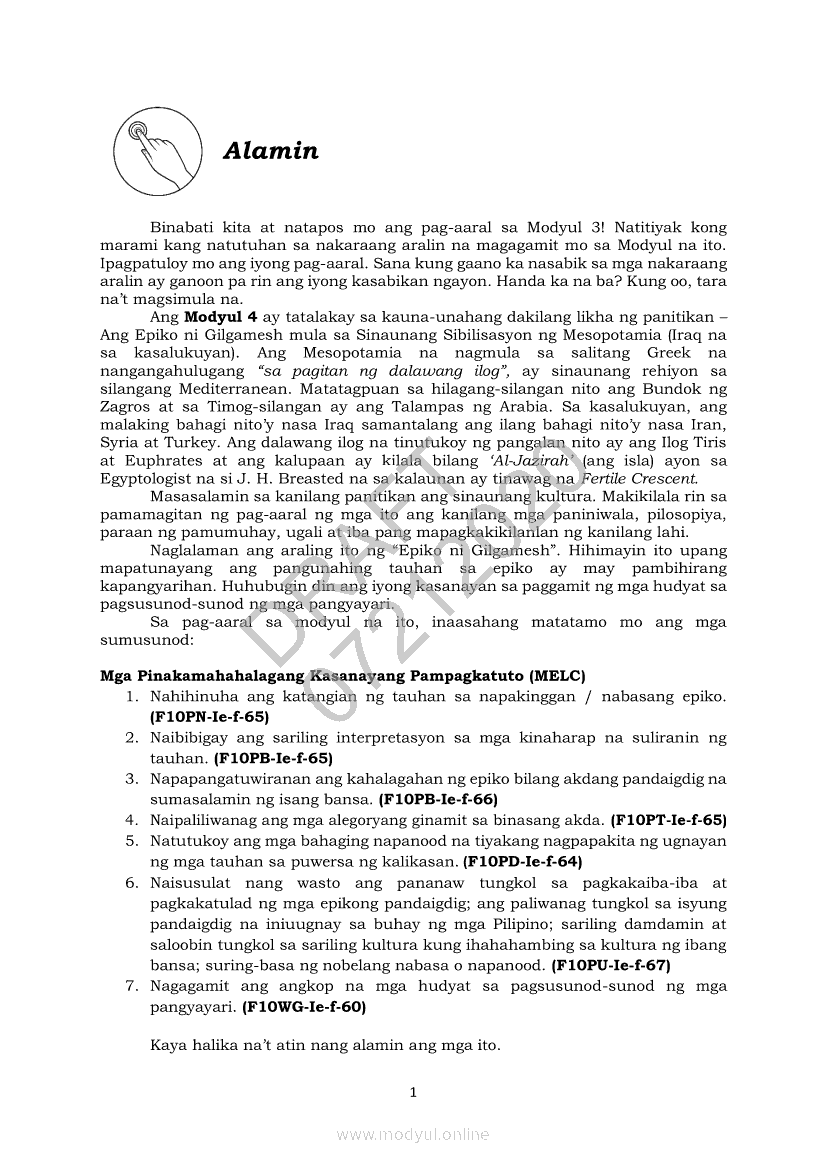 Filipino 10 Modyul 4: Epiko ng Iraq / Sinaunang Mesopotamia (Panitikang Mediterranean)Apr 22, 2021 Grade 10Xiaomi Redmi Watch 5 Active 2inch LCD Display Clear Calling 5ATM Waterproof Smart Watch for only ₱3,999 ₱1,200!. Filipino 10RelatedFilipino 10 Ikaapat na Markahan – Modyul 5 ANG MGA KAISIPANG LUTANG SA AKDA (Sa Ilalim ng Kubyerta, Sa Bahay ng mga Estudyante, Ginoong Pasta, Ang Palabas, Ang Prayle at Ang mga Pilipino, Ang Piging at Ang Hiwaga)Filipino 10 Ikaapat na Markahan – Modyul 7 KABULUHAN NG MGA KAISIPANG LUTANG SA PILING KABANATA NG EL FILIBUSTERISMO KAUGNAY KAY SIMOUN Sub-Aralin: Pagbibigay-kahulugan ng Matatalinghagang PahayagFilipino 10 Ikaapat na Markahan – Modyul 8 PAGSUSURI SA PILING KABANATA NG EL FILIBUSTERISMO NA KAKIKITAAN NG KLASIKONG KATANGIAN NG AKDA Sub-Aralin: Mga Pang-uring Umaakit sa Imahinasyon at mga PandamaFilipino 10 Ikaapat na Markahan – Modyul 1 KALIGIRANG PANGKASAYSAYAN NG EL FILIBUSTERISMOFilipino 10 Ikaapat na Markahan – Modyul 2 PAGSULAT NG BUOD HANGO SA TIMELINE (Kaligirang Pangkasaysayan ng El Filibusterismo)