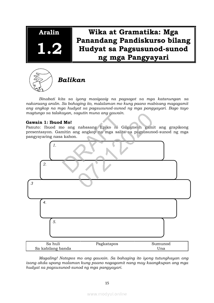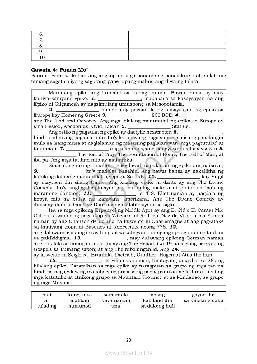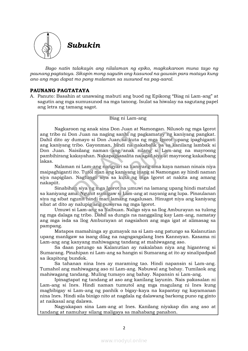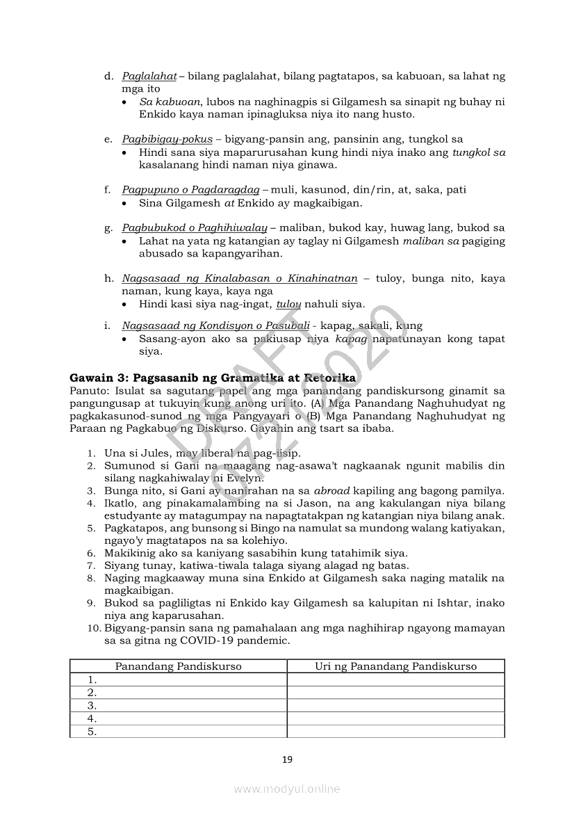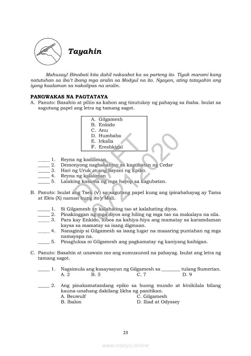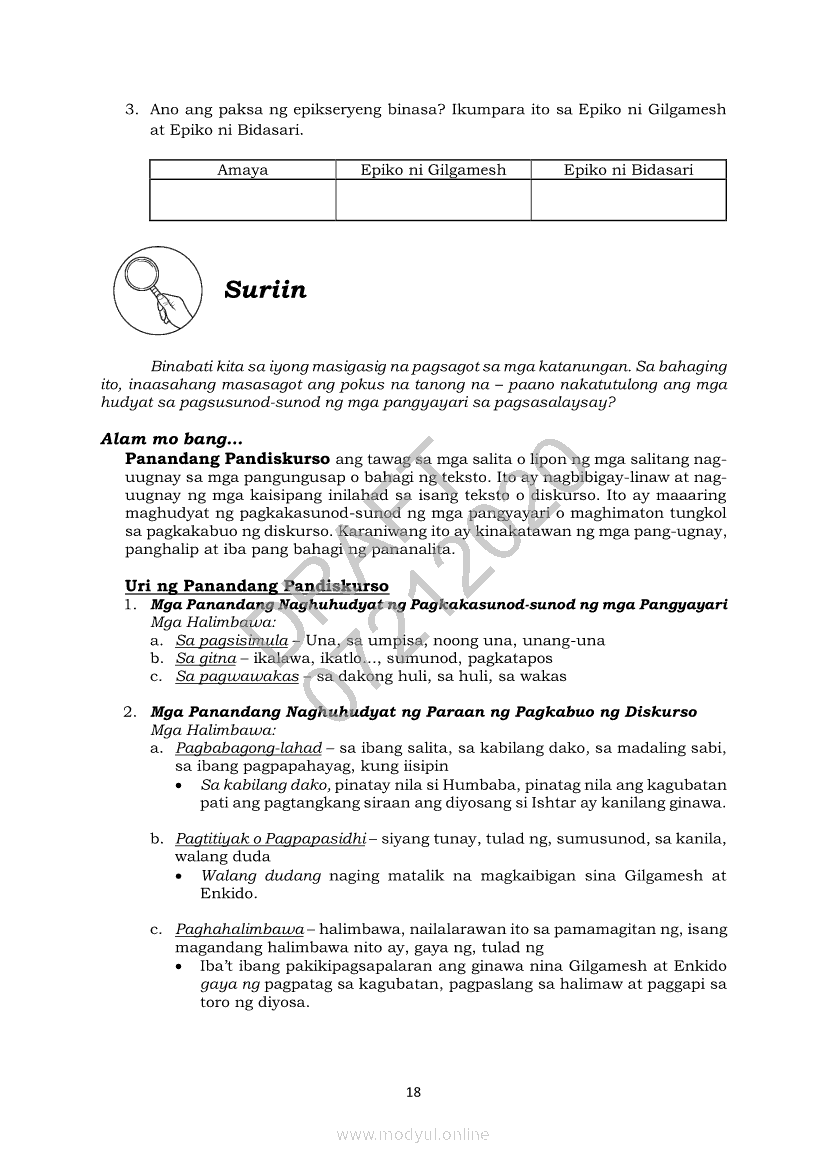 Filipino 10 Modyul 4: Epiko ng Iraq / Sinaunang Mesopotamia (Panitikang Mediterranean)Apr 22, 2021 Grade 10Xiaomi Redmi Watch 5 Active 2inch LCD Display Clear Calling 5ATM Waterproof Smart Watch for only ₱3,999 ₱1,200!. Filipino 10RelatedFilipino 10 Ikaapat na Markahan – Modyul 5 ANG MGA KAISIPANG LUTANG SA AKDA (Sa Ilalim ng Kubyerta, Sa Bahay ng mga Estudyante, Ginoong Pasta, Ang Palabas, Ang Prayle at Ang mga Pilipino, Ang Piging at Ang Hiwaga)Filipino 10 Ikaapat na Markahan – Modyul 7 KABULUHAN NG MGA KAISIPANG LUTANG SA PILING KABANATA NG EL FILIBUSTERISMO KAUGNAY KAY SIMOUN Sub-Aralin: Pagbibigay-kahulugan ng Matatalinghagang PahayagFilipino 10 Ikaapat na Markahan – Modyul 8 PAGSUSURI SA PILING KABANATA NG EL FILIBUSTERISMO NA KAKIKITAAN NG KLASIKONG KATANGIAN NG AKDA Sub-Aralin: Mga Pang-uring Umaakit sa Imahinasyon at mga PandamaFilipino 10 Ikaapat na Markahan – Modyul 1 KALIGIRANG PANGKASAYSAYAN NG EL FILIBUSTERISMOFilipino 10 Ikaapat na Markahan – Modyul 2 PAGSULAT NG BUOD HANGO SA TIMELINE (Kaligirang Pangkasaysayan ng El Filibusterismo)