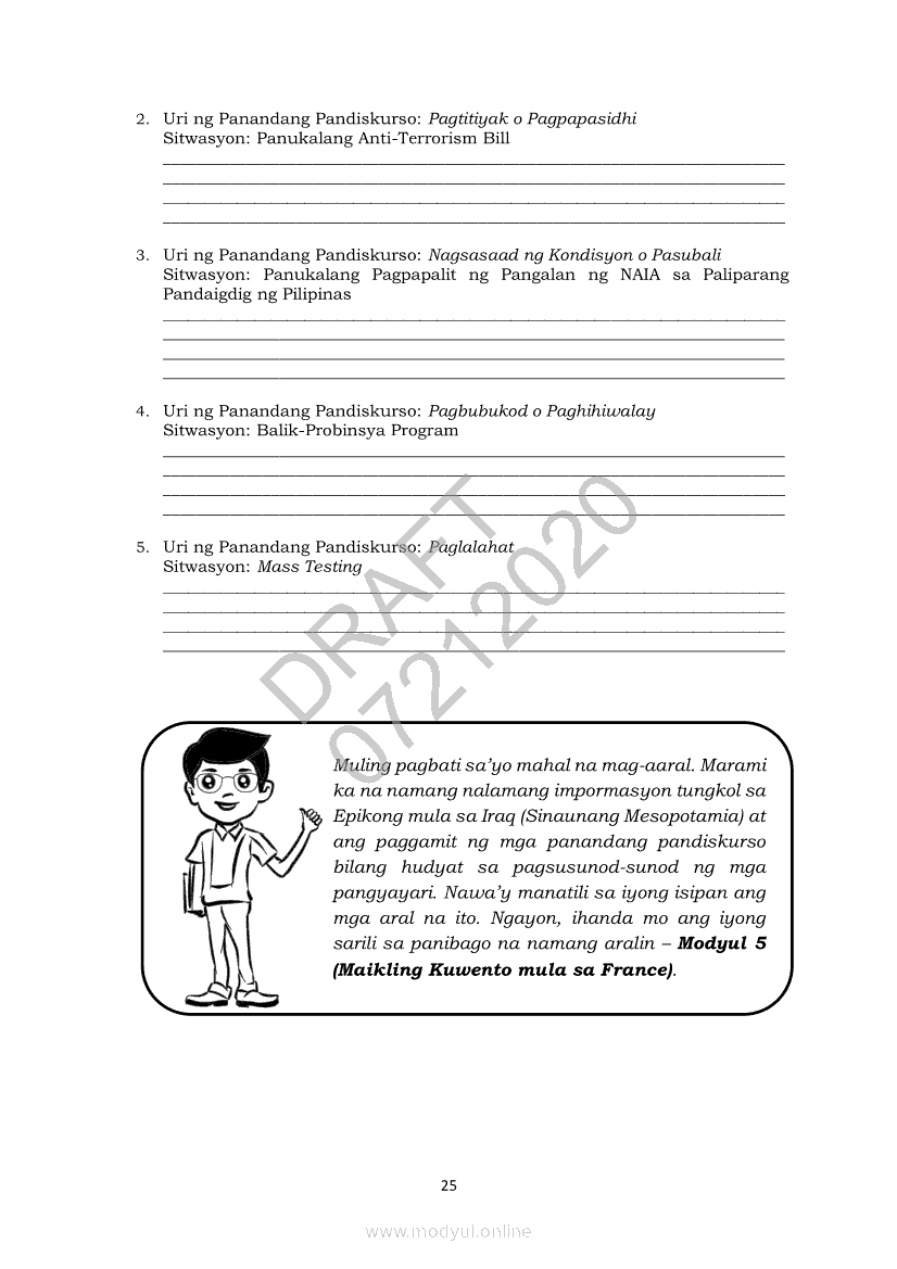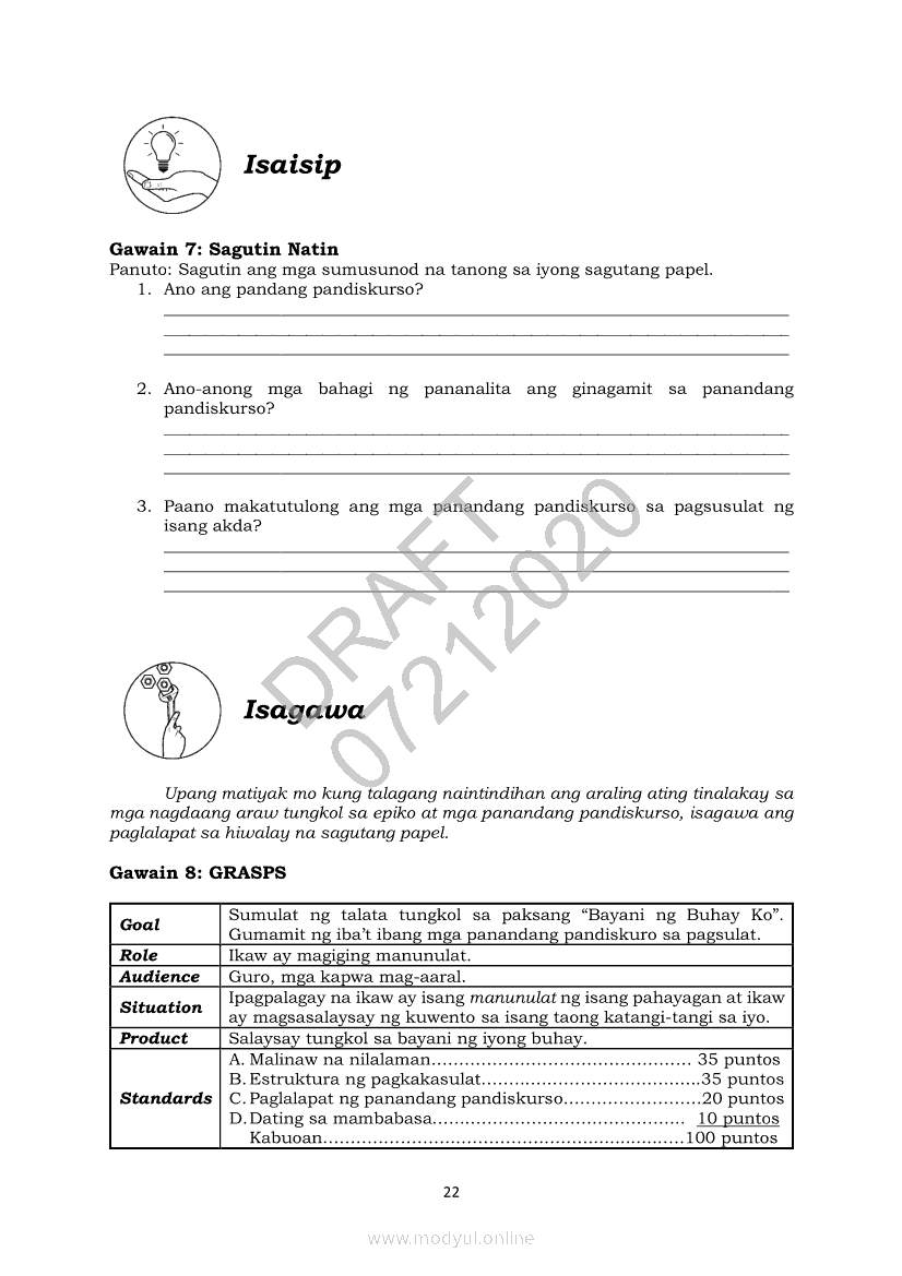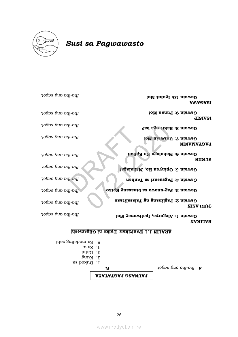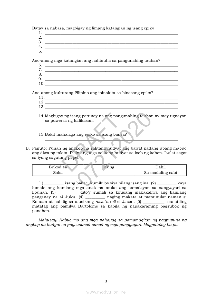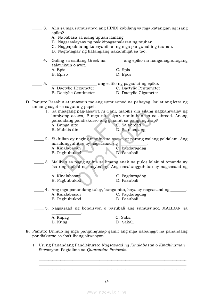 Filipino 10 Modyul 4: Epiko ng Iraq / Sinaunang Mesopotamia (Panitikang Mediterranean)Apr 22, 2021 Grade 10Xiaomi Redmi Watch 5 Active 2inch LCD Display Clear Calling 5ATM Waterproof Smart Watch for only ₱3,999 ₱1,200!. Filipino 10RelatedFilipino 10 Ikaapat na Markahan – Modyul 5 ANG MGA KAISIPANG LUTANG SA AKDA (Sa Ilalim ng Kubyerta, Sa Bahay ng mga Estudyante, Ginoong Pasta, Ang Palabas, Ang Prayle at Ang mga Pilipino, Ang Piging at Ang Hiwaga)Filipino 10 Ikaapat na Markahan – Modyul 7 KABULUHAN NG MGA KAISIPANG LUTANG SA PILING KABANATA NG EL FILIBUSTERISMO KAUGNAY KAY SIMOUN Sub-Aralin: Pagbibigay-kahulugan ng Matatalinghagang PahayagFilipino 10 Ikaapat na Markahan – Modyul 8 PAGSUSURI SA PILING KABANATA NG EL FILIBUSTERISMO NA KAKIKITAAN NG KLASIKONG KATANGIAN NG AKDA Sub-Aralin: Mga Pang-uring Umaakit sa Imahinasyon at mga PandamaFilipino 10 Ikaapat na Markahan – Modyul 1 KALIGIRANG PANGKASAYSAYAN NG EL FILIBUSTERISMOFilipino 10 Ikaapat na Markahan – Modyul 2 PAGSULAT NG BUOD HANGO SA TIMELINE (Kaligirang Pangkasaysayan ng El Filibusterismo)