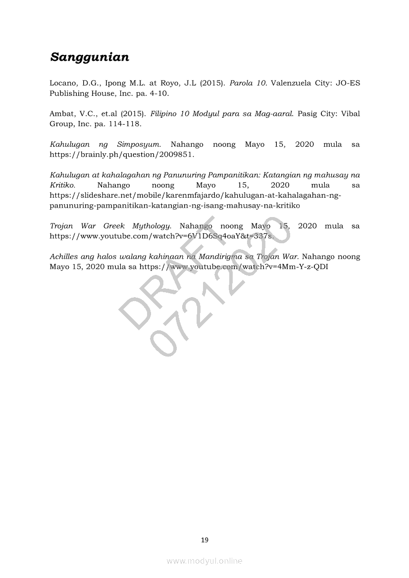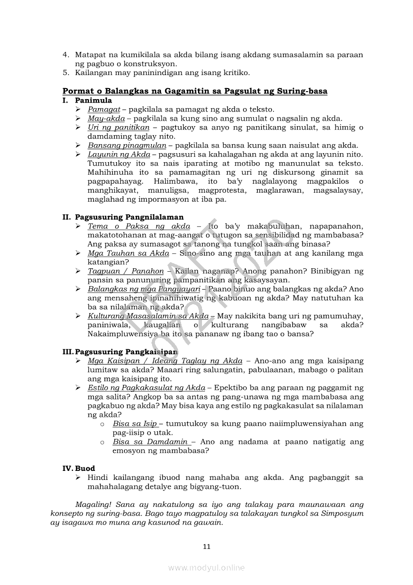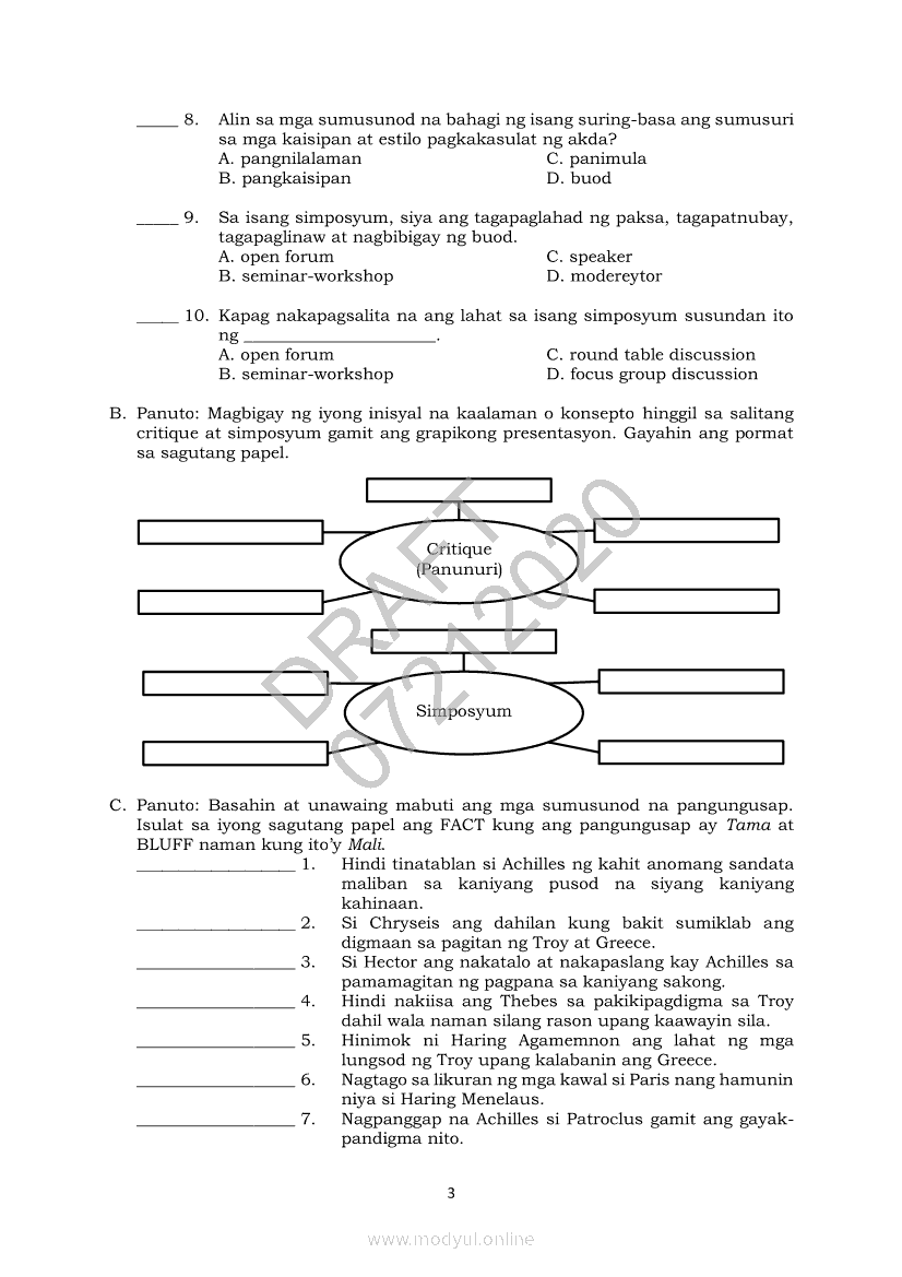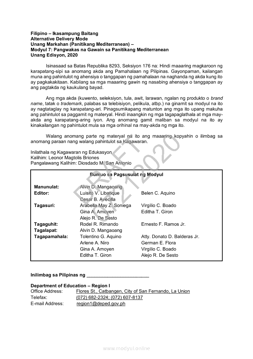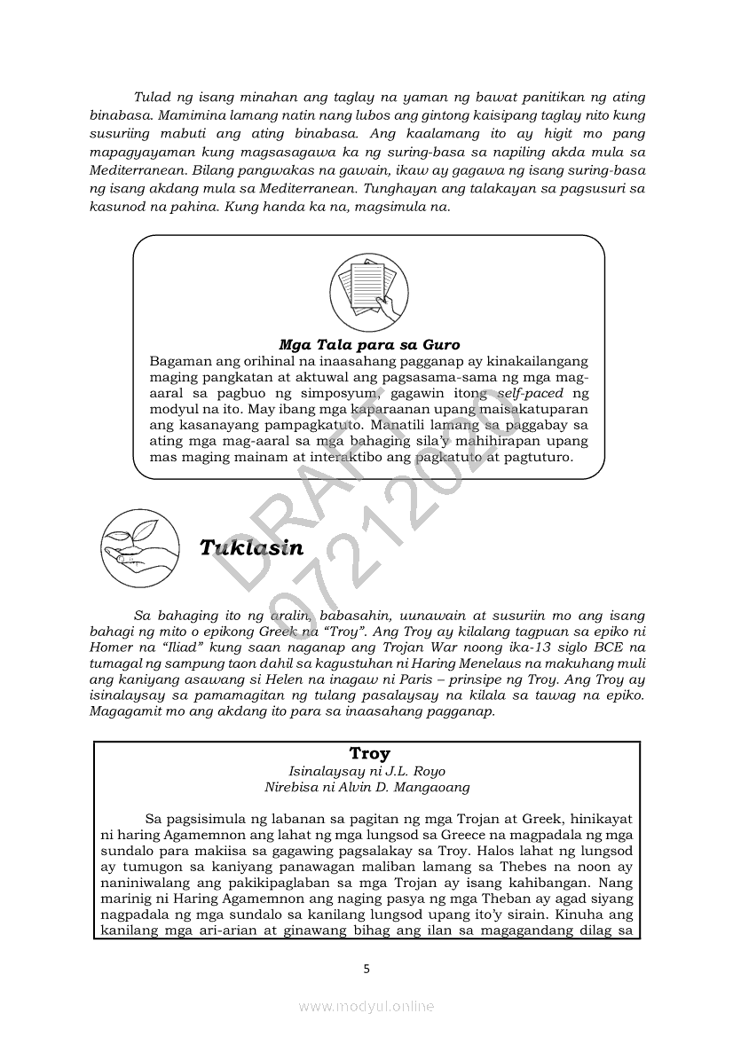 Filipino 10 Modyul 7: Pangwakas na Gawain sa Panitikang MediterraneanApr 22, 2021 Grade 10Xiaomi Redmi Watch 5 Active 2inch LCD Display Clear Calling 5ATM Waterproof Smart Watch for only ₱3,999 ₱1,200!. Filipino 10RelatedFilipino 10 Ikaapat na Markahan – Modyul 8 PAGSUSURI SA PILING KABANATA NG EL FILIBUSTERISMO NA KAKIKITAAN NG KLASIKONG KATANGIAN NG AKDA Sub-Aralin: Mga Pang-uring Umaakit sa Imahinasyon at mga PandamaFilipino 10 Ikaapat na Markahan – Modyul 2 PAGSULAT NG BUOD HANGO SA TIMELINE (Kaligirang Pangkasaysayan ng El Filibusterismo)Filipino 10 Ikaapat na Markahan – Modyul 7 KABULUHAN NG MGA KAISIPANG LUTANG SA PILING KABANATA NG EL FILIBUSTERISMO KAUGNAY KAY SIMOUN Sub-Aralin: Pagbibigay-kahulugan ng Matatalinghagang PahayagFilipino 10 Ikaapat na Markahan – Modyul 5 ANG MGA KAISIPANG LUTANG SA AKDA (Sa Ilalim ng Kubyerta, Sa Bahay ng mga Estudyante, Ginoong Pasta, Ang Palabas, Ang Prayle at Ang mga Pilipino, Ang Piging at Ang Hiwaga)Filipino 10 Ikaapat na Markahan – Modyul 4 PAGSUSURI SA PILING KABANATA NG EL FILIBUSTERISMO Sub-Aralin: Pagbubuod Gamit ang Tamang Mekaniks sa Pagsulat