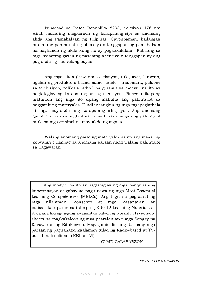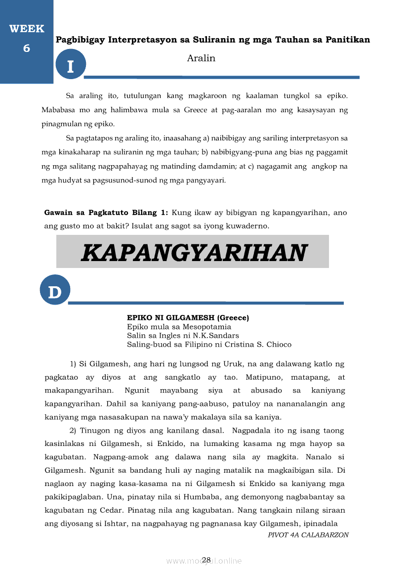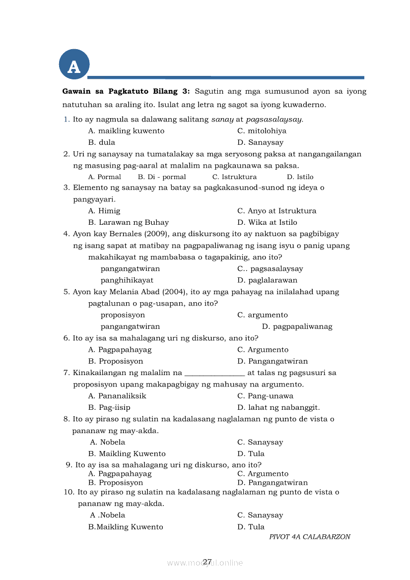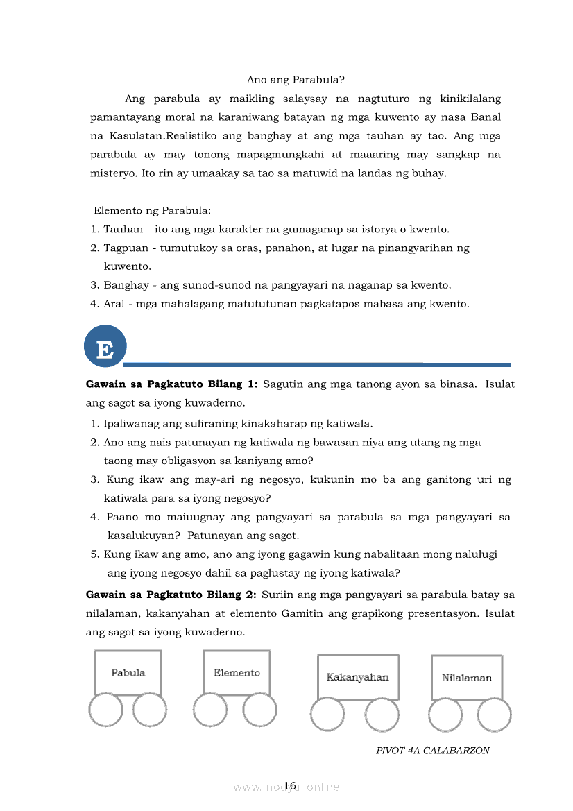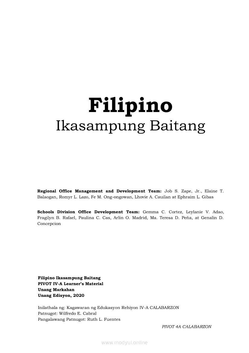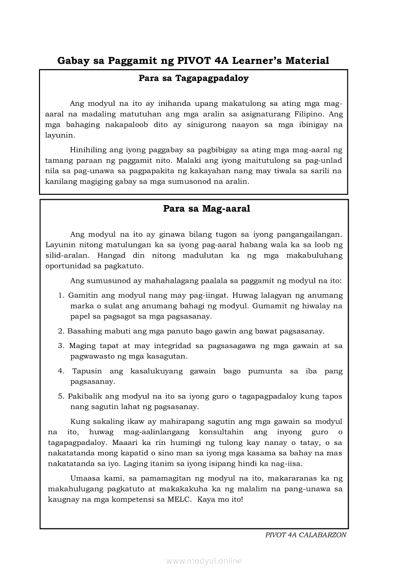 Filipino 10 PIVOT Modyul sa FilipinoApr 22, 2021 Grade 10Xiaomi Redmi Watch 5 Active 2inch LCD Display Clear Calling 5ATM Waterproof Smart Watch for only ₱3,999 ₱1,200!. Filipino 10RelatedFilipino 10 Ikaapat na Markahan – Modyul 7 KABULUHAN NG MGA KAISIPANG LUTANG SA PILING KABANATA NG EL FILIBUSTERISMO KAUGNAY KAY SIMOUN Sub-Aralin: Pagbibigay-kahulugan ng Matatalinghagang PahayagFilipino 10 Ikaapat na Markahan – Modyul 5 ANG MGA KAISIPANG LUTANG SA AKDA (Sa Ilalim ng Kubyerta, Sa Bahay ng mga Estudyante, Ginoong Pasta, Ang Palabas, Ang Prayle at Ang mga Pilipino, Ang Piging at Ang Hiwaga)Filipino 10 Ikaapat na Markahan – Modyul 8 PAGSUSURI SA PILING KABANATA NG EL FILIBUSTERISMO NA KAKIKITAAN NG KLASIKONG KATANGIAN NG AKDA Sub-Aralin: Mga Pang-uring Umaakit sa Imahinasyon at mga PandamaFilipino 10 Ikaapat na Markahan – Modyul 1 KALIGIRANG PANGKASAYSAYAN NG EL FILIBUSTERISMOFilipino 10 Ikaapat na Markahan – Modyul 4 PAGSUSURI SA PILING KABANATA NG EL FILIBUSTERISMO Sub-Aralin: Pagbubuod Gamit ang Tamang Mekaniks sa Pagsulat