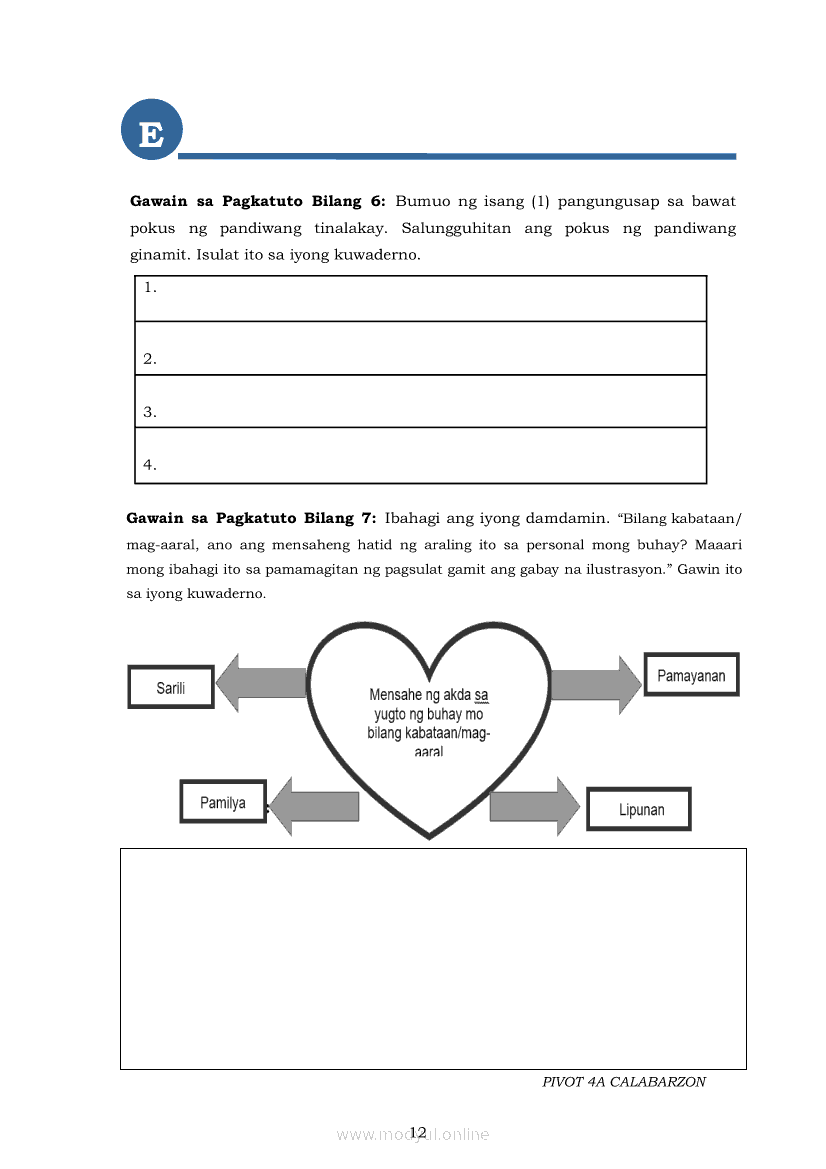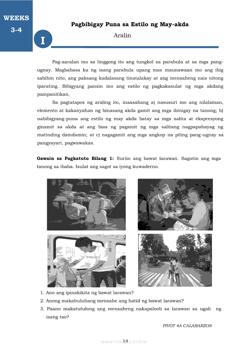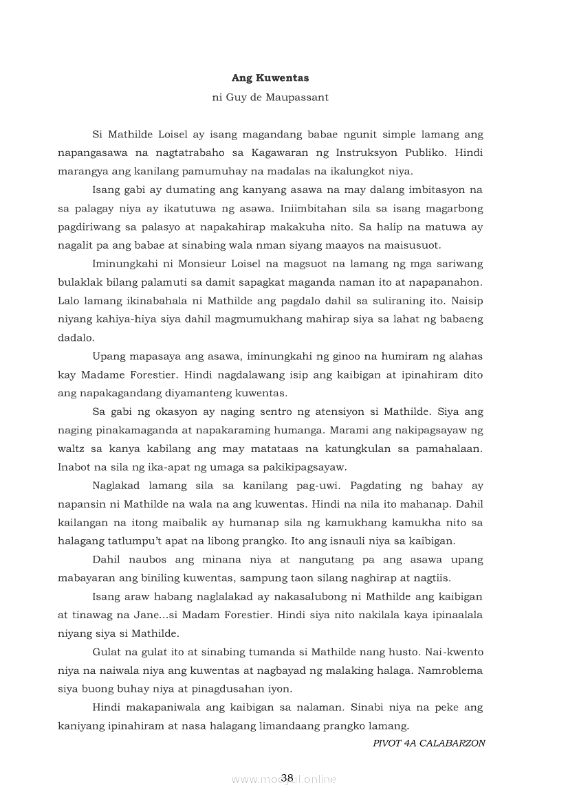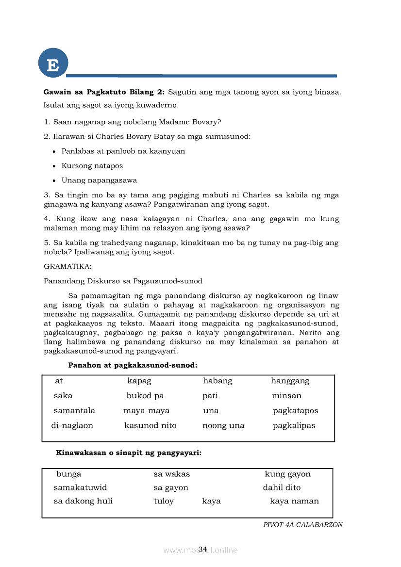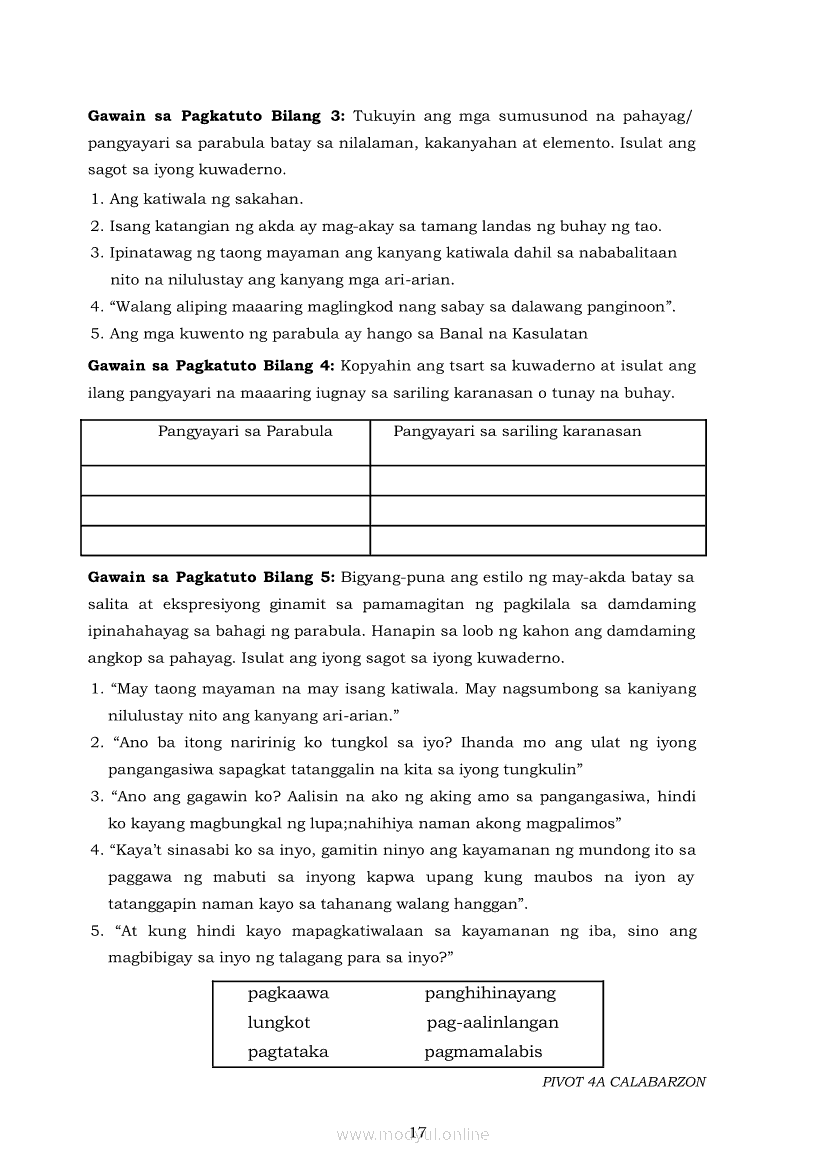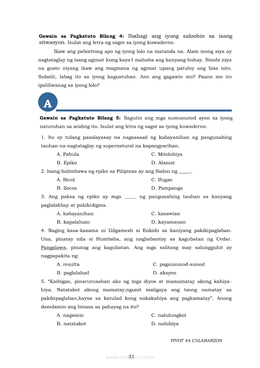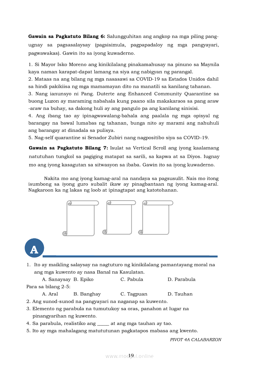 Filipino 10 PIVOT Modyul sa FilipinoApr 22, 2021 Grade 10Xiaomi Redmi Watch 5 Active 2inch LCD Display Clear Calling 5ATM Waterproof Smart Watch for only ₱3,999 ₱1,200!. Filipino 10RelatedFilipino 10 Ikaapat na Markahan – Modyul 7 KABULUHAN NG MGA KAISIPANG LUTANG SA PILING KABANATA NG EL FILIBUSTERISMO KAUGNAY KAY SIMOUN Sub-Aralin: Pagbibigay-kahulugan ng Matatalinghagang PahayagFilipino 10 Ikaapat na Markahan – Modyul 5 ANG MGA KAISIPANG LUTANG SA AKDA (Sa Ilalim ng Kubyerta, Sa Bahay ng mga Estudyante, Ginoong Pasta, Ang Palabas, Ang Prayle at Ang mga Pilipino, Ang Piging at Ang Hiwaga)Filipino 10 Ikaapat na Markahan – Modyul 8 PAGSUSURI SA PILING KABANATA NG EL FILIBUSTERISMO NA KAKIKITAAN NG KLASIKONG KATANGIAN NG AKDA Sub-Aralin: Mga Pang-uring Umaakit sa Imahinasyon at mga PandamaFilipino 10 Ikaapat na Markahan – Modyul 1 KALIGIRANG PANGKASAYSAYAN NG EL FILIBUSTERISMOFilipino 10 Ikaapat na Markahan – Modyul 4 PAGSUSURI SA PILING KABANATA NG EL FILIBUSTERISMO Sub-Aralin: Pagbubuod Gamit ang Tamang Mekaniks sa Pagsulat