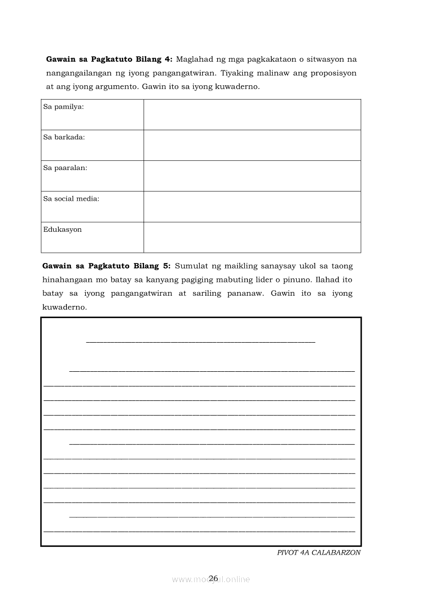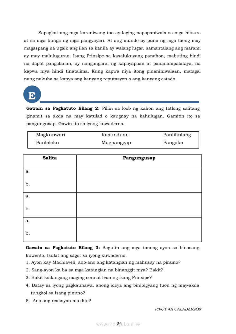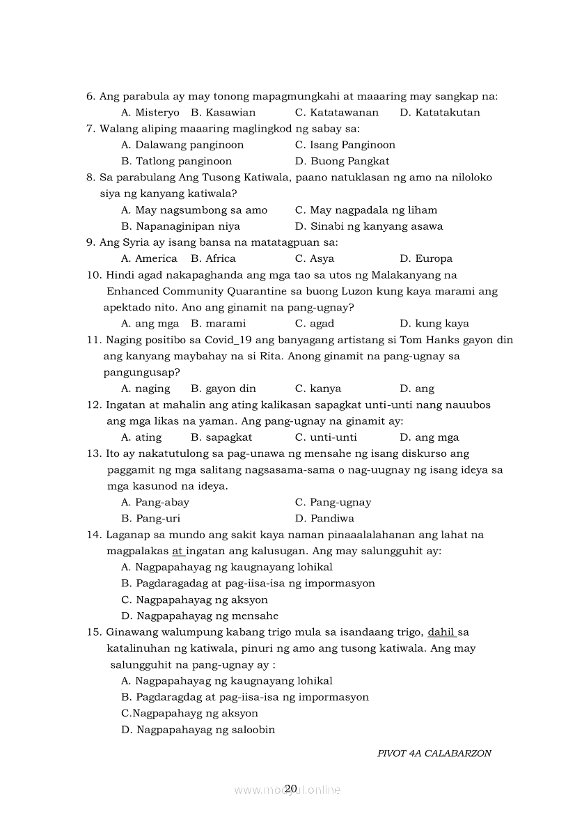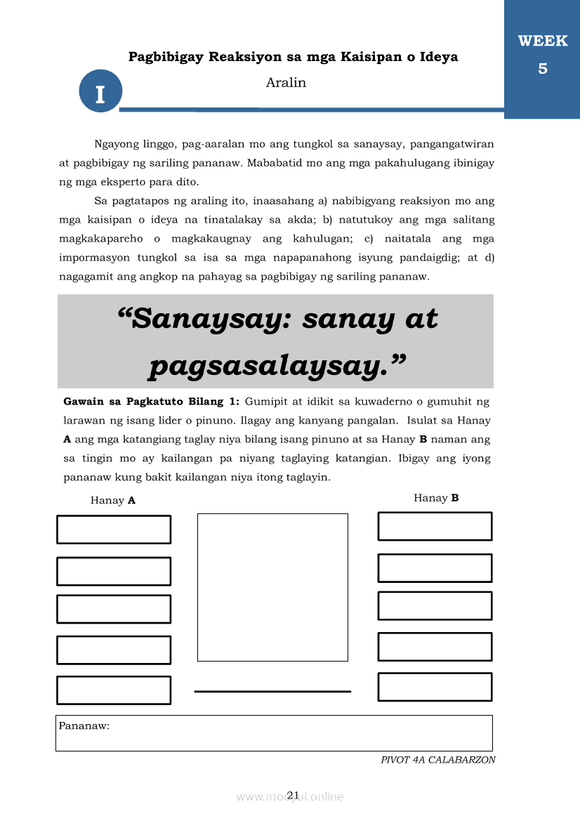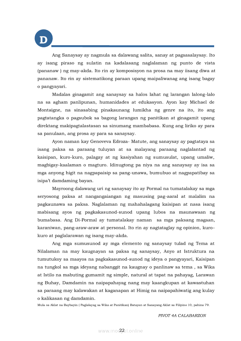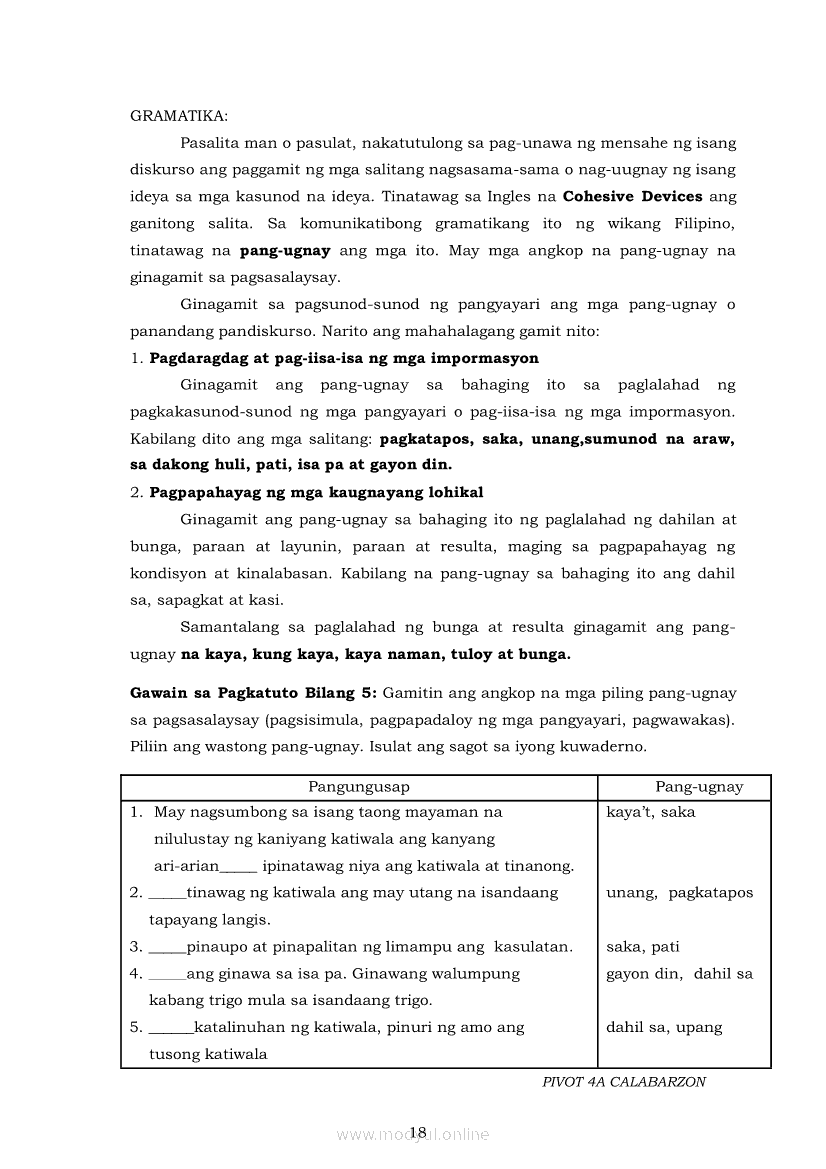 Filipino 10 PIVOT Modyul sa FilipinoApr 22, 2021 Grade 10Xiaomi Redmi Watch 5 Active 2inch LCD Display Clear Calling 5ATM Waterproof Smart Watch for only ₱3,999 ₱1,200!. Filipino 10RelatedFilipino 10 Ikaapat na Markahan – Modyul 7 KABULUHAN NG MGA KAISIPANG LUTANG SA PILING KABANATA NG EL FILIBUSTERISMO KAUGNAY KAY SIMOUN Sub-Aralin: Pagbibigay-kahulugan ng Matatalinghagang PahayagFilipino 10 Ikaapat na Markahan – Modyul 5 ANG MGA KAISIPANG LUTANG SA AKDA (Sa Ilalim ng Kubyerta, Sa Bahay ng mga Estudyante, Ginoong Pasta, Ang Palabas, Ang Prayle at Ang mga Pilipino, Ang Piging at Ang Hiwaga)Filipino 10 Ikaapat na Markahan – Modyul 8 PAGSUSURI SA PILING KABANATA NG EL FILIBUSTERISMO NA KAKIKITAAN NG KLASIKONG KATANGIAN NG AKDA Sub-Aralin: Mga Pang-uring Umaakit sa Imahinasyon at mga PandamaFilipino 10 Ikaapat na Markahan – Modyul 1 KALIGIRANG PANGKASAYSAYAN NG EL FILIBUSTERISMOFilipino 10 Ikaapat na Markahan – Modyul 4 PAGSUSURI SA PILING KABANATA NG EL FILIBUSTERISMO Sub-Aralin: Pagbubuod Gamit ang Tamang Mekaniks sa Pagsulat