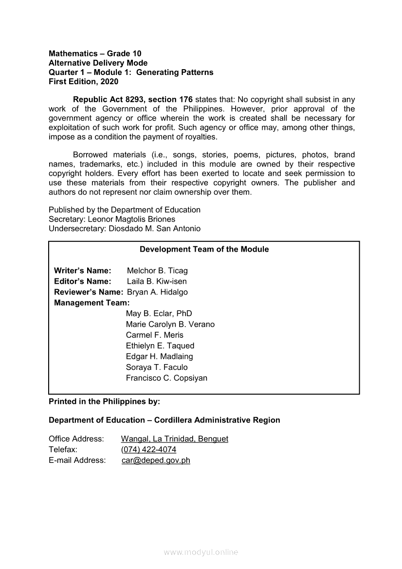 Math 10 Module 1-Generating PatternsApr 22, 2021 Grade 10Xiaomi Redmi Watch 5 Active 2inch LCD Display Clear Calling 5ATM Waterproof Smart Watch for only ₱3,999 ₱1,200!. Math 10RelatedMATHEMATICS Quarter 4 – Module 1 Illustrating The Measures of Position for Ungrouped DataMATHEMATICS Quarter 4 – Module 6 Measures of Position and Other Statistical MethodsMATHEMATICS Quarter 4 – Module 2 Calculating Measures of Position for Grouped DataMATHEMATICS Quarter 4 – Module 3 Interpreting Measures of PositionMATHEMATICS Quarter 4 – Module 5 Statistical Mini-Research
