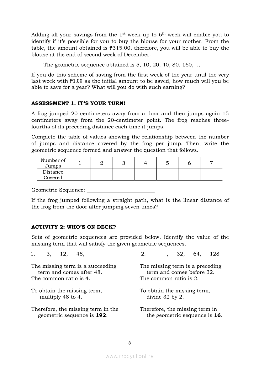 Math 10 Module 5: Geometric Sequences vs. Arithmetic SequencesApr 22, 2021 Grade 10Xiaomi Redmi Watch 5 Active 2inch LCD Display Clear Calling 5ATM Waterproof Smart Watch for only ₱3,999 ₱1,200!. Math 10RelatedMATHEMATICS Quarter 4 – Module 2 Calculating Measures of Position for Grouped DataMATHEMATICS Quarter 4 – Module 5 Statistical Mini-ResearchMATHEMATICS Quarter 4 – Module 1 Illustrating The Measures of Position for Ungrouped DataMATHEMATICS Quarter 4 – Module 4 Solving Problems Involving Measures of PositionMATHEMATICS Quarter 4 – Module 6 Measures of Position and Other Statistical Methods
